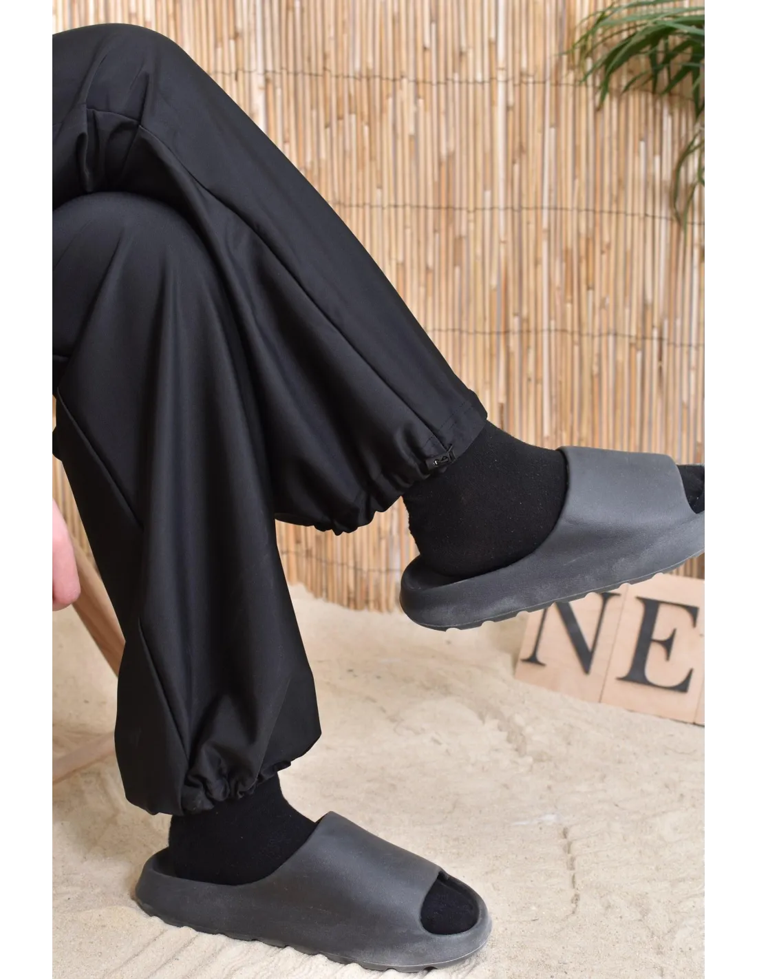 - Un pantalon à resserrer au niveau des chevilles et du bassin