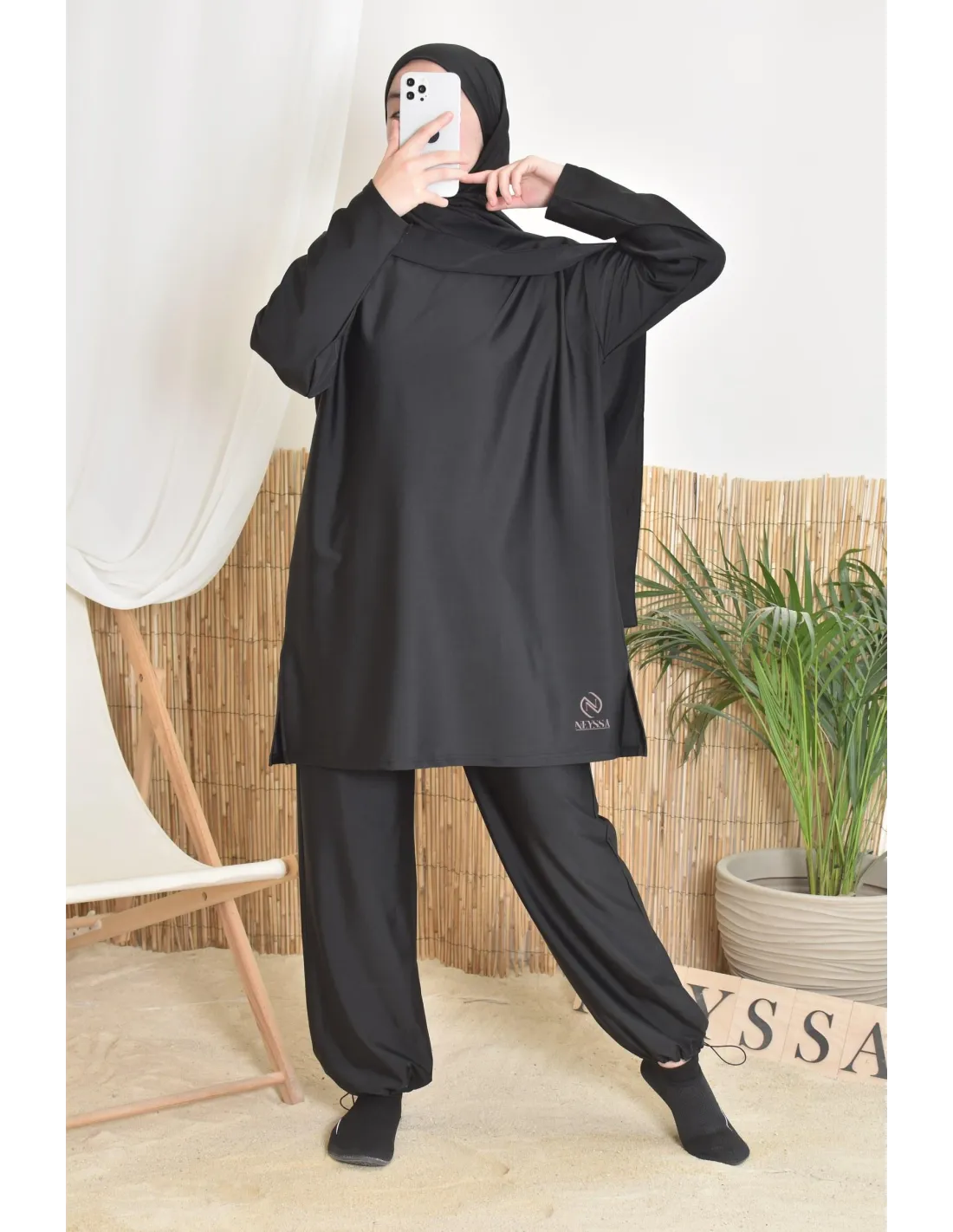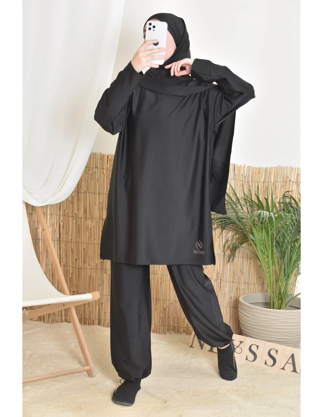 - Confection Neyssa : Ce burkini de bain a été confectionné dans nos ateliers avec un tissu de qualité