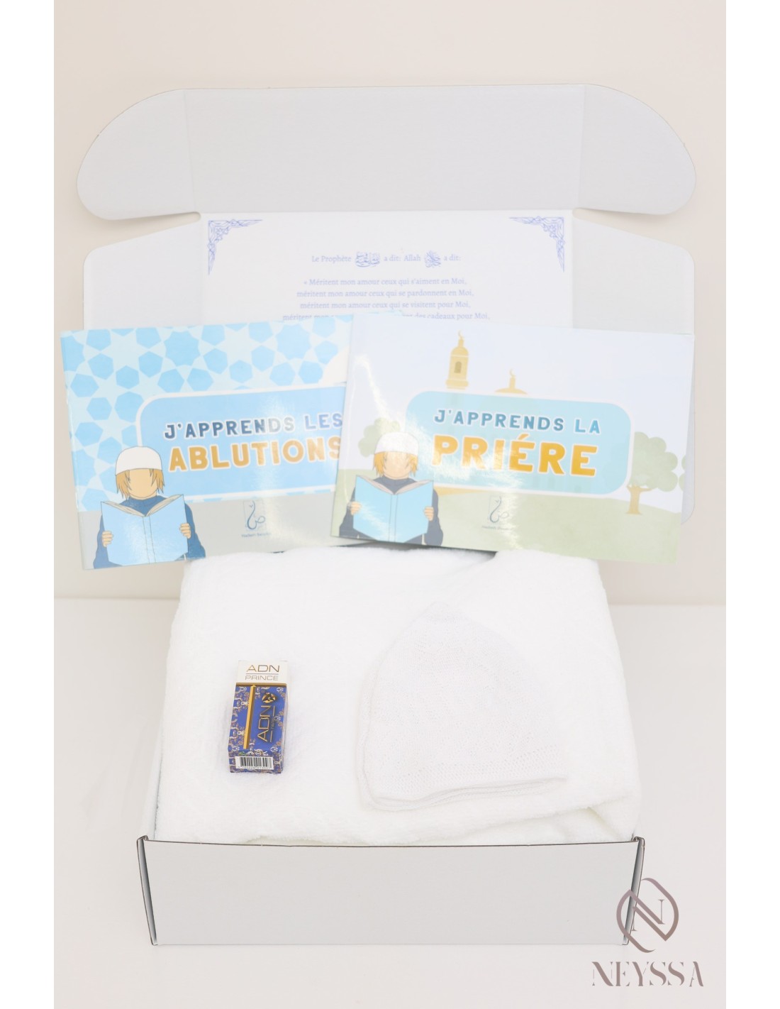 Il s’agit d’un coffret à la fois pédagogique et symbolique, conçu pour permettre à l’enfant de participer pleinement à la Omra ou au Hajj tenue d'ihram, tout en apprenant la prière, les ablutions et les valeurs fondamentales de l’Islam.