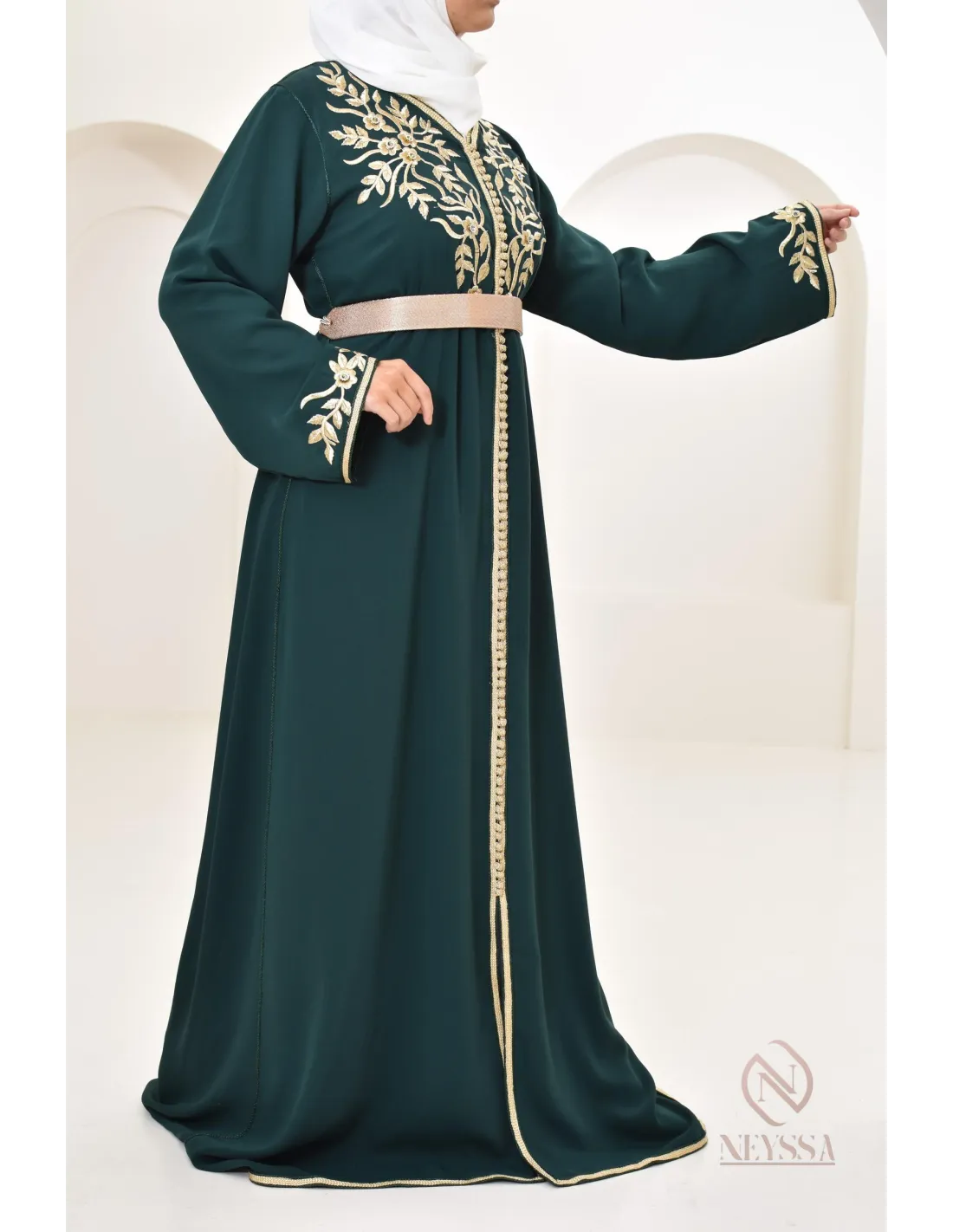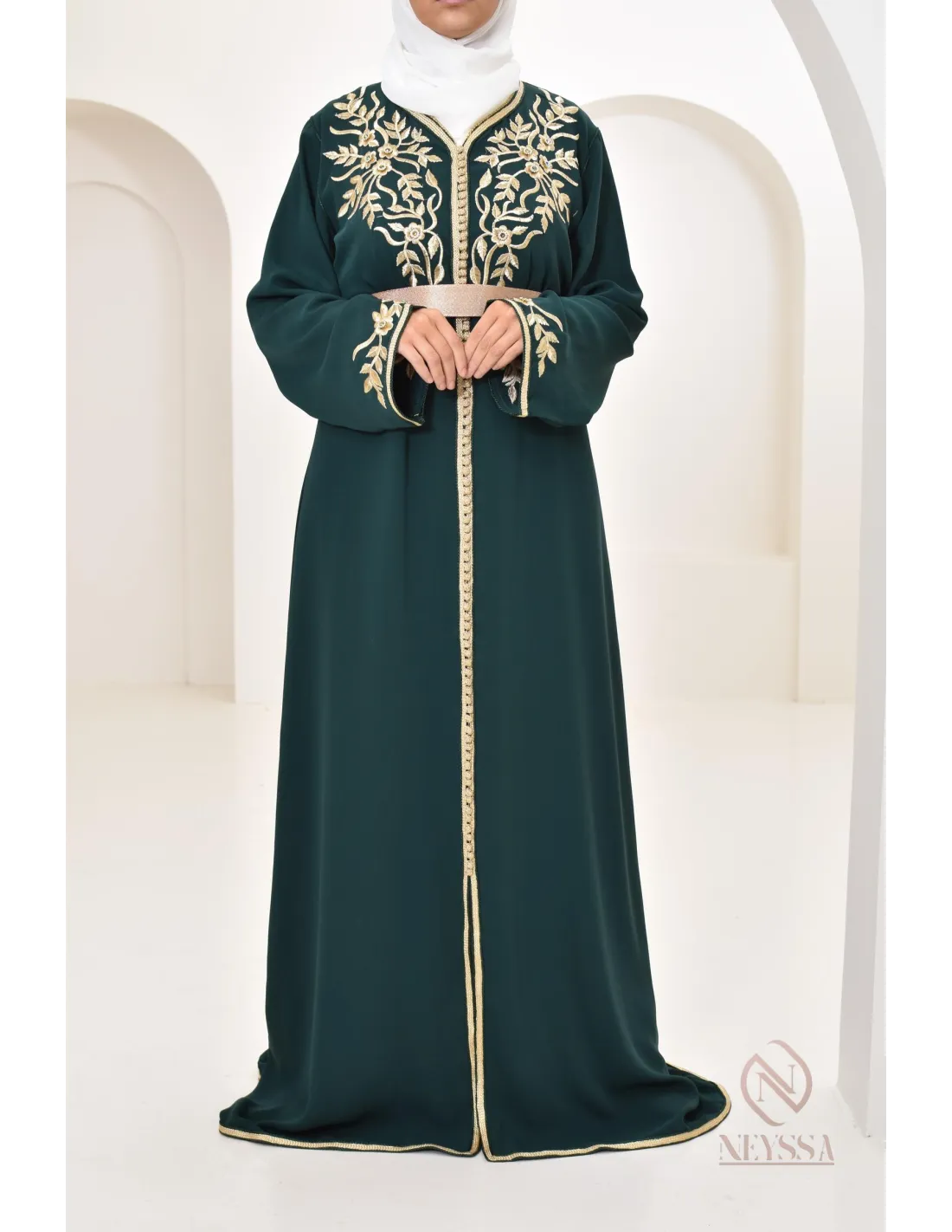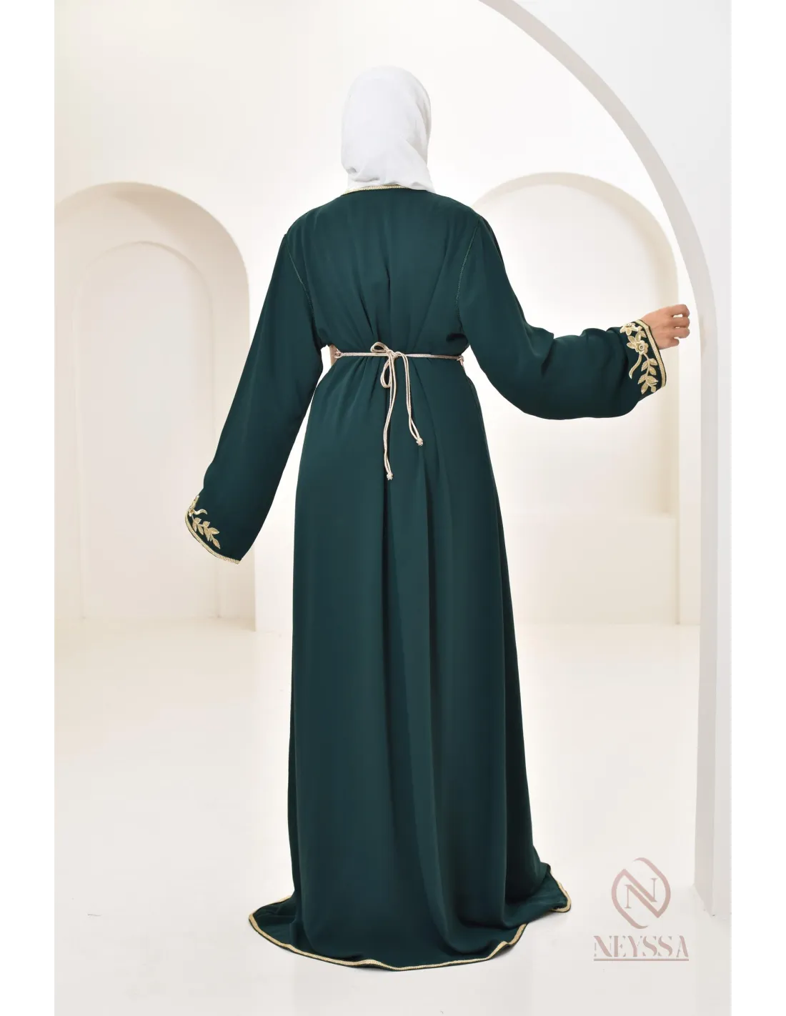 Caftan Marocain Ryme Vert Bouteille