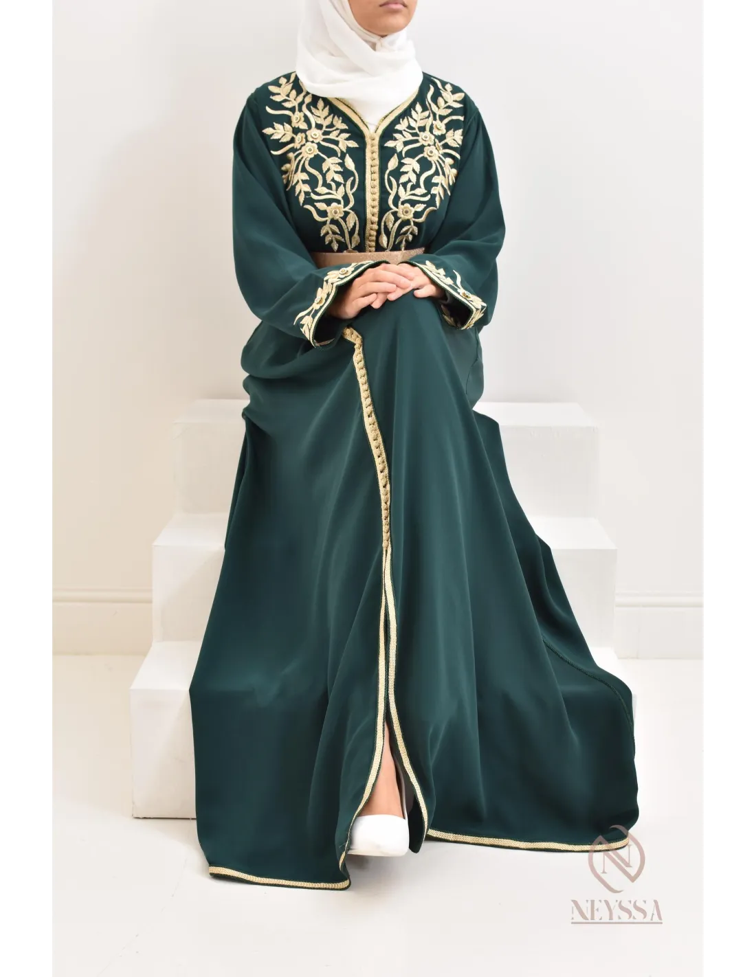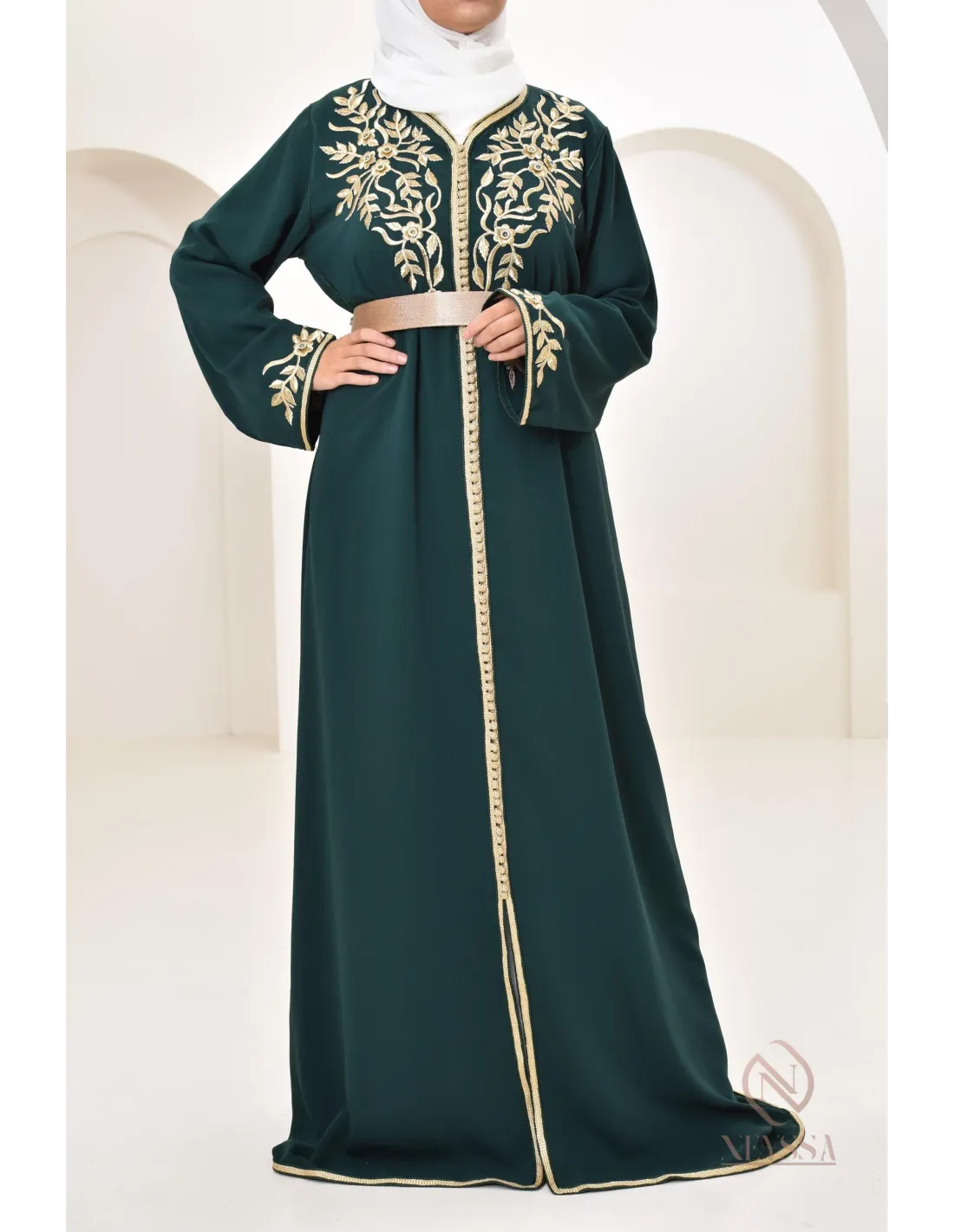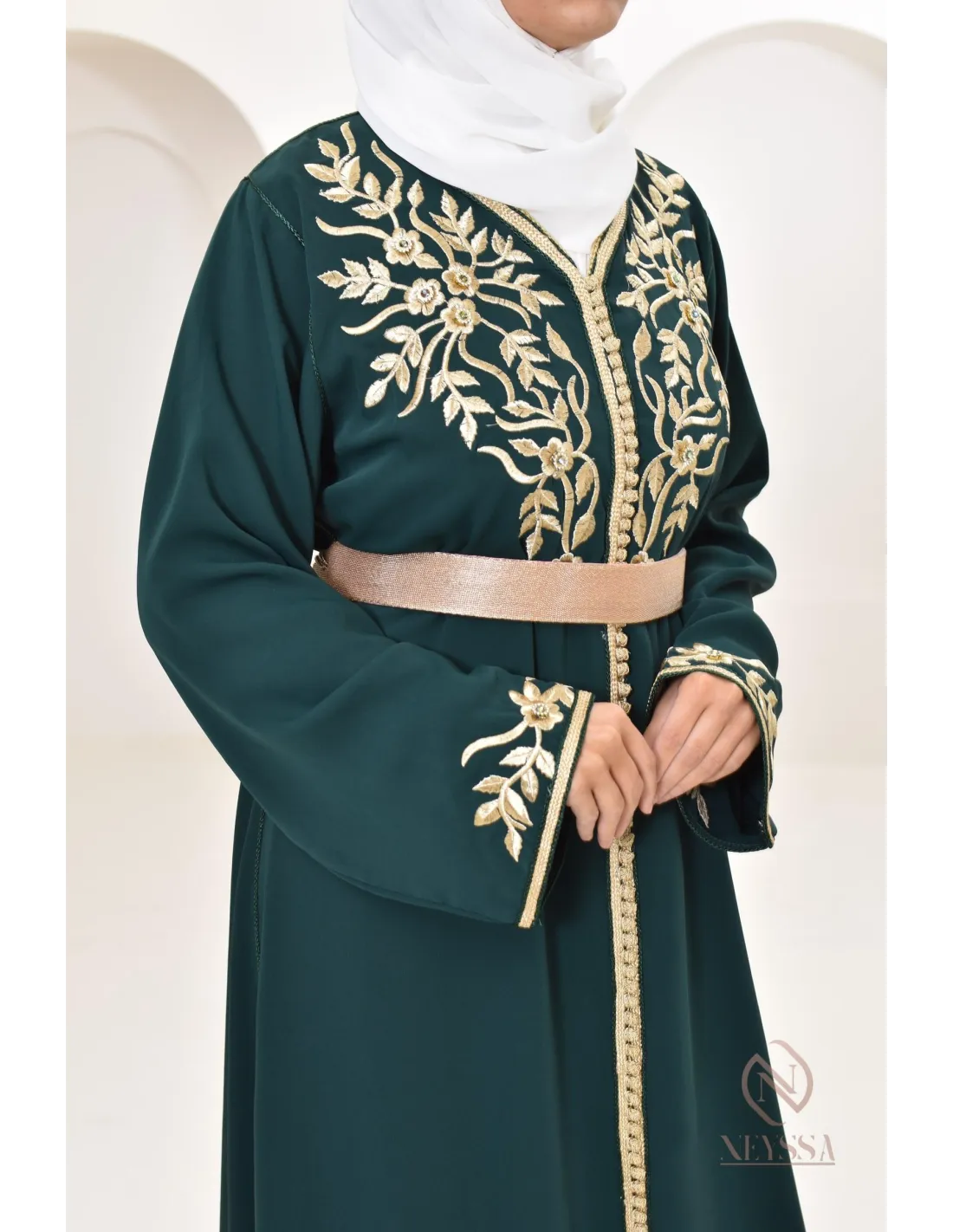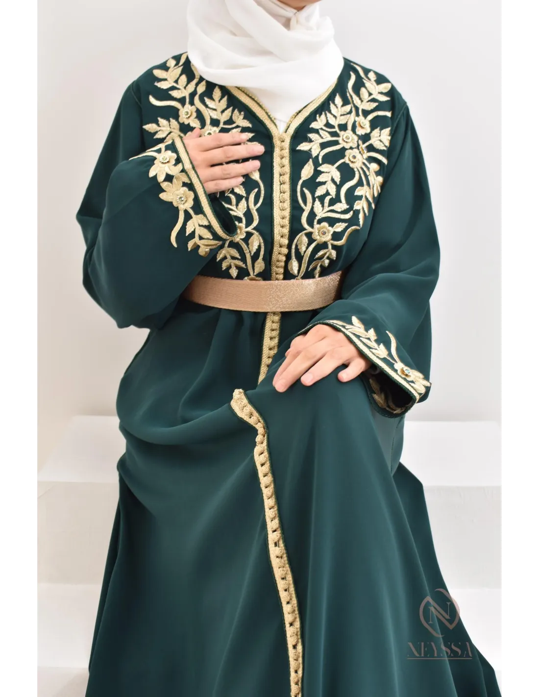 Caftan Marocain Ryme Vert Bouteille