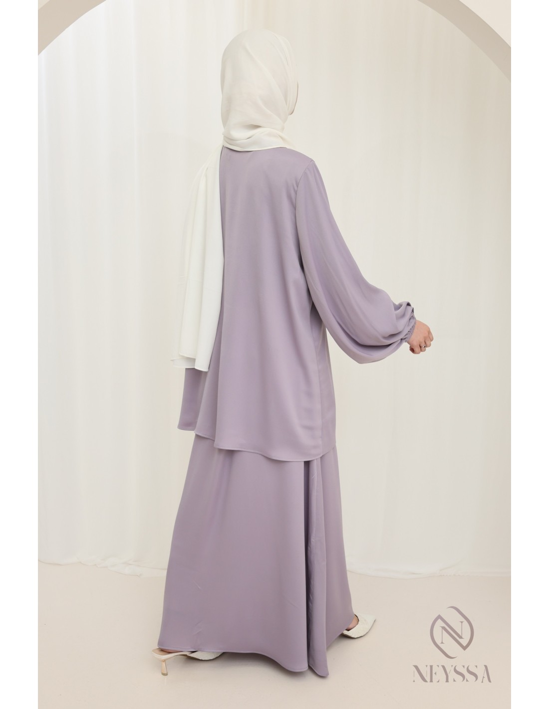 Ensemble pour femme jupe tunique manches bouffantes avec sfifa Lilas