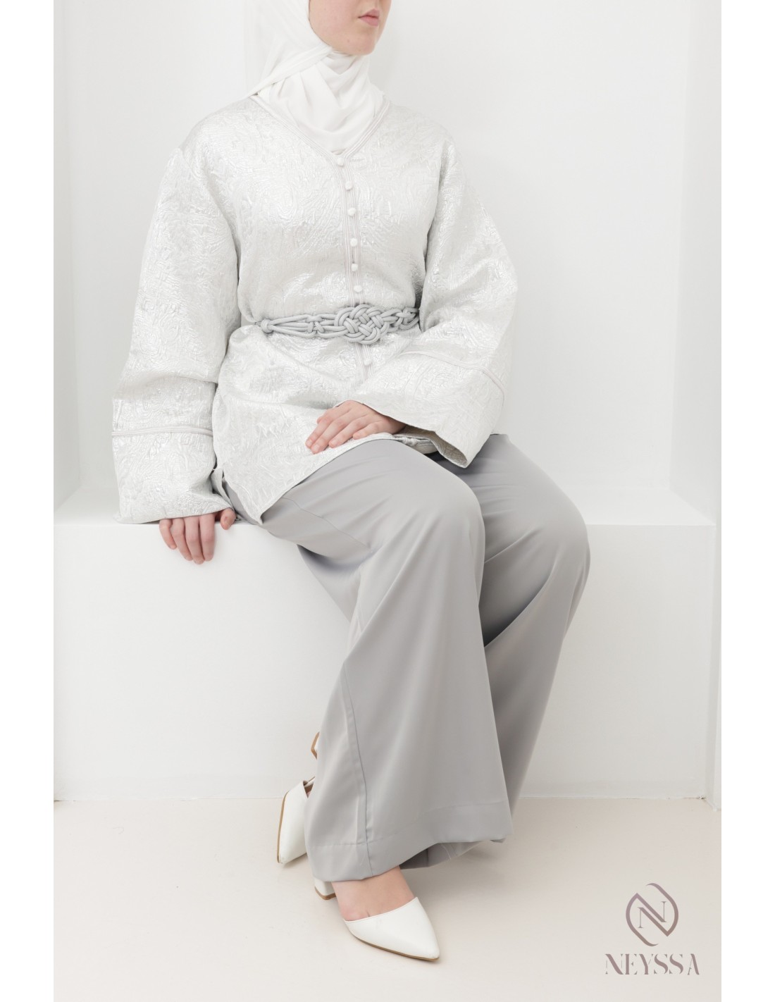 Ensemble tunique Brocart et palazzo Assilah Gris