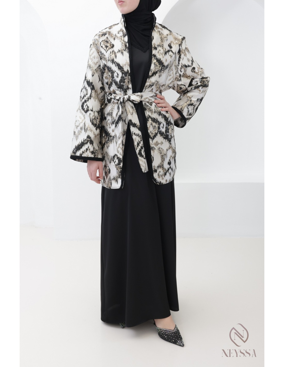 Ensemble brocart robe + kimono Meknassia Noir