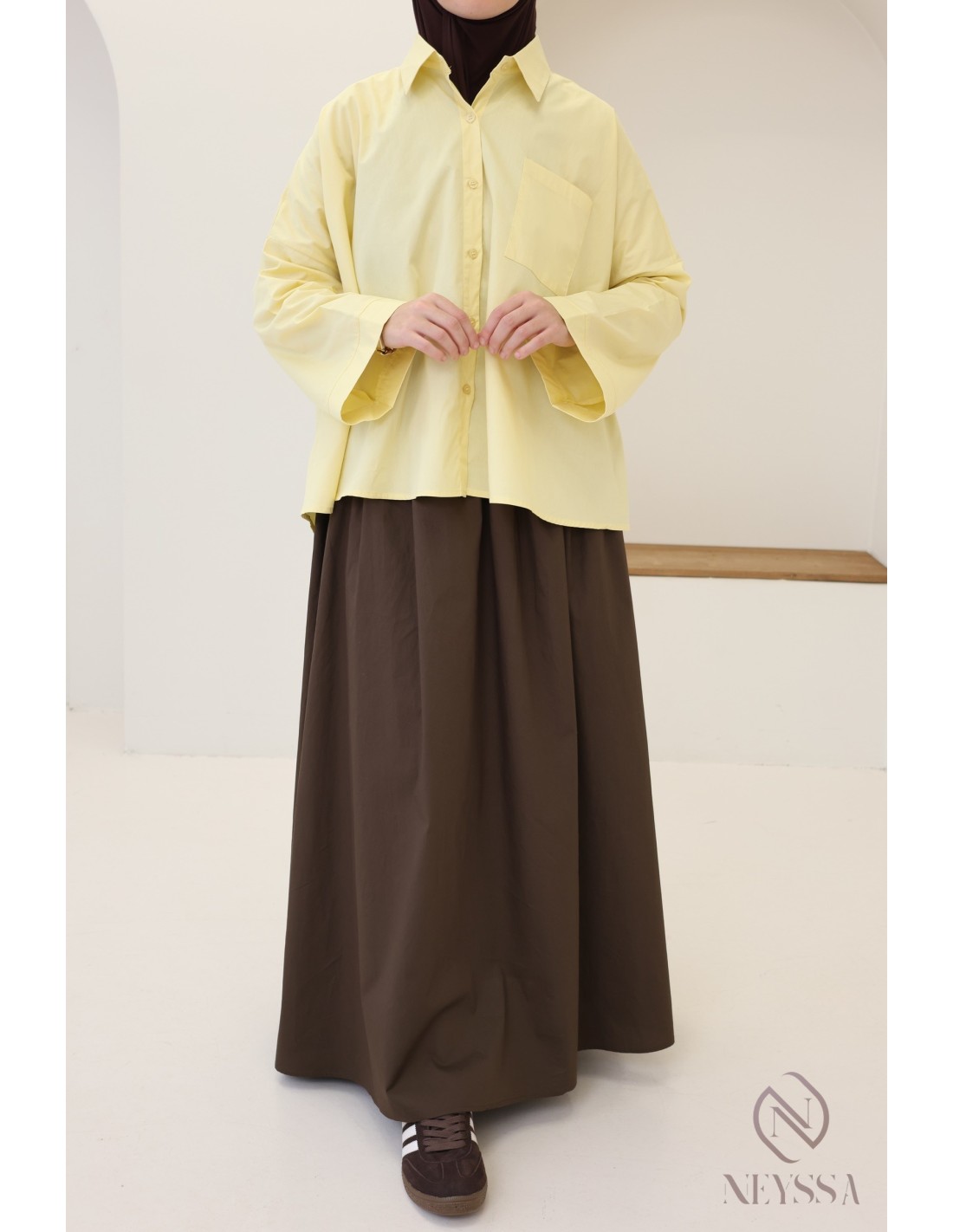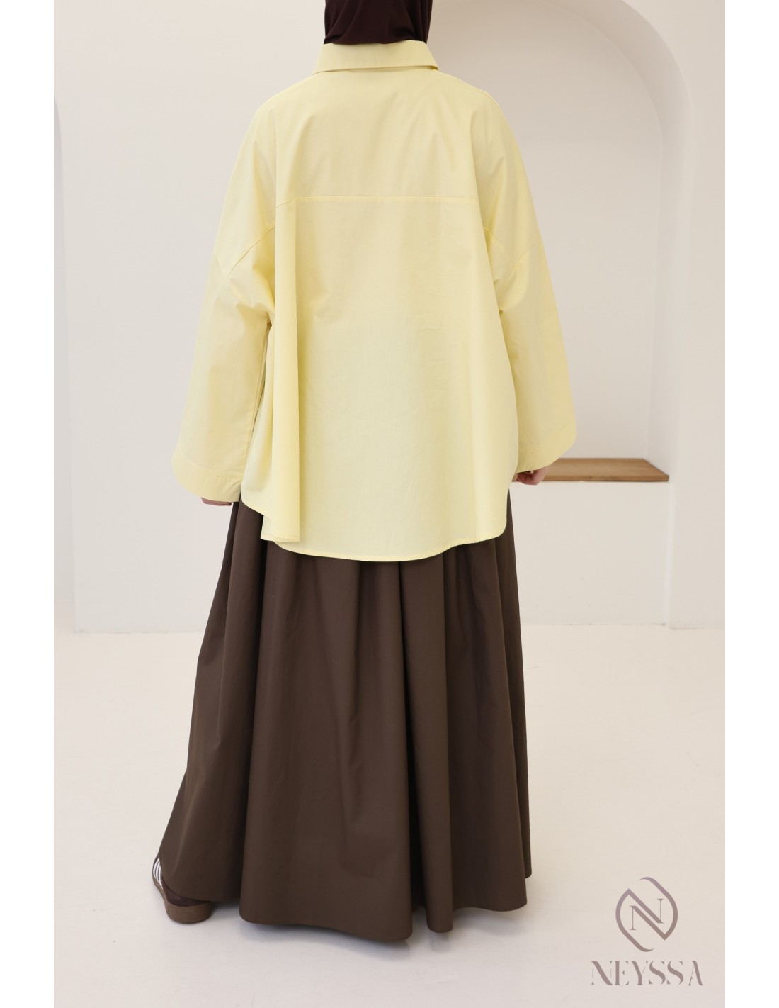 Votre dressing est rempli de jupes  d'été mais il vous manque de jolis hauts modestes pour compléter vos outfits ? Chez Neyssa, nous vous proposons des tenues pour femme hijabi dans lequel vous n'y trouverez que des pépites, dont cette magnifique chemise oversize.
