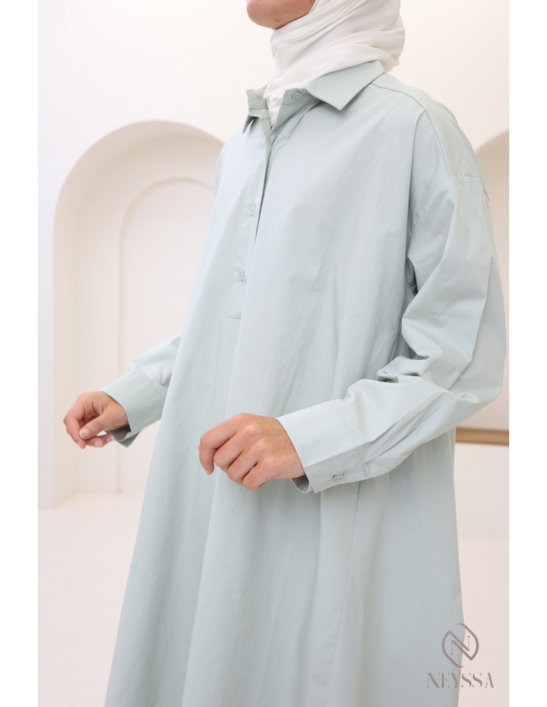 - Manches à boutons : pratiques et élégantes, elles facilitent les ablutions tout en assurant un confort optimal au quotidien.