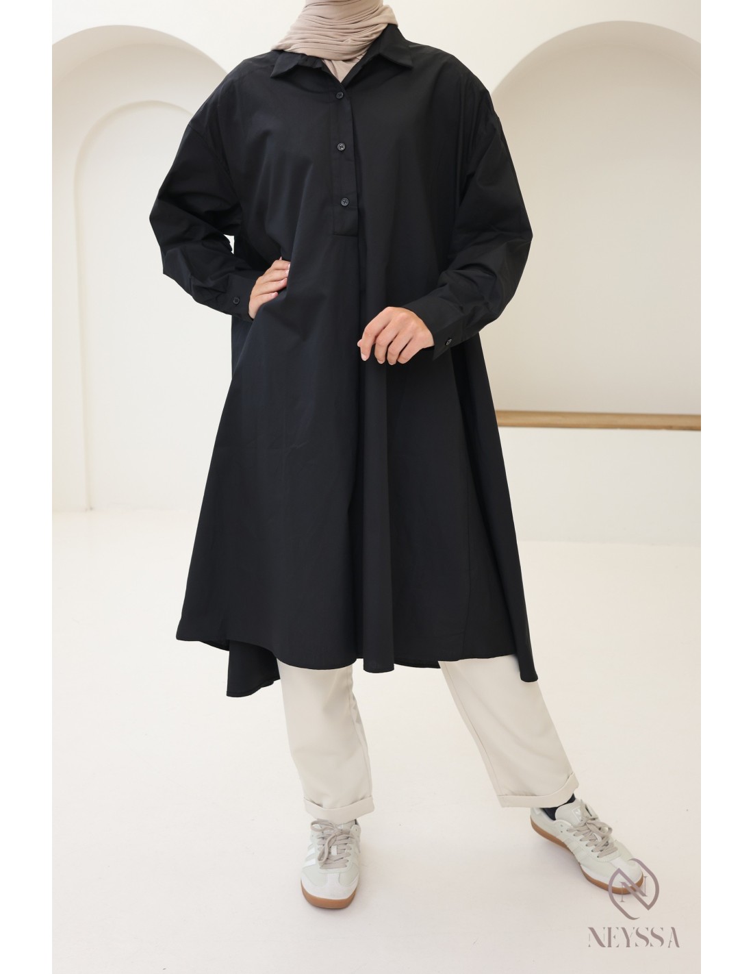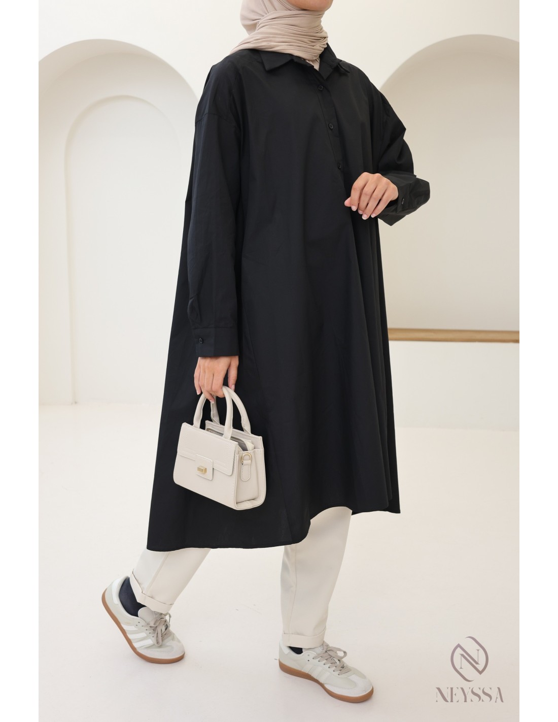 Blouse longue oversize col V chemise pour femme voilée : essentiel hijabi