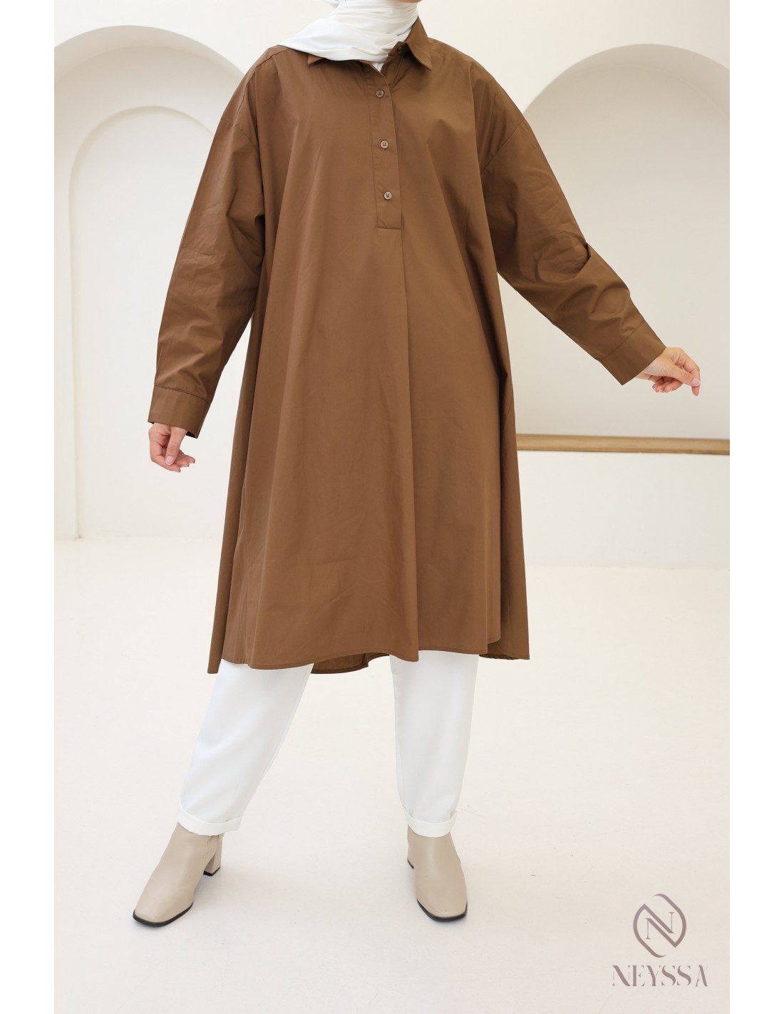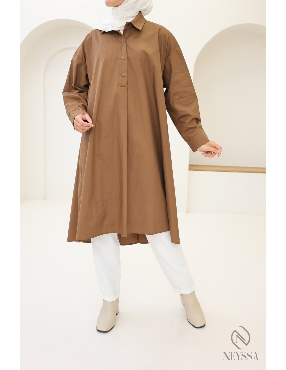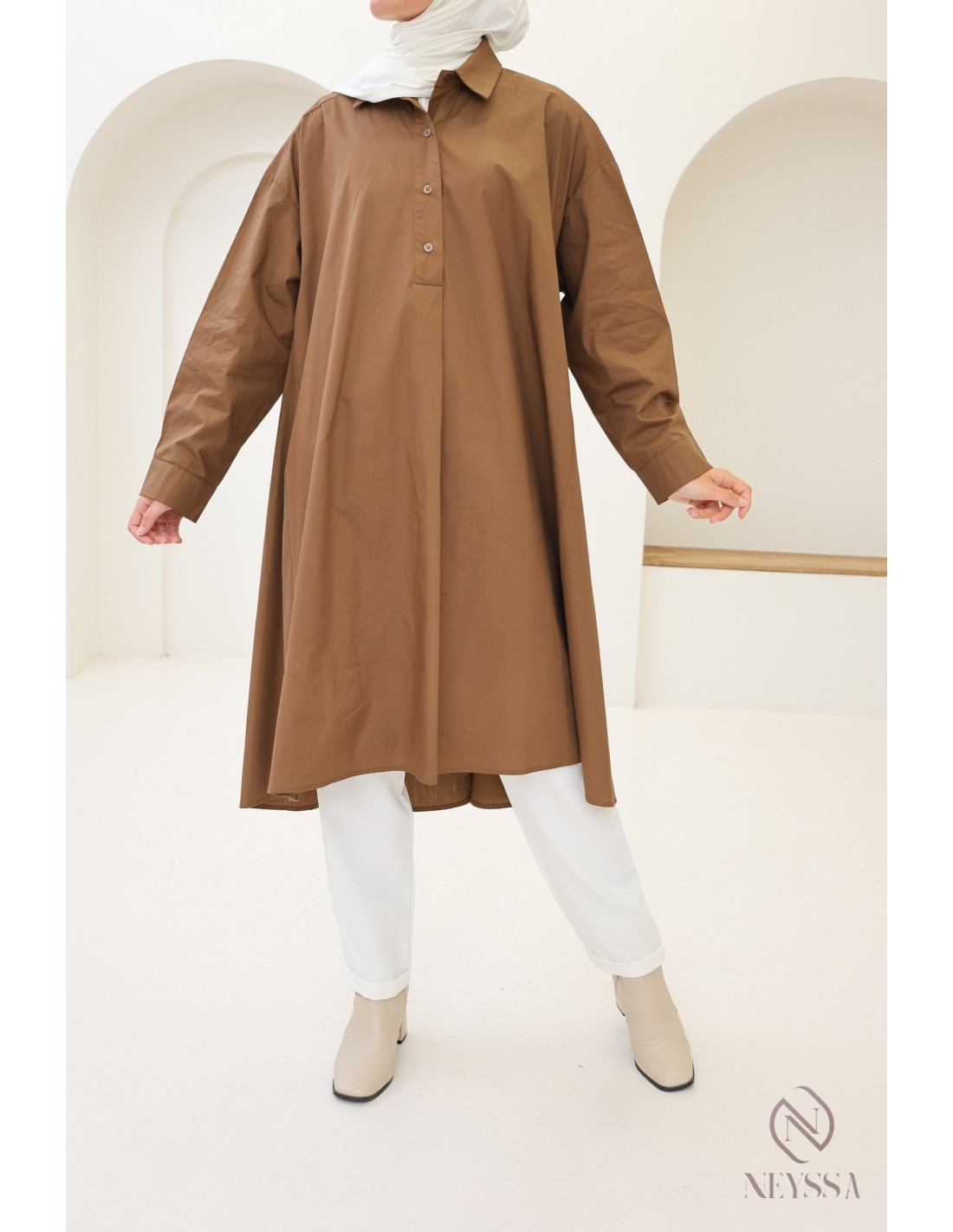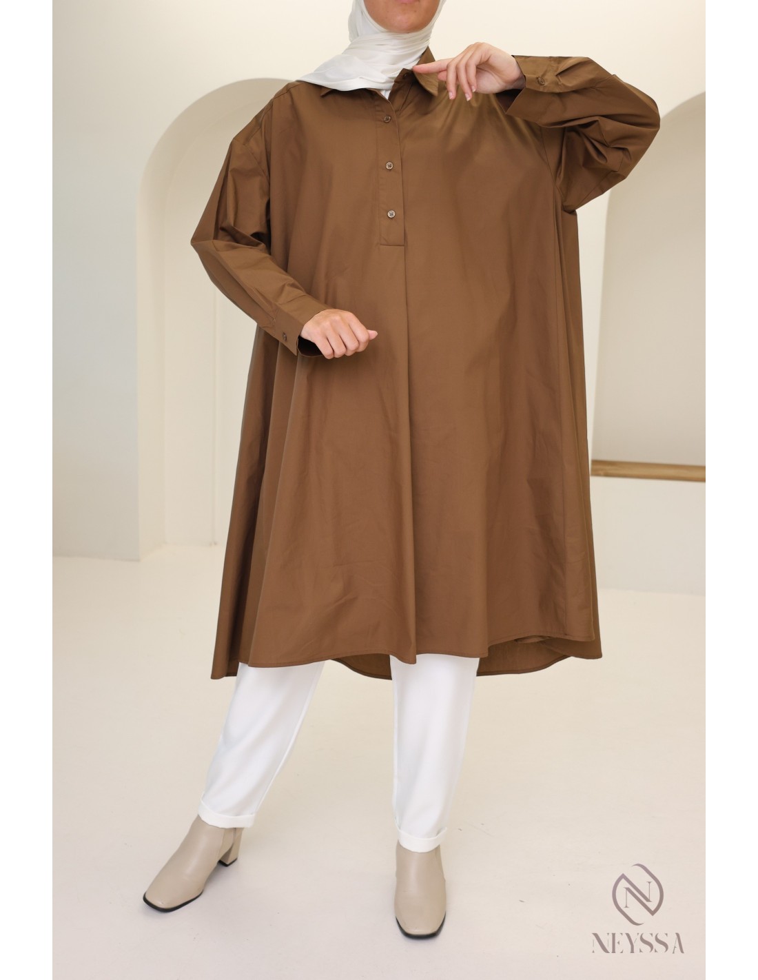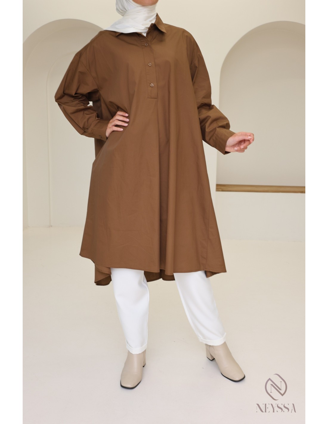 Blouse longue oversize col V chemise pour femme voilée : essentiel hijabi