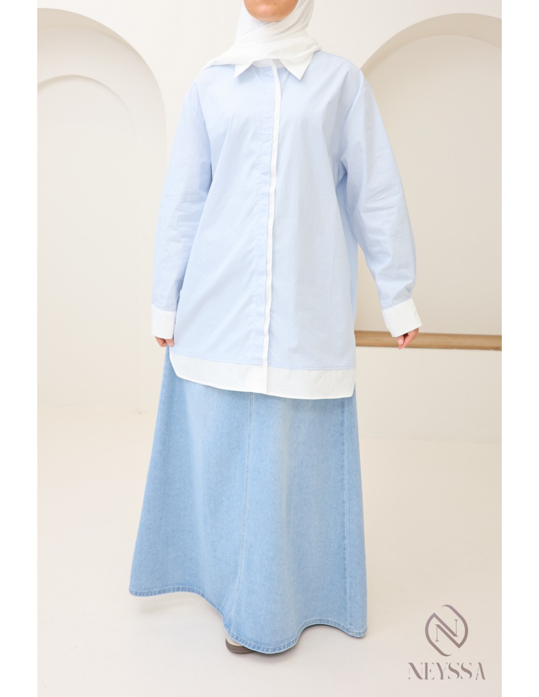 Votre dressing est rempli de jupes  d'été mais il vous manque de jolis hauts modestes pour compléter vos outfits ? Chez Neyssa, nous vous proposons des vêtements tendance pour femme hijabi dans lequel vous n'y trouverez que des pépites, dont cette magnifique chemise.