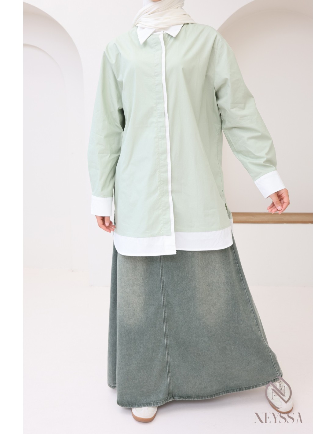 Votre dressing est rempli de jupes  d'été mais il vous manque de jolis hauts modestes pour compléter vos outfits ? Chez Neyssa, nous vous proposons des vêtements tendance pour femme hijabi dans lequel vous n'y trouverez que des pépites, dont cette magnifique chemise.