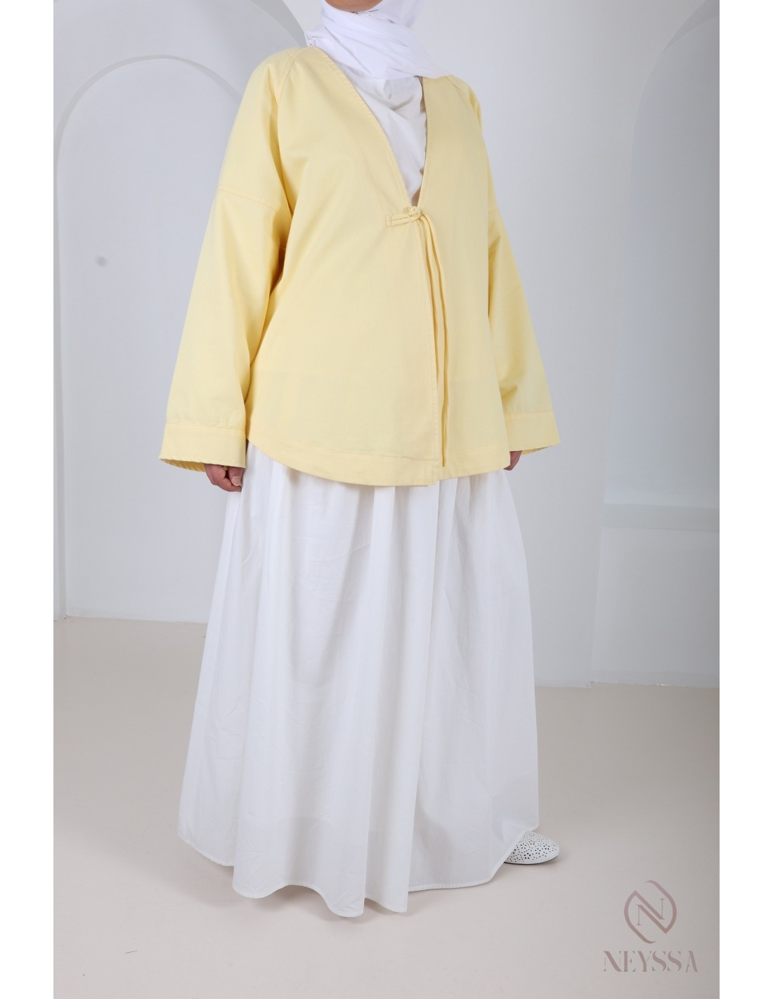 Veste yellow en Coton style kimono mi longue coupe tendance