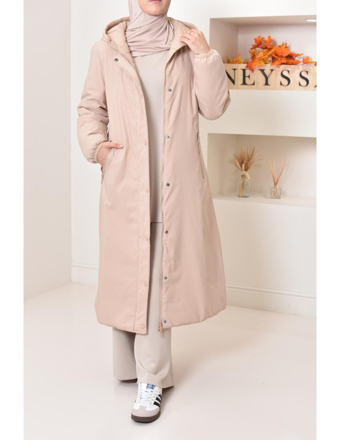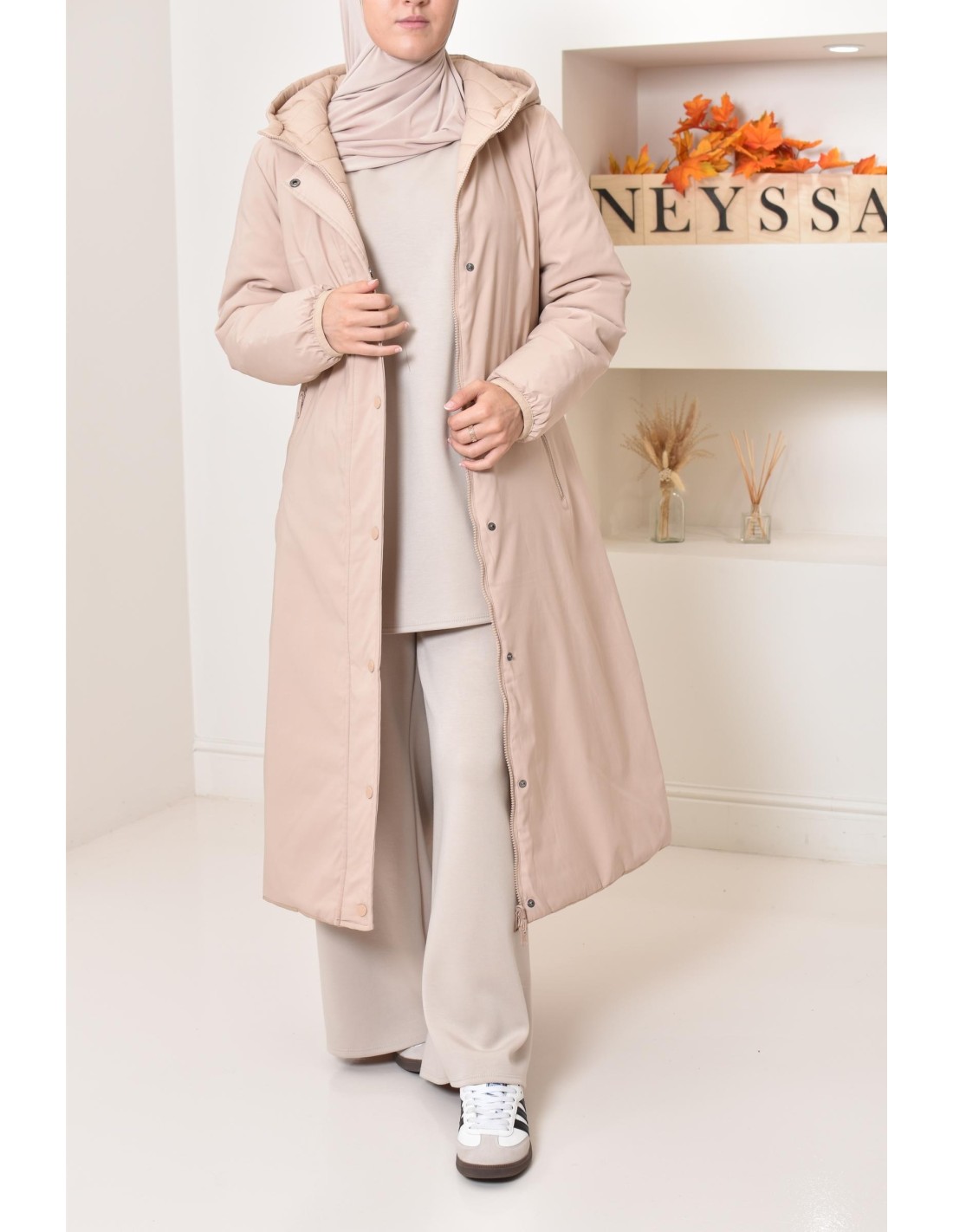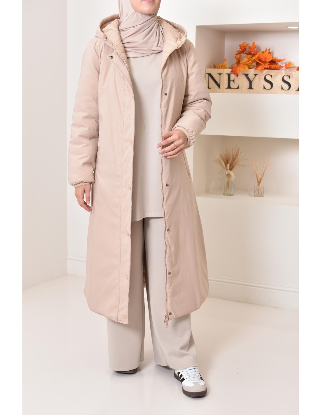Avec cette superbe parka beige réversible doudoune, vous pouvez composer de très belles tenues tout en restant bien au chaud. Que vous optiez pour un ensemble en coton, un pantalon ample, une robe ou même une abaya, cette parka s'associera harmonieusement avec tous vos choix vestimentaires.
