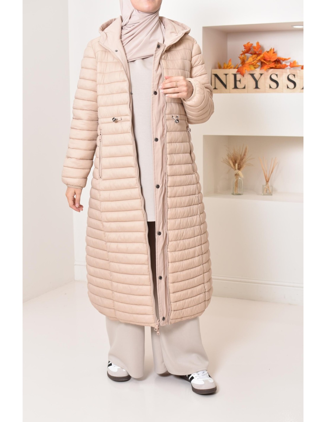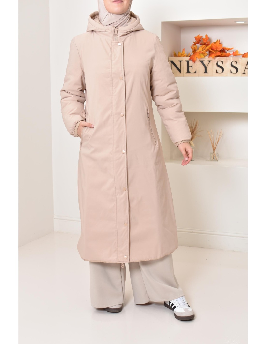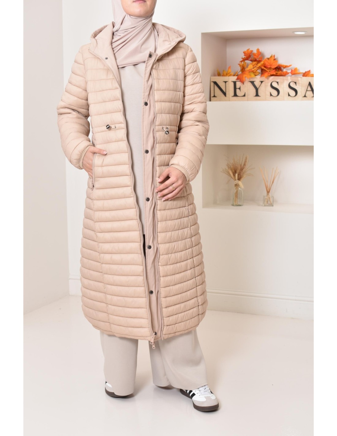 Avec cette superbe parka beige réversible doudoune, vous pouvez composer de très belles tenues tout en restant bien au chaud. Que vous optiez pour un ensemble en coton, un pantalon ample, une robe ou même une abaya, cette parka s'associera harmonieusement avec tous vos choix vestimentaires.