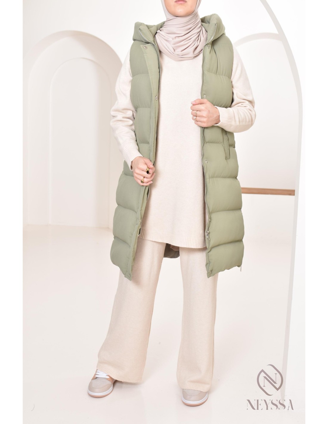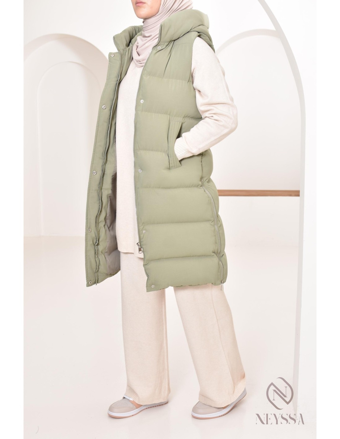Doudoune sans manche à capuche kaki Must have d'hiver pour un look stylé !