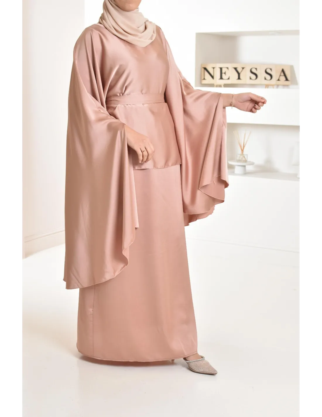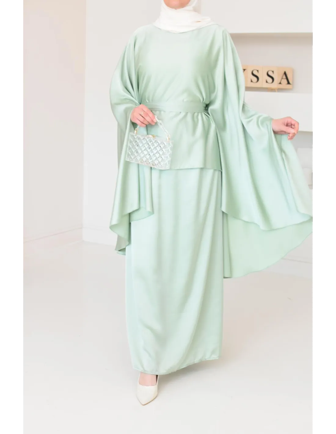 Découvrez notre ensemble femme tunique papillon et jupe assortie en satin, un choix parfait pour une soirée spéciale ou une occasion formelle.