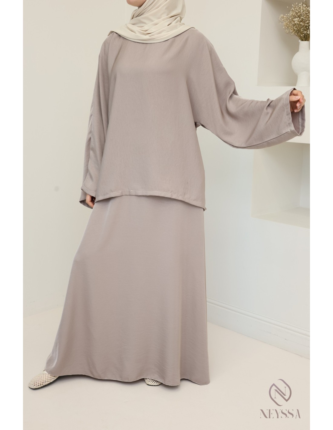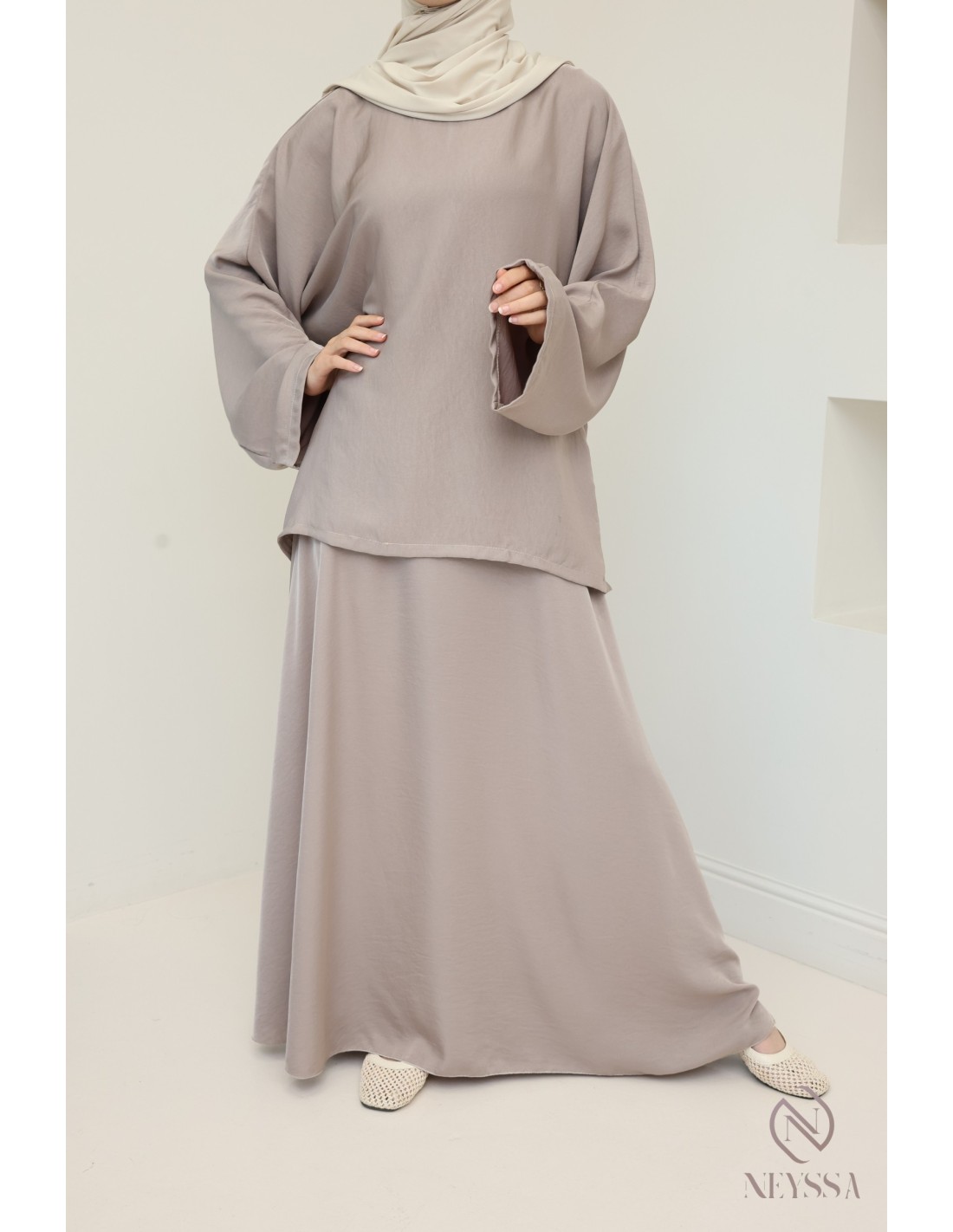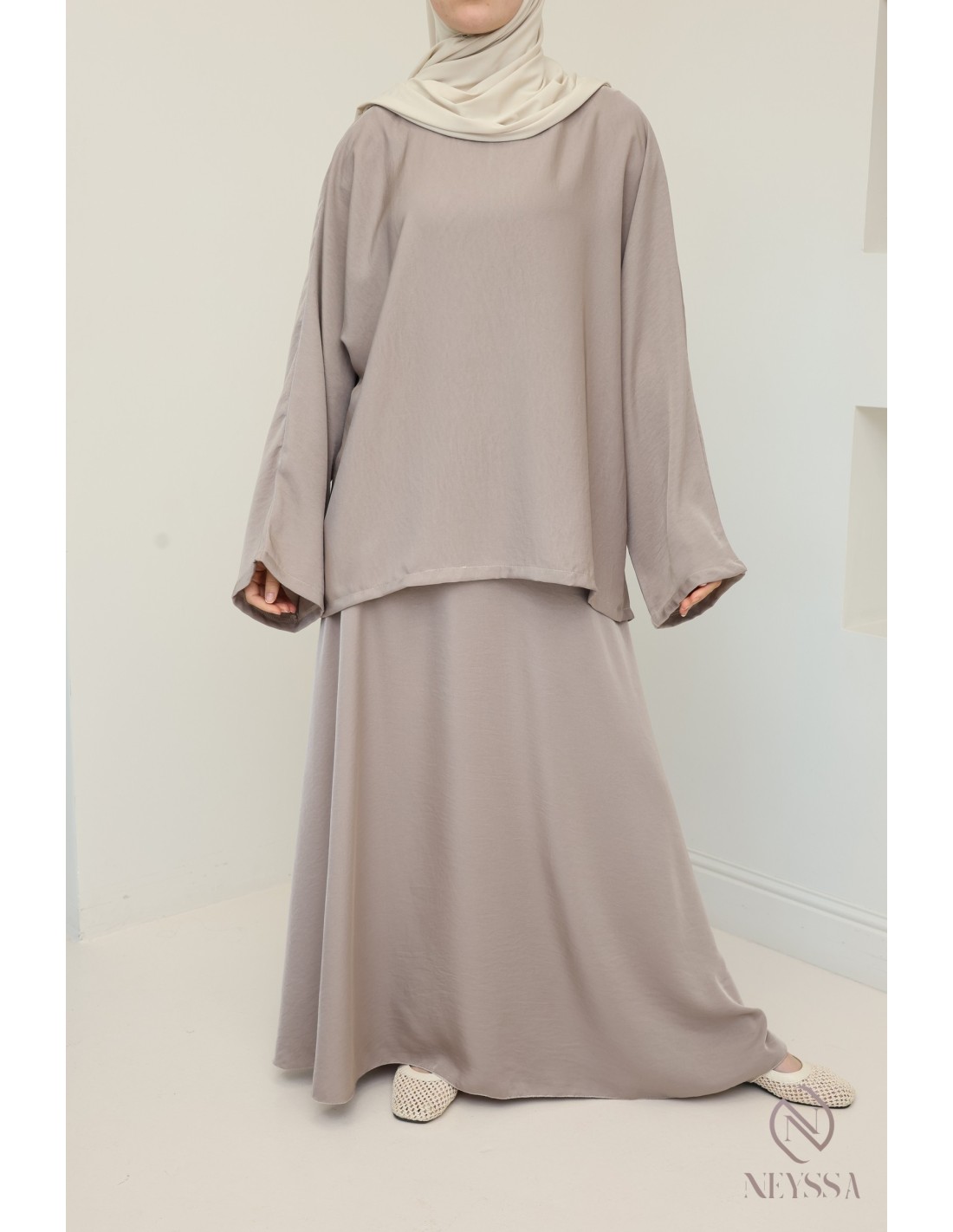 Ensemble fluide femme voilée : tunique longue et jupe élastique