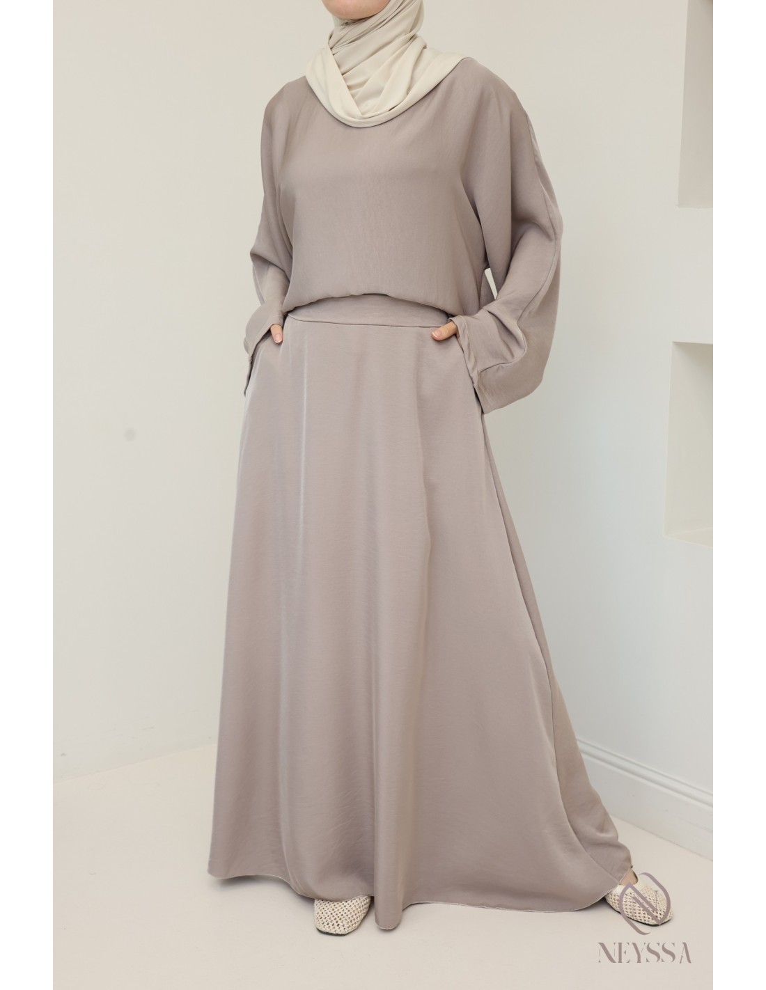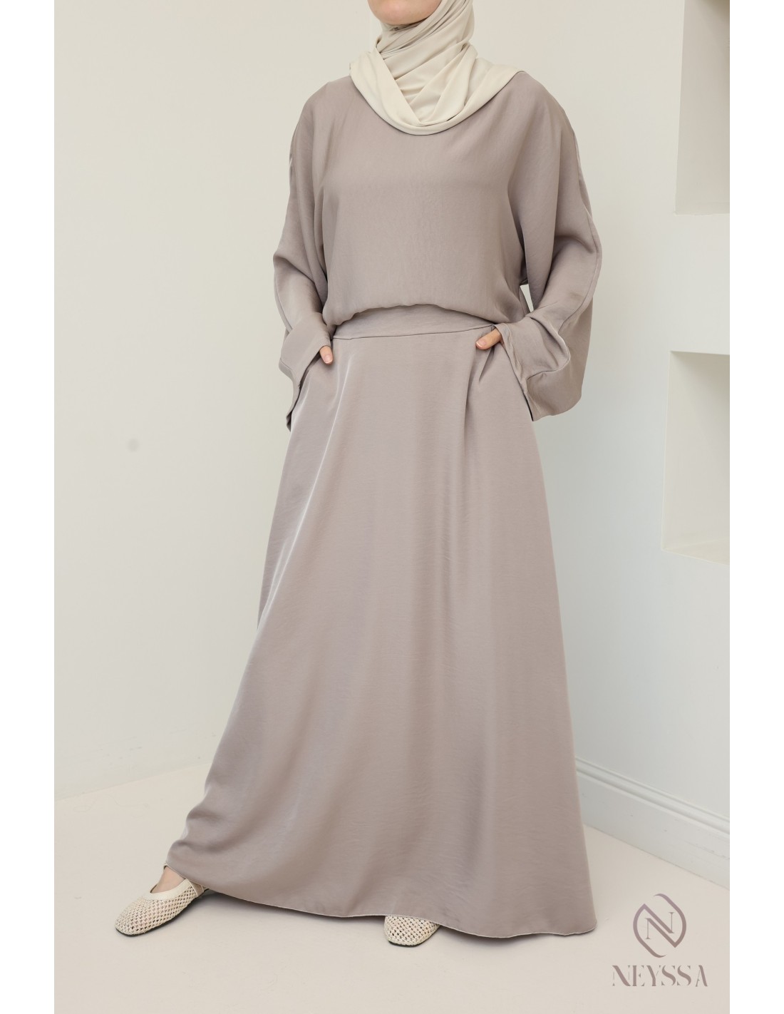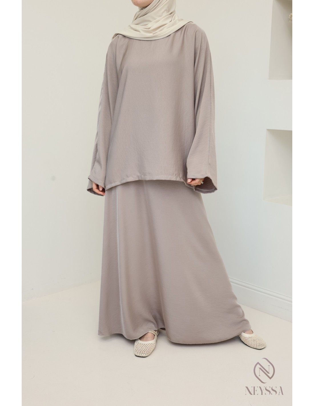 Ensemble fluide femme voilée : tunique longue et jupe élastique