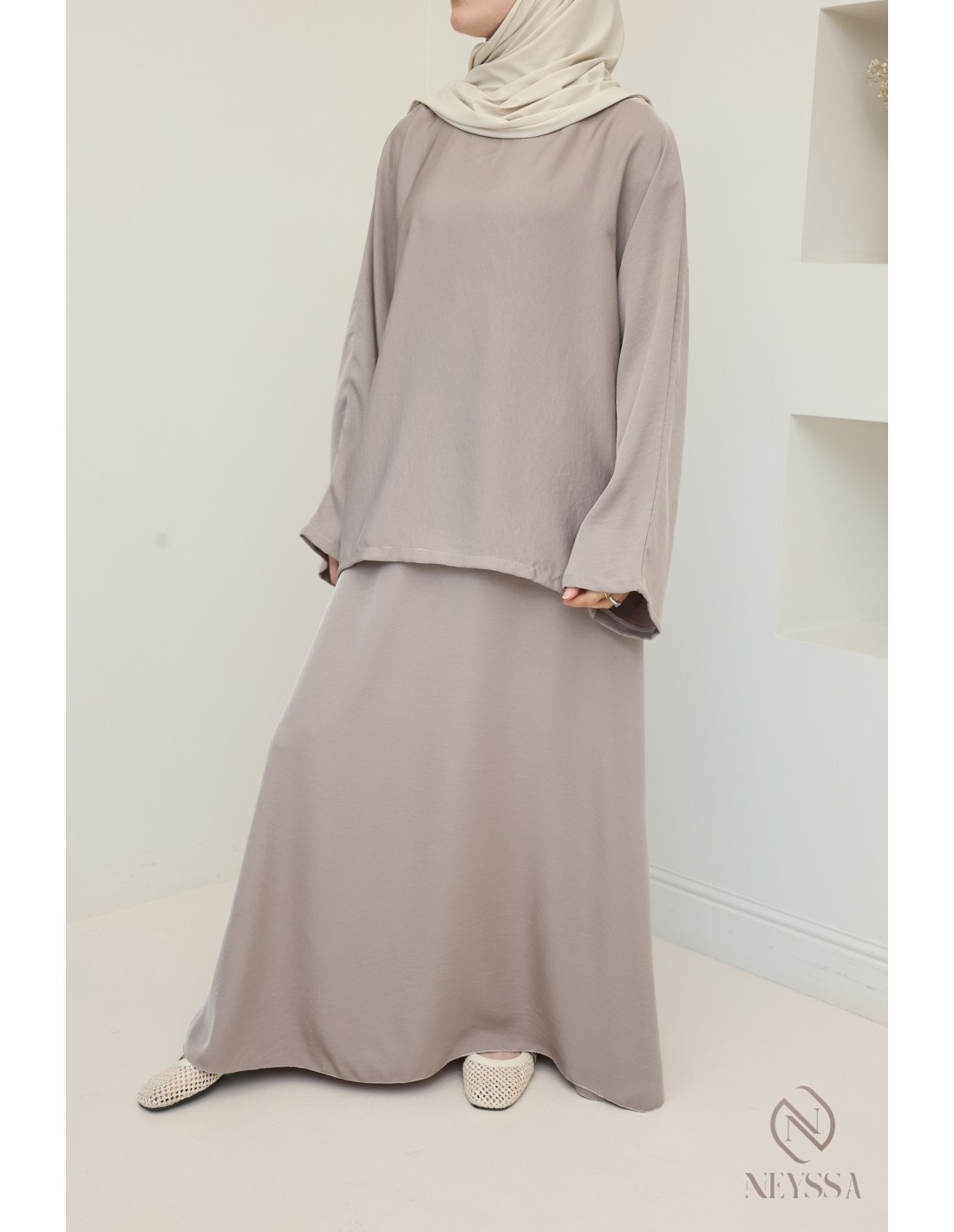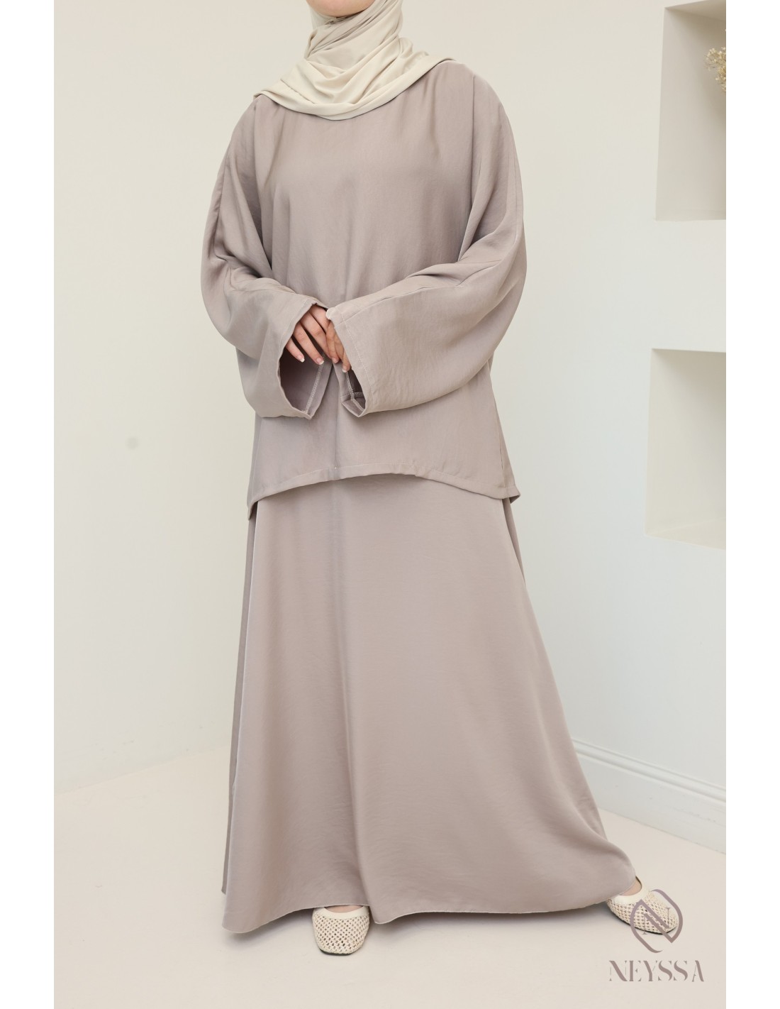 Ensemble 2 pièces taupe femme : tunique manches longues + jupe