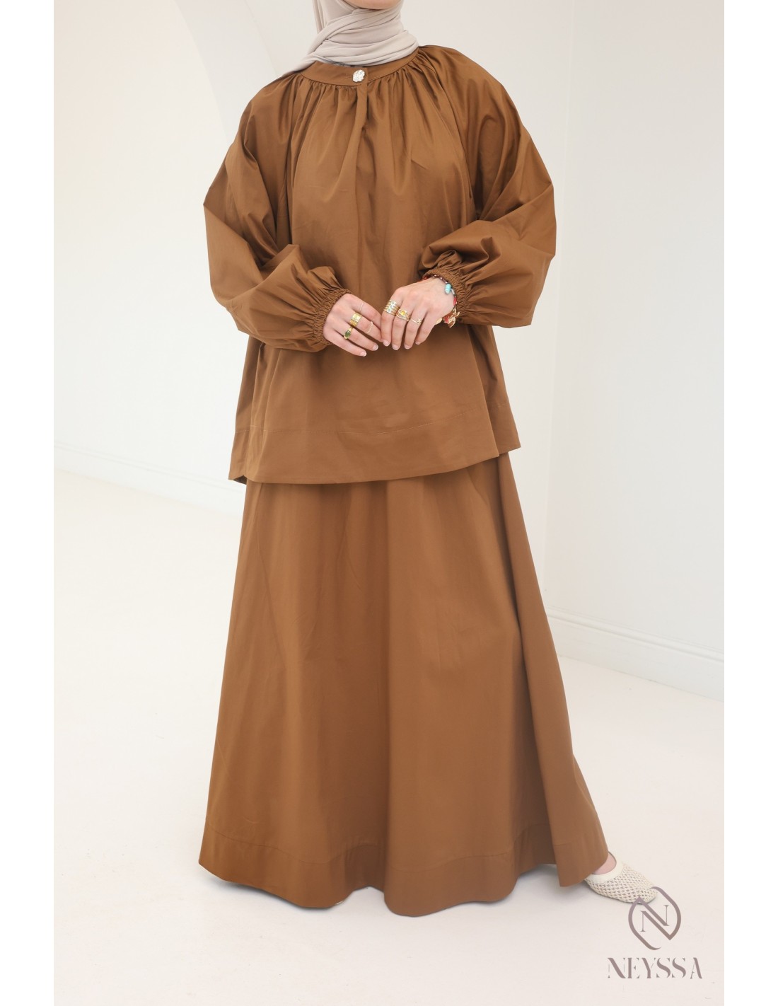 Ensemble 2 pièces Neyssa en coton jupe longue + blouse hijabi