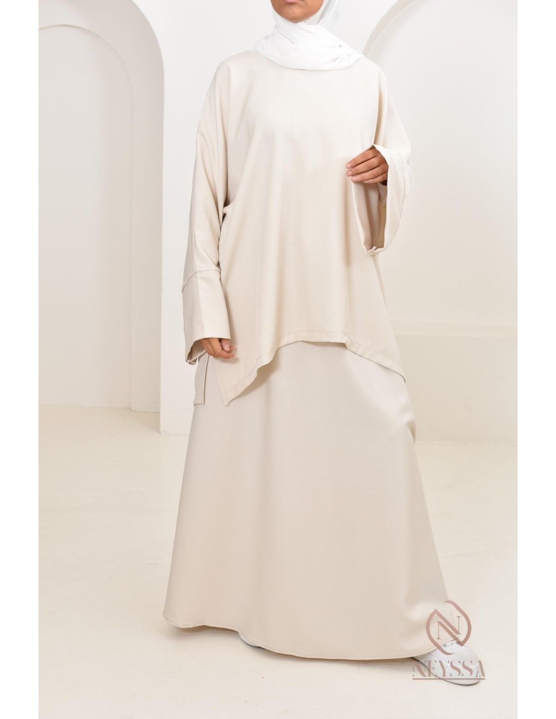 Ensemble Haut long + Jupe longue Beige pour femme moderne