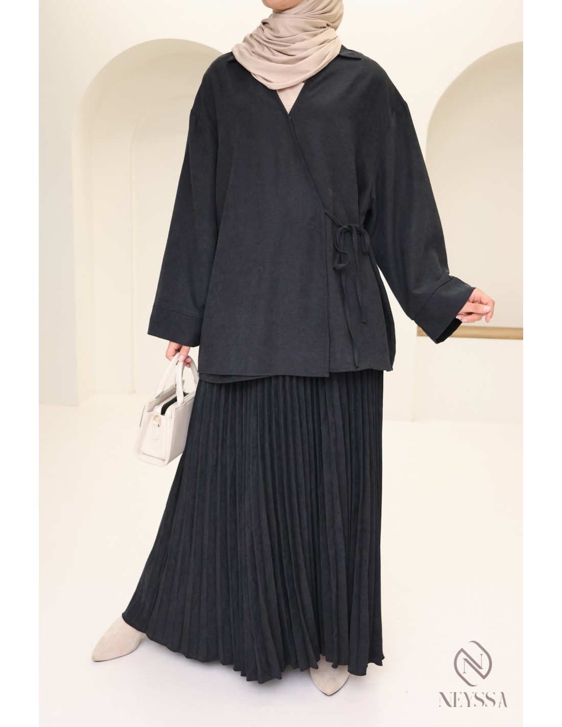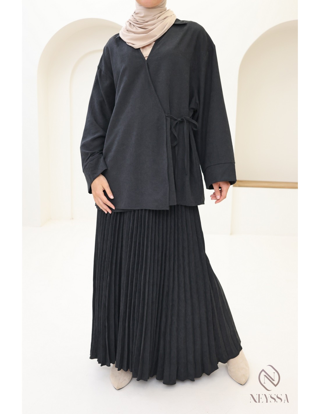 Ensemble 2 pièces cache cœur effet daim femme hijabi