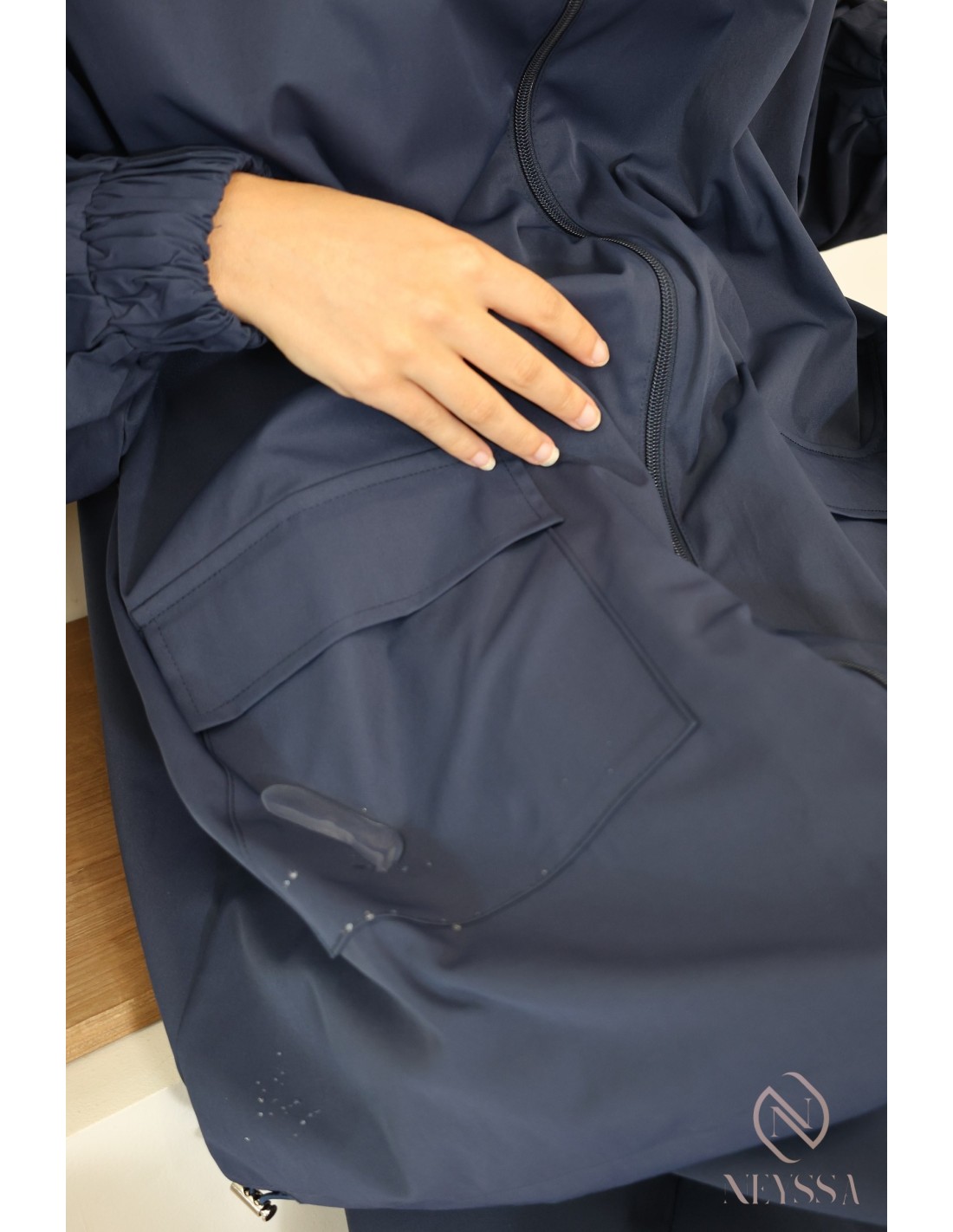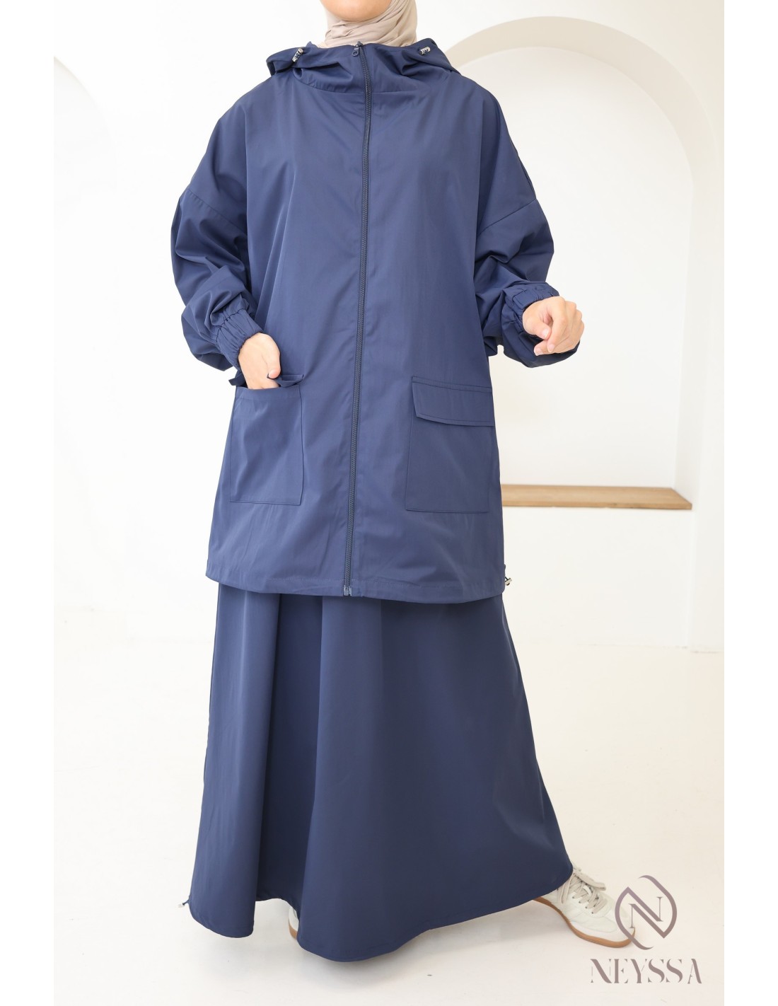 Ensemble 2 pièces coupe vent bleu pour femme hijabi tendance