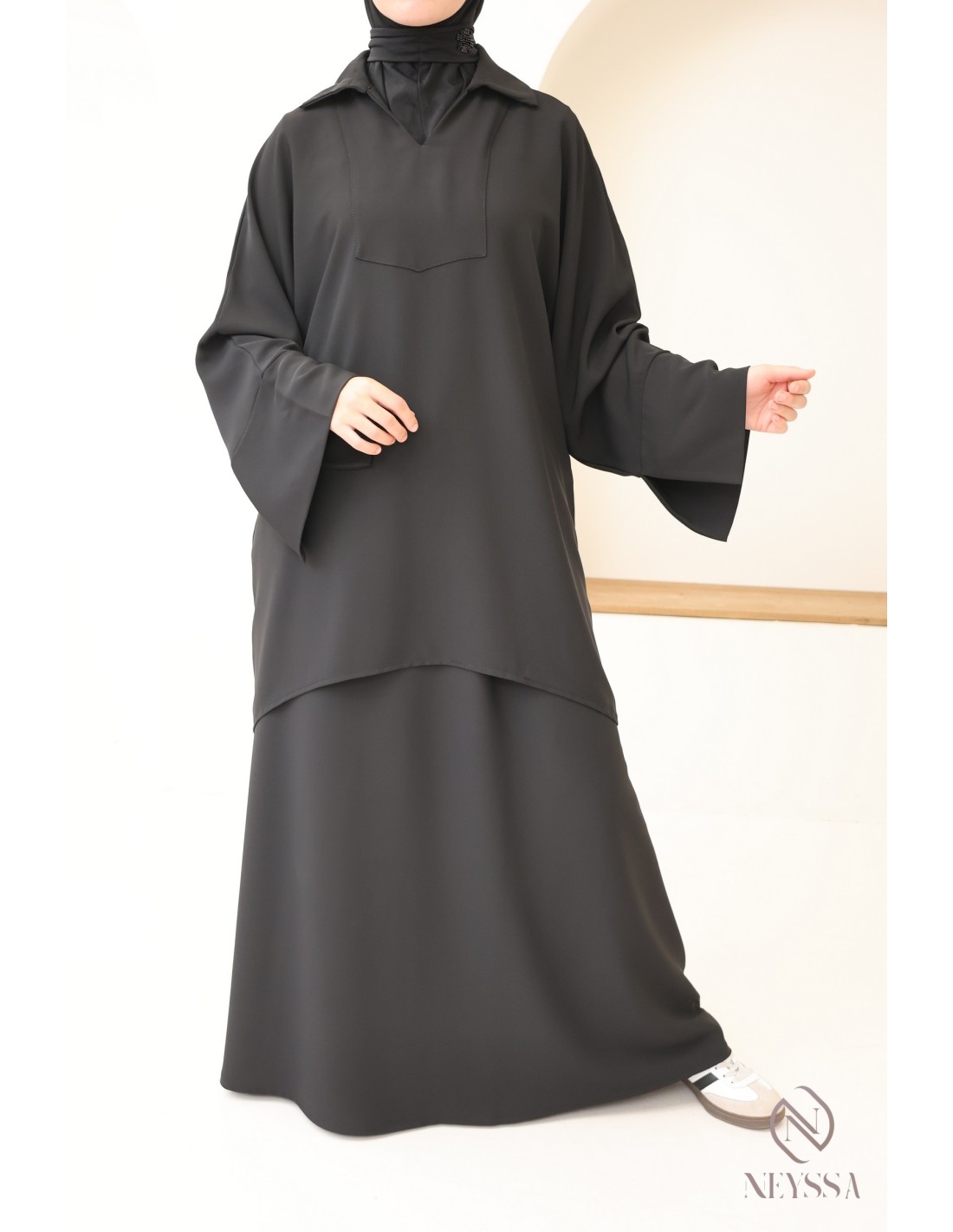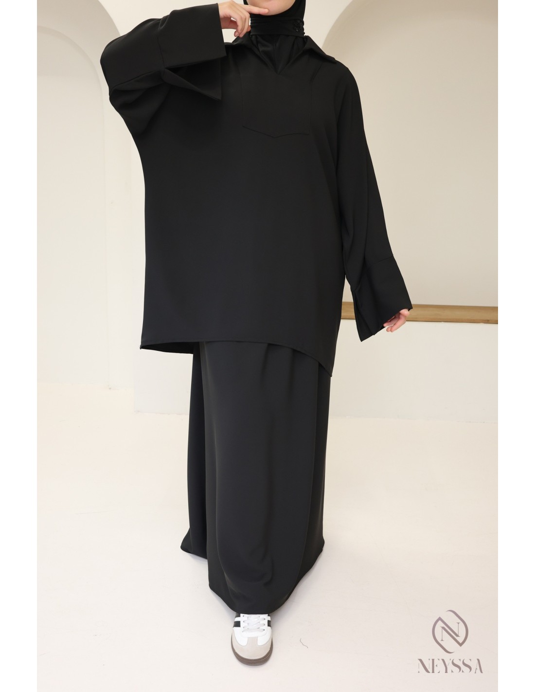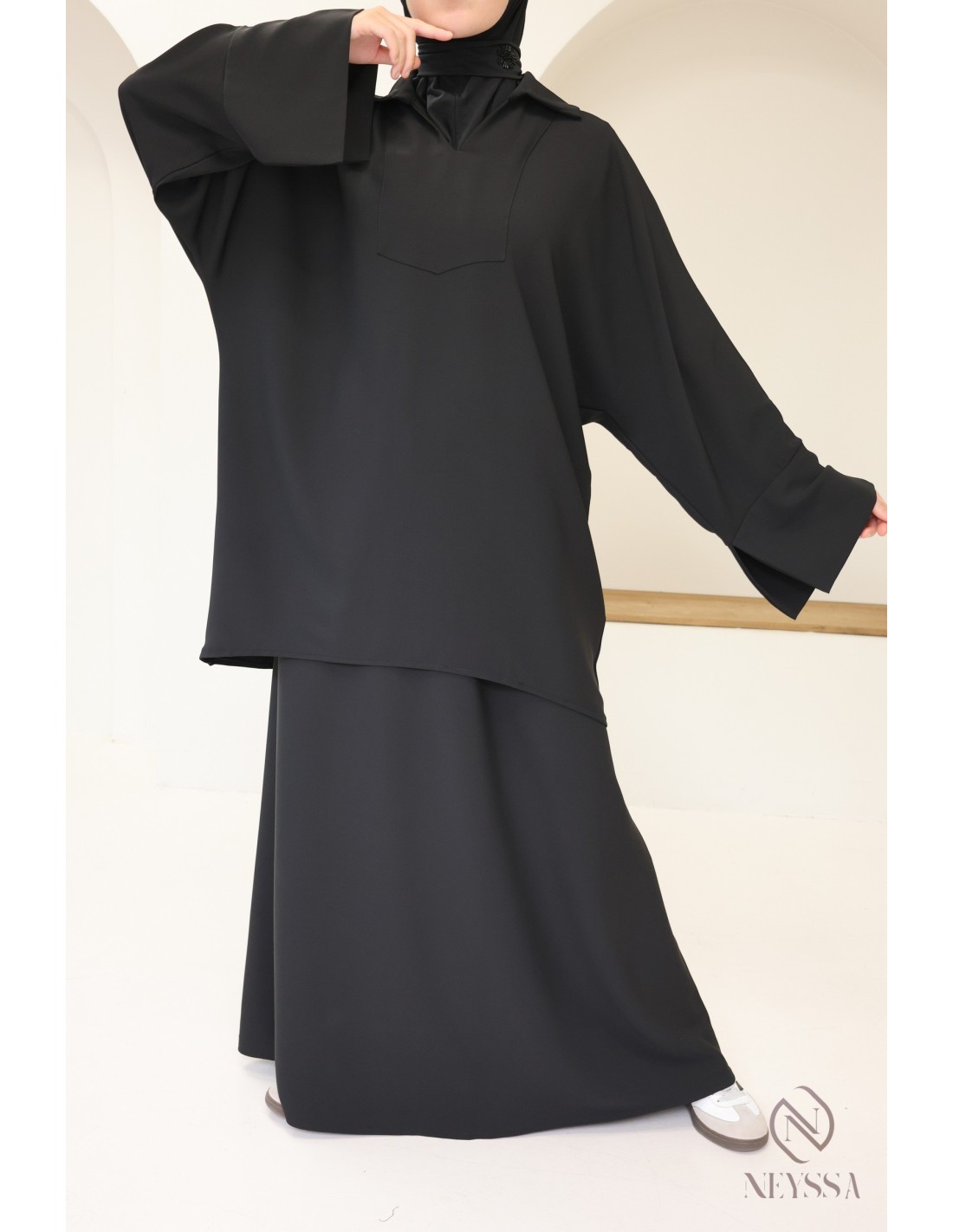- Modestie respectée : Cet ensemble est pensé pour répondre aux exigences de la mode modeste, offrant une élégance modeste et respectueuse des principes de la pudeur.