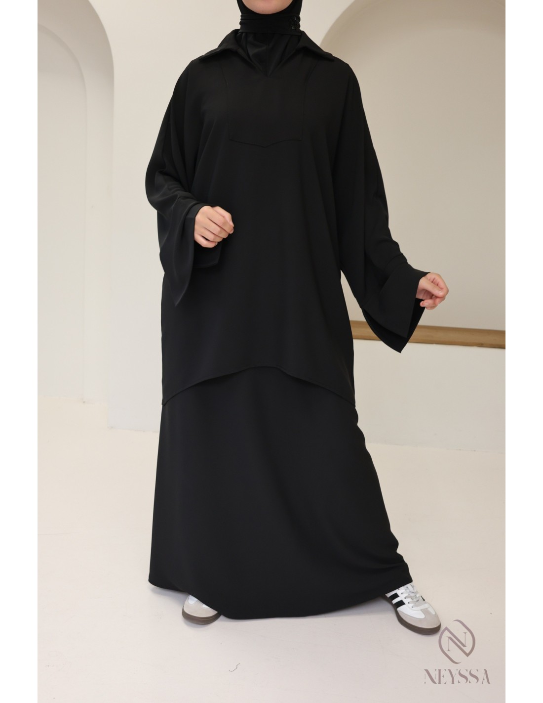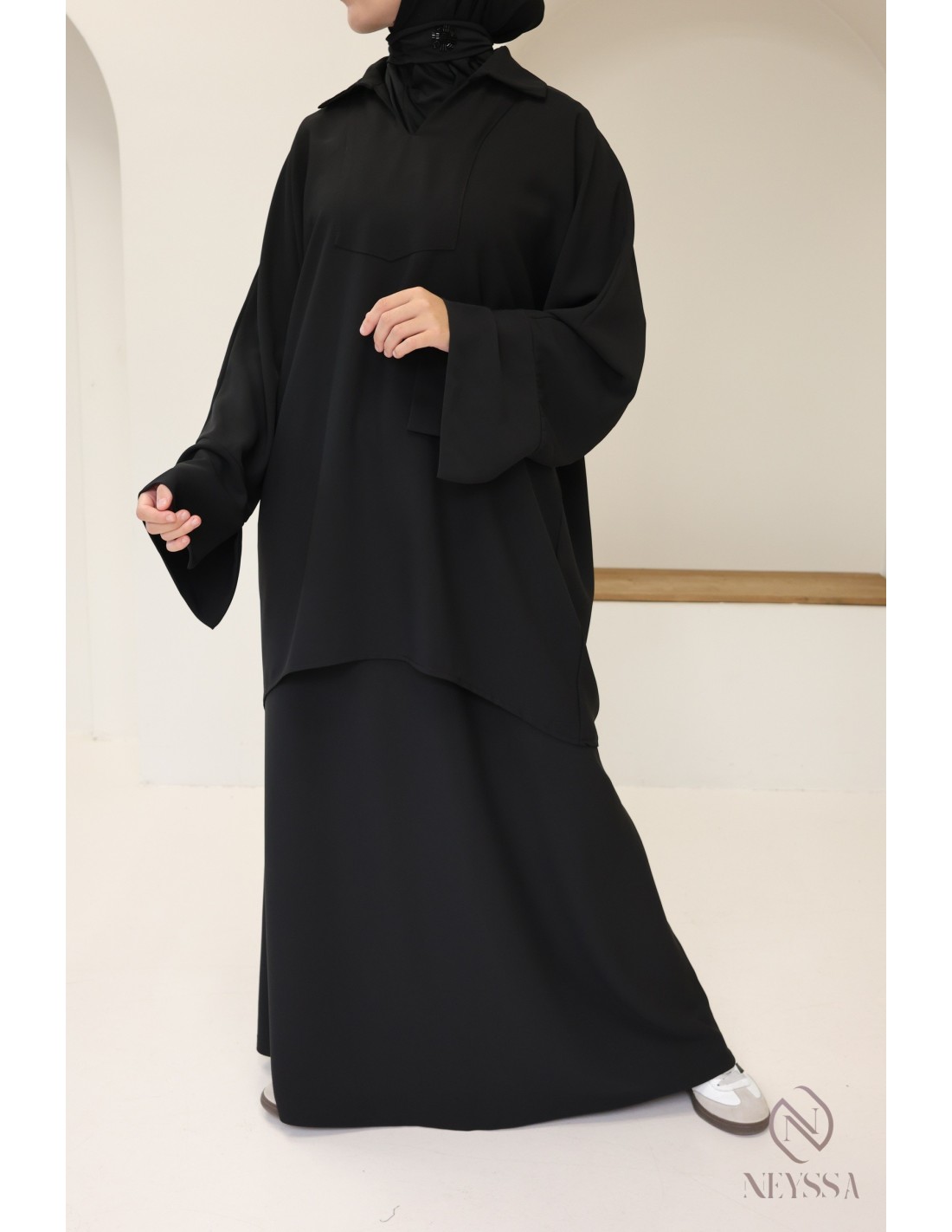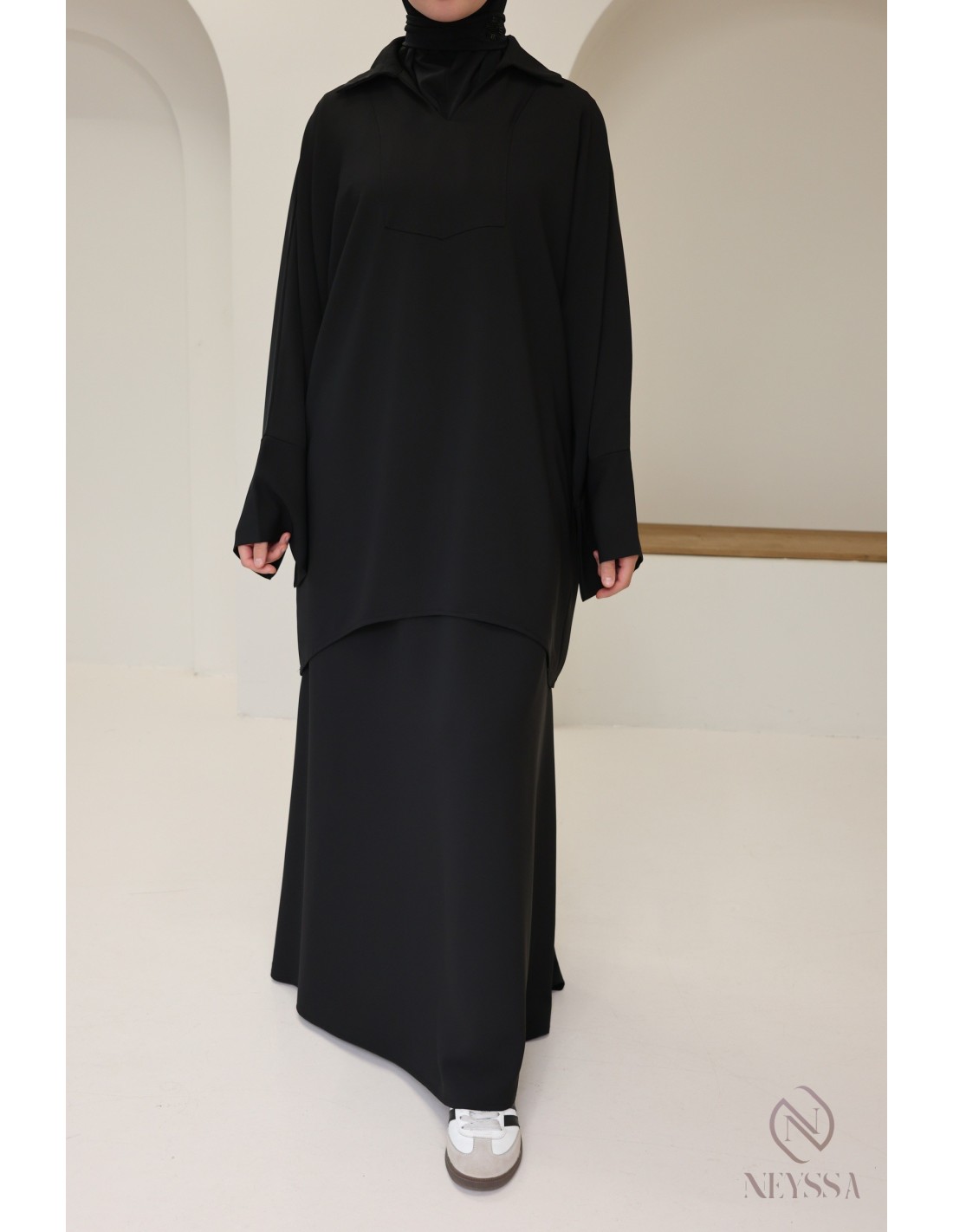 - Modestie respectée : Cet ensemble est pensé pour répondre aux exigences de la mode modeste, offrant une élégance modeste et respectueuse des principes de la pudeur.
