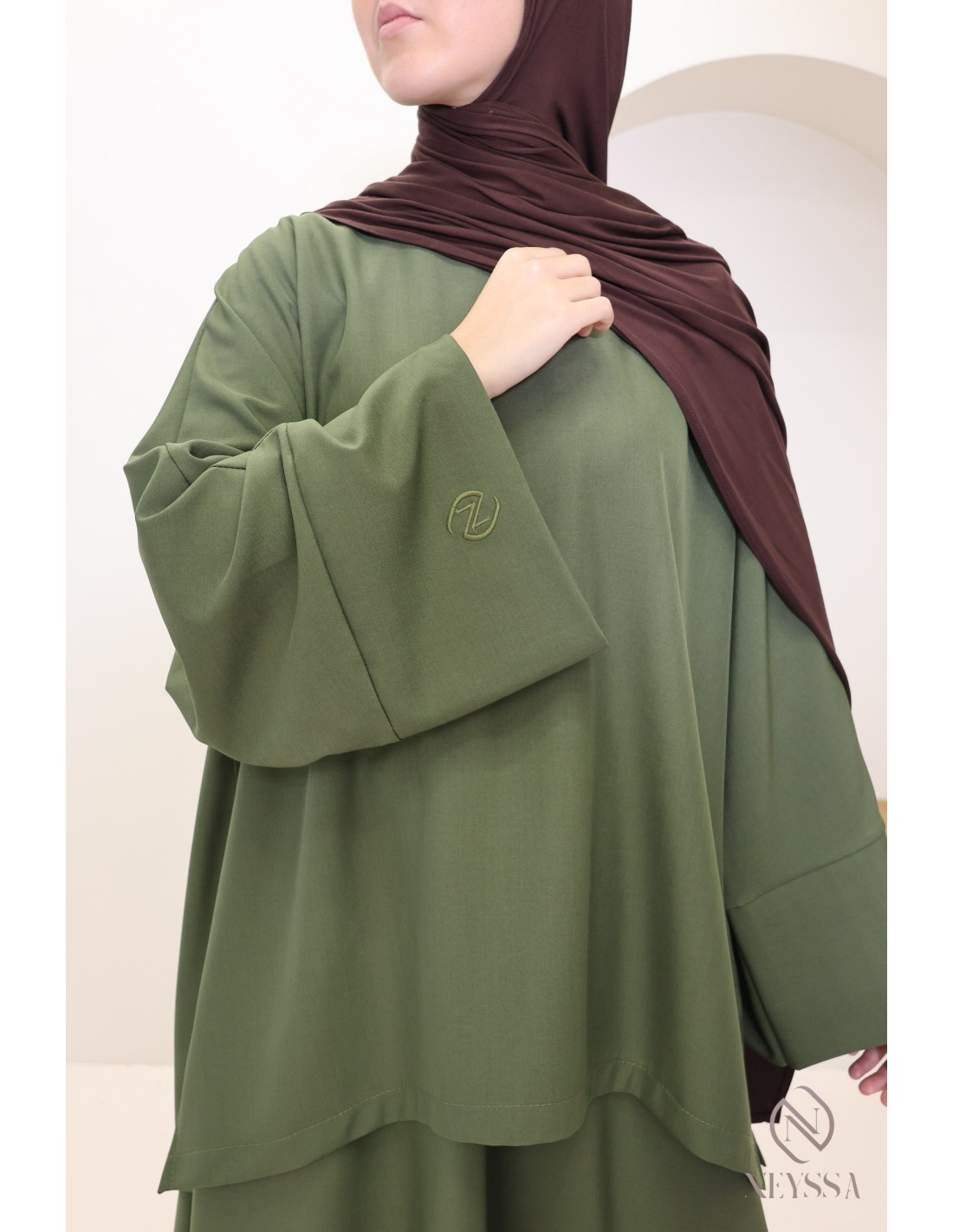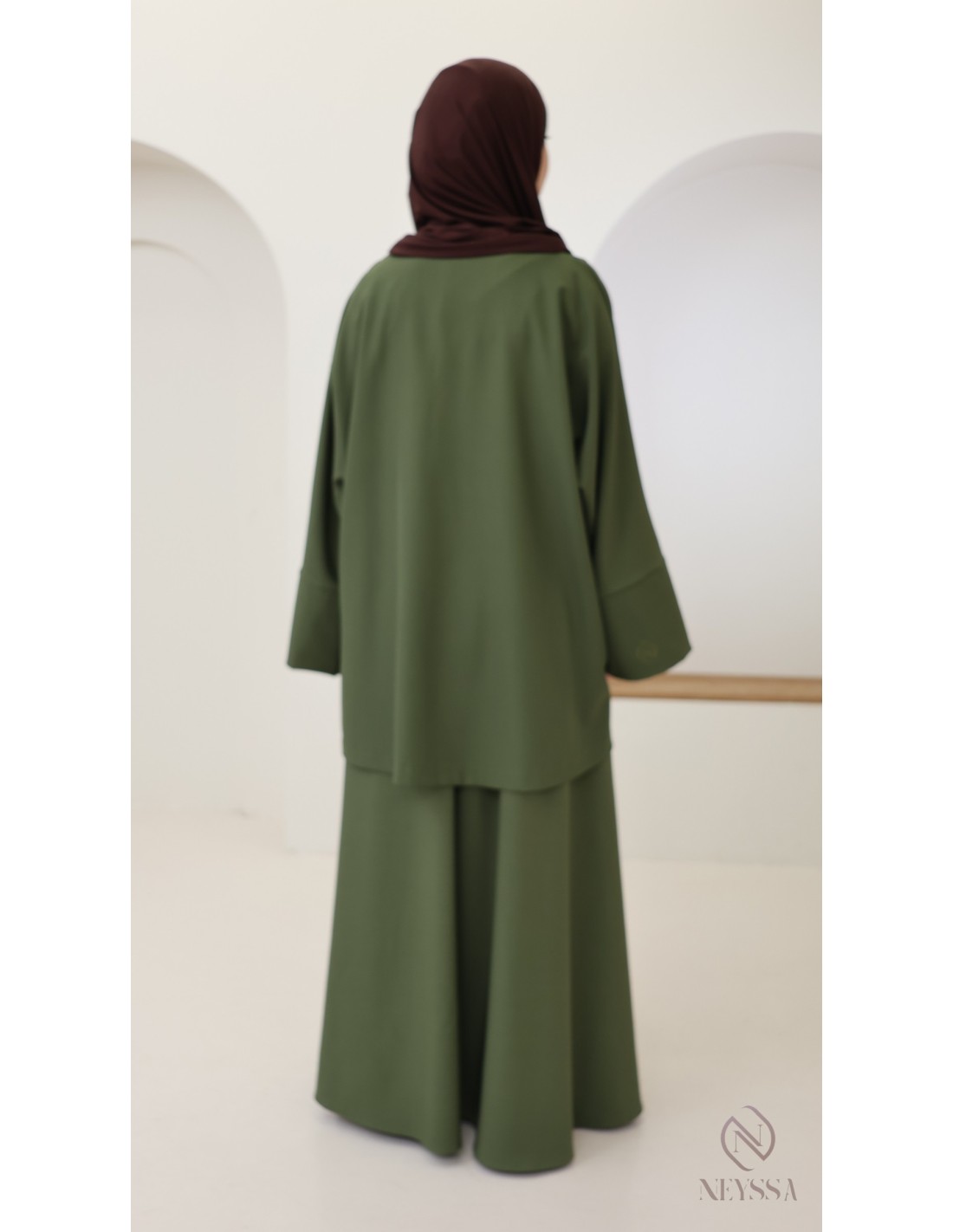 Voici des idées d'outfits avec l'ensemble 2 pièces kaki femme voilée :