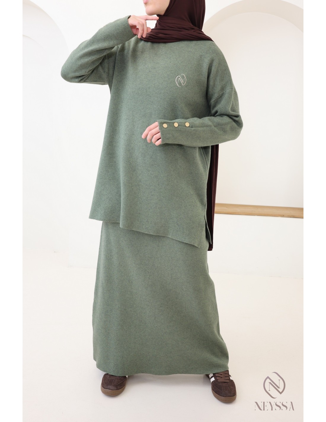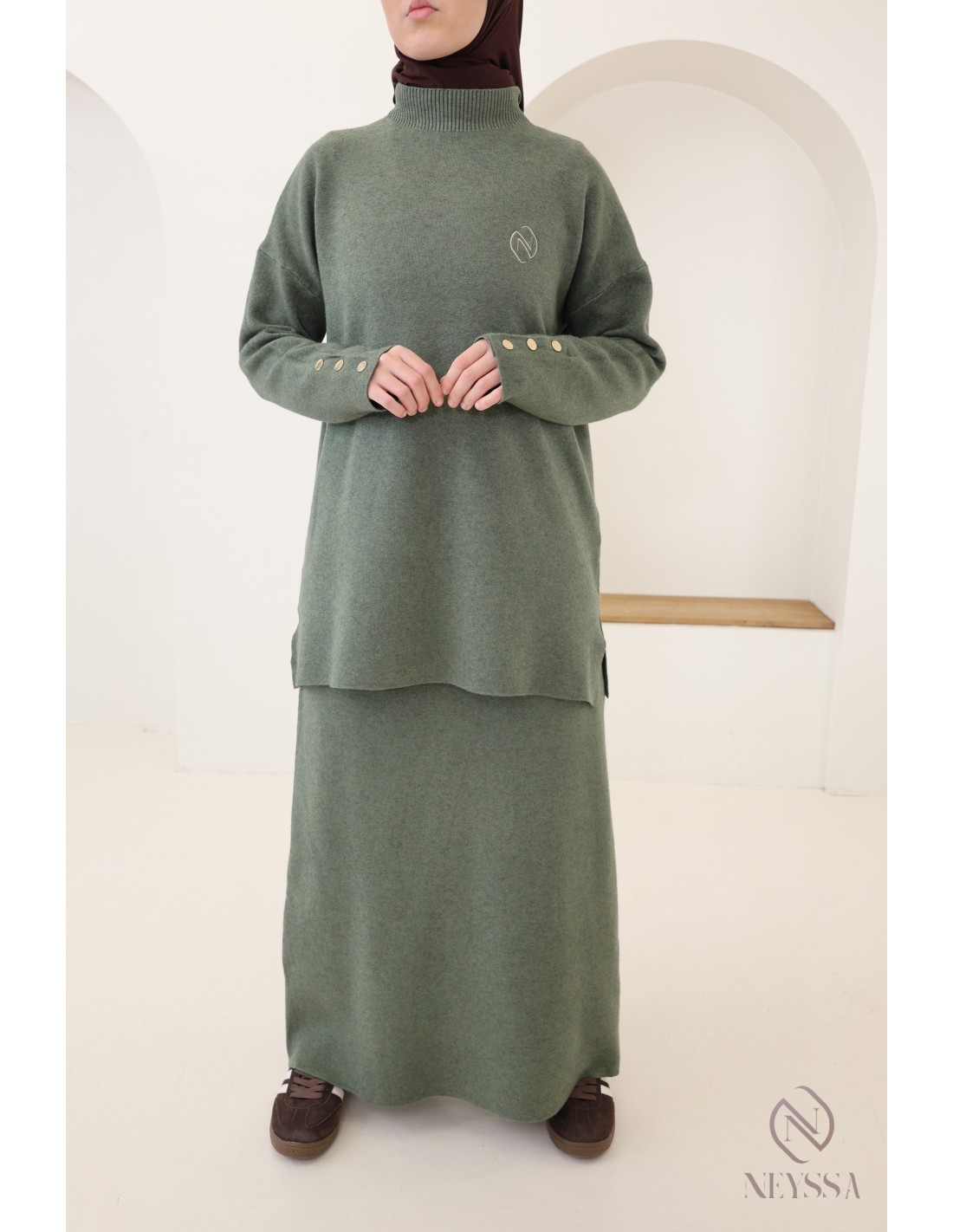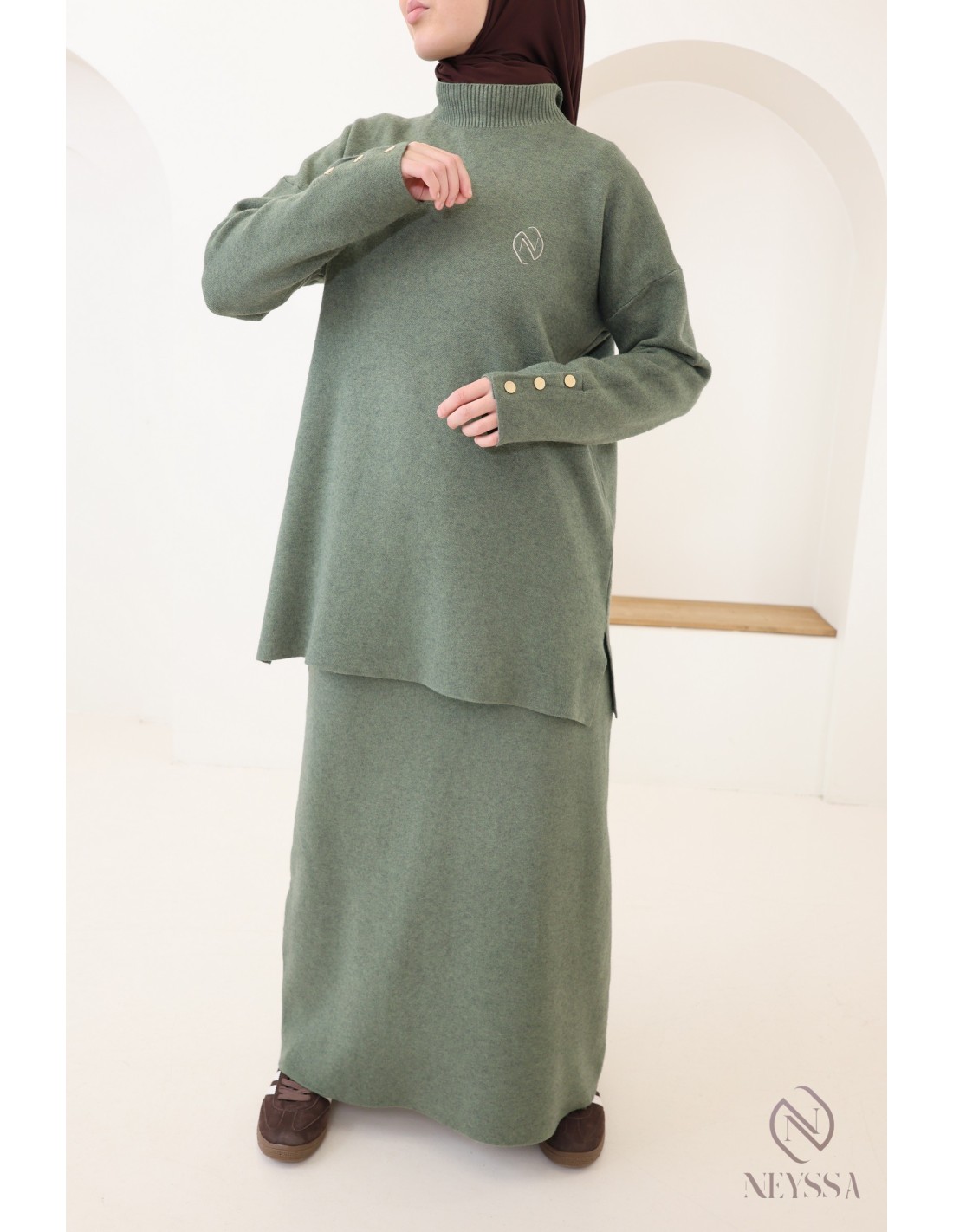 Pourquoi opter pour l'ensemble maille tissée modeste kaki ?