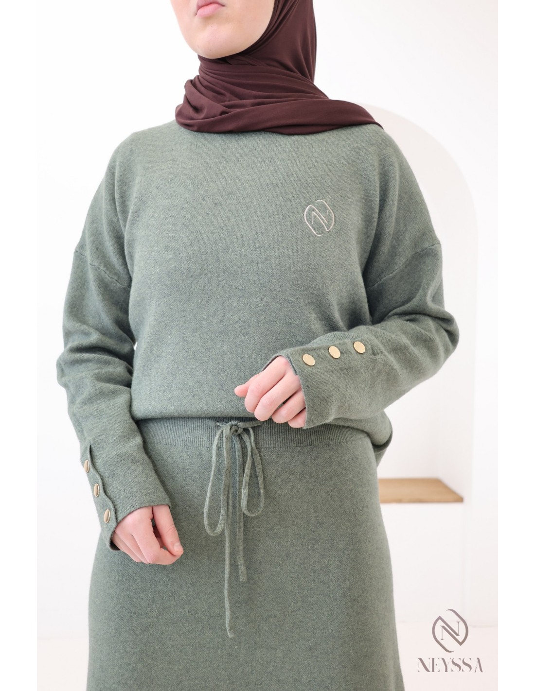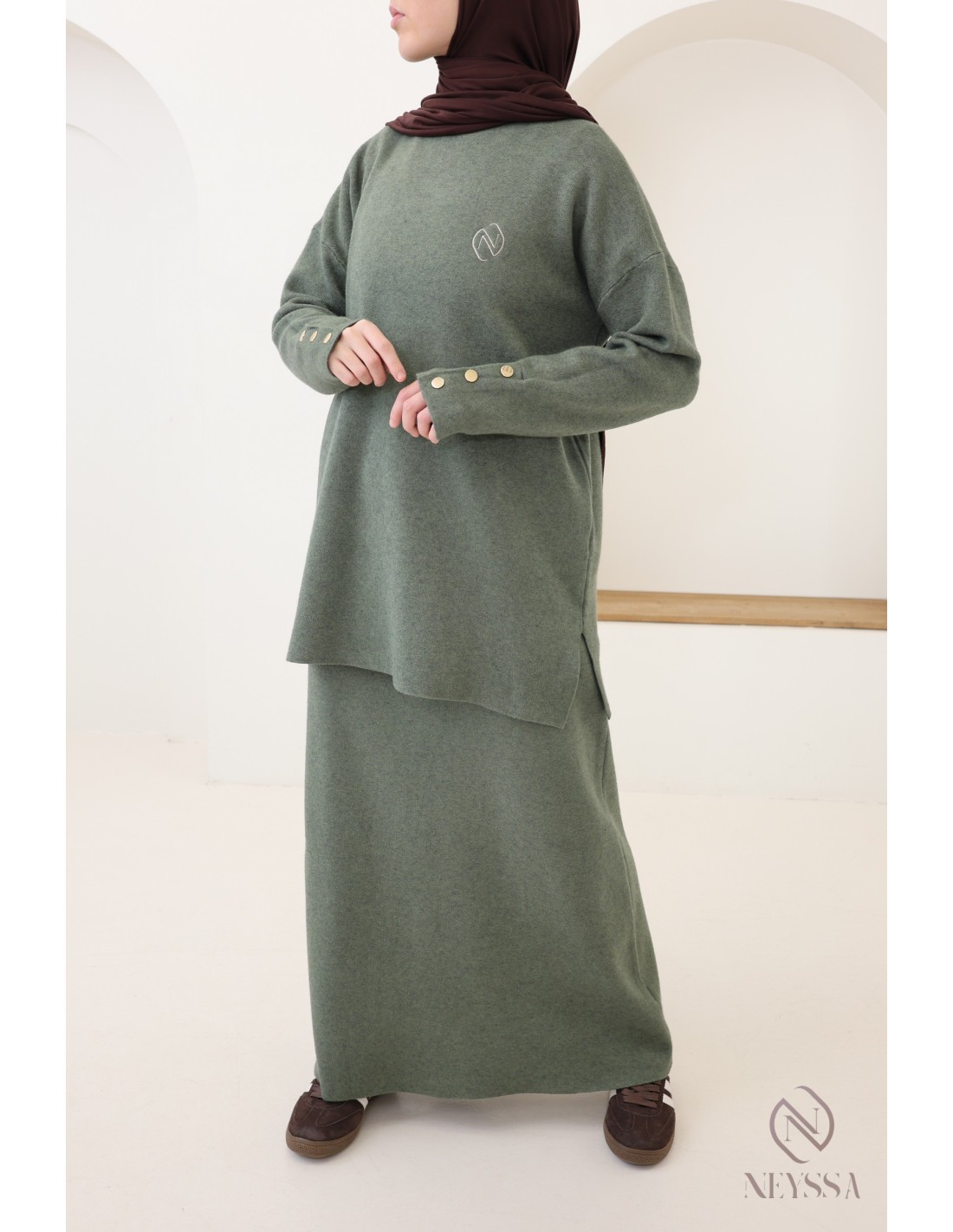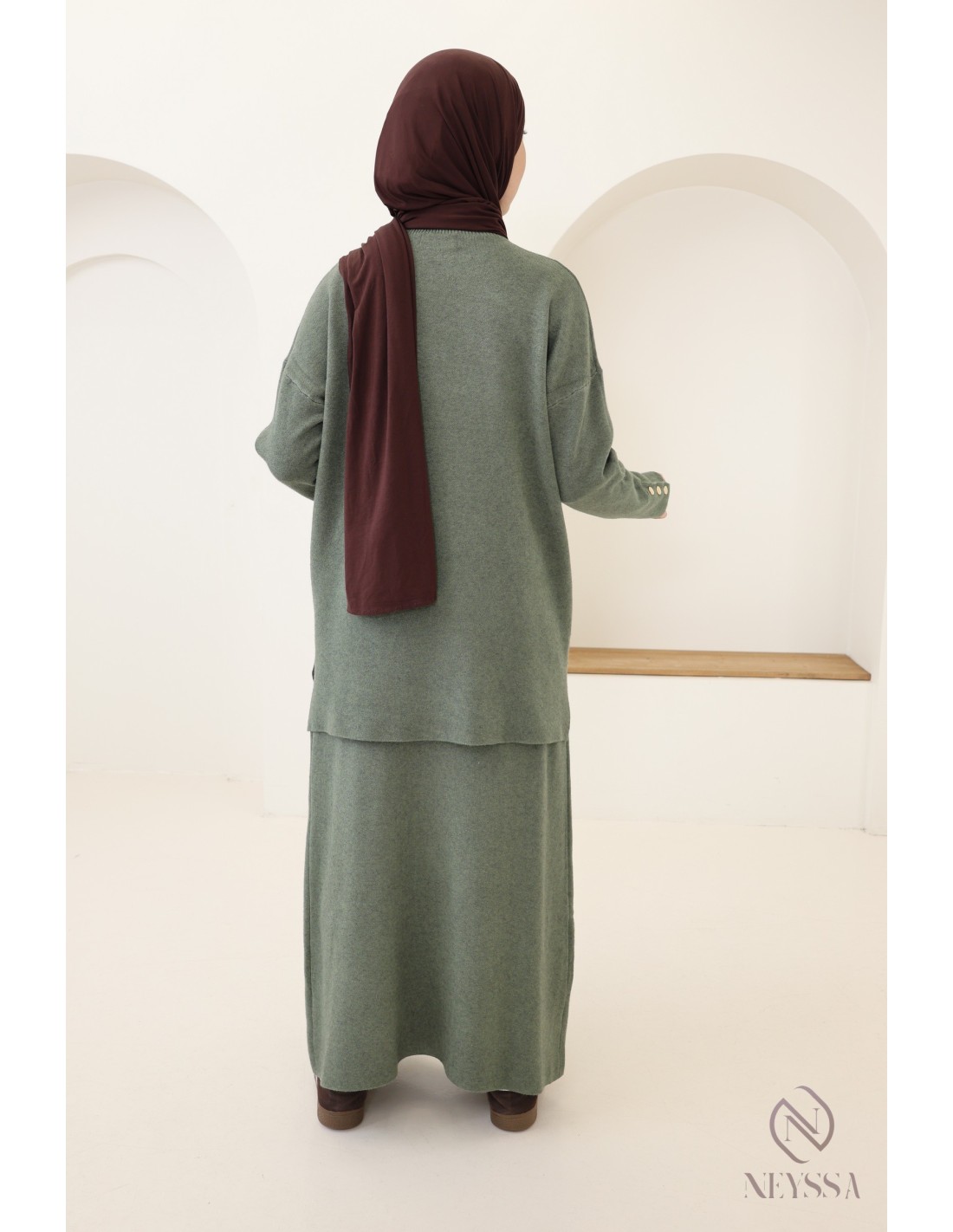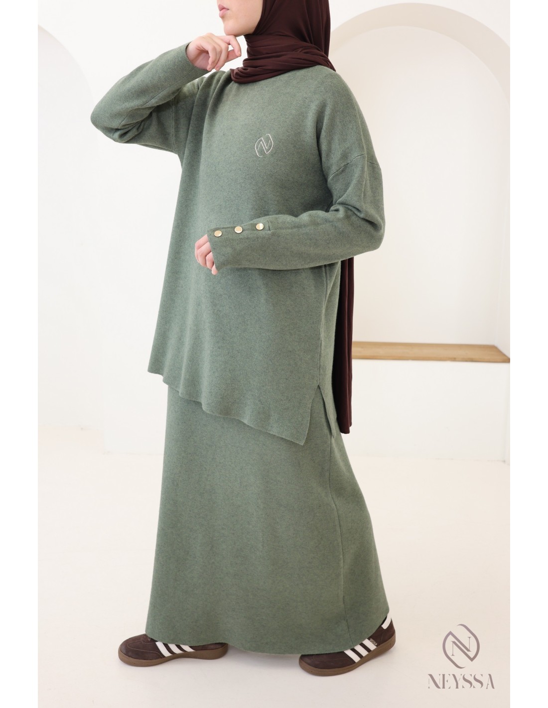 Pourquoi opter pour l'ensemble maille tissée modeste kaki ?