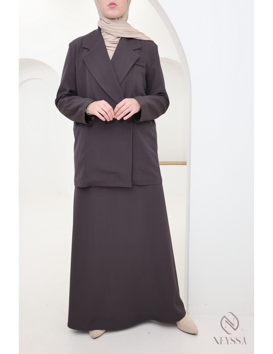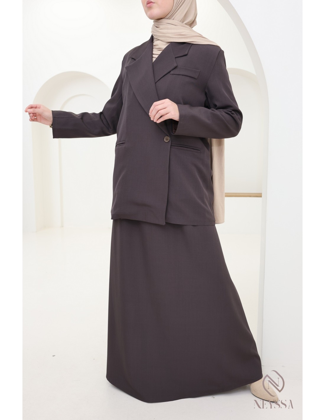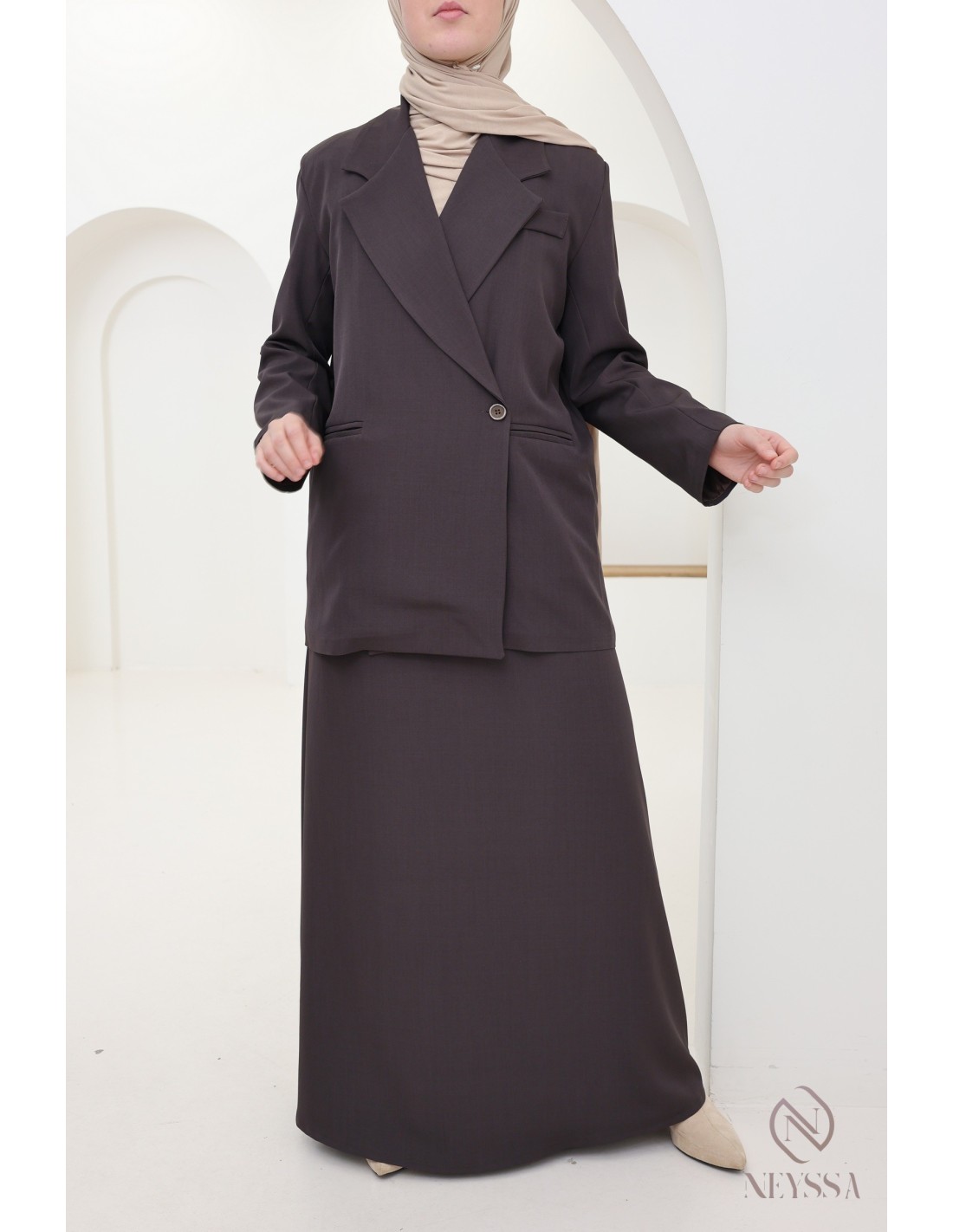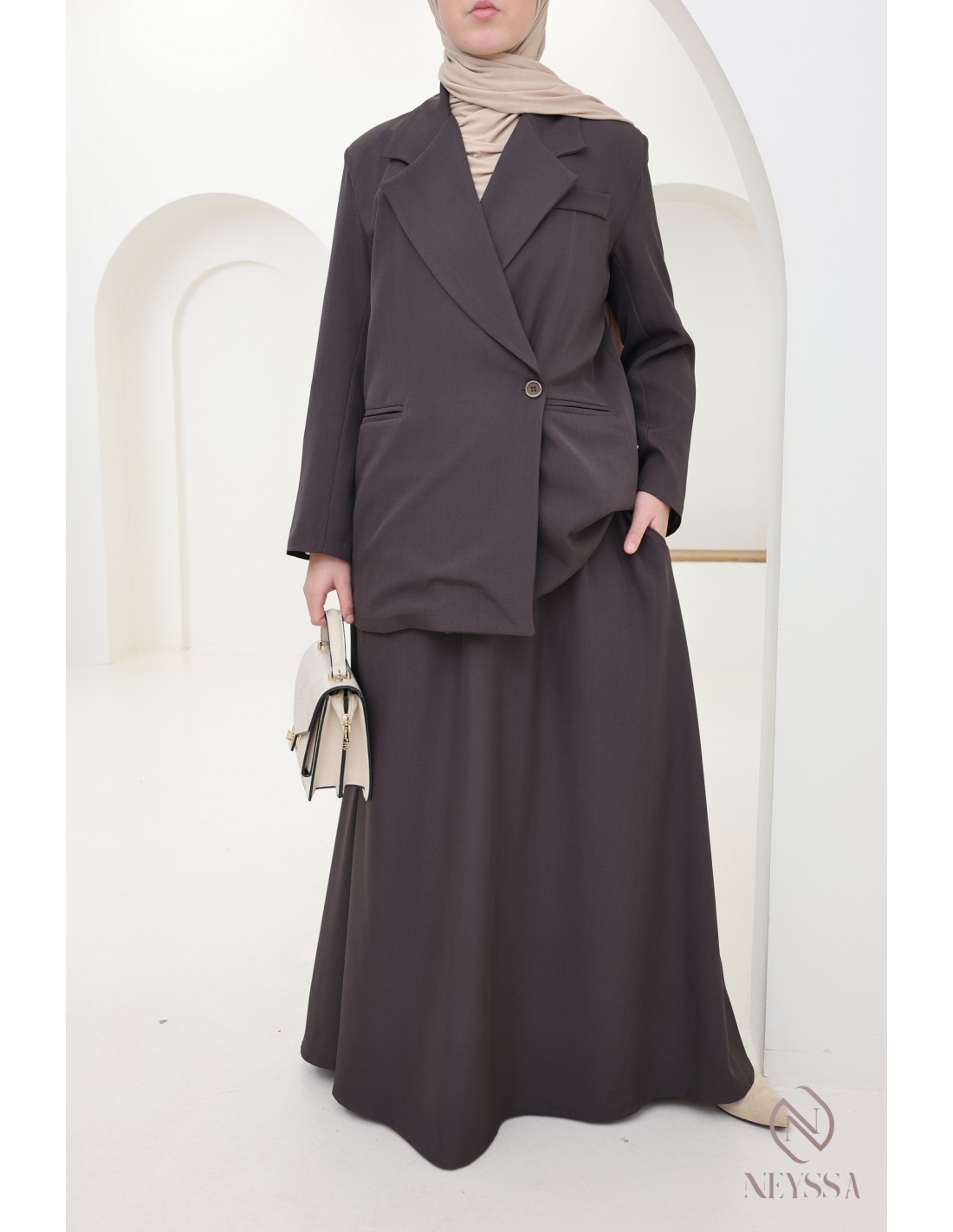 Ensemble blazer 2 pièces avec jupe longue Marron