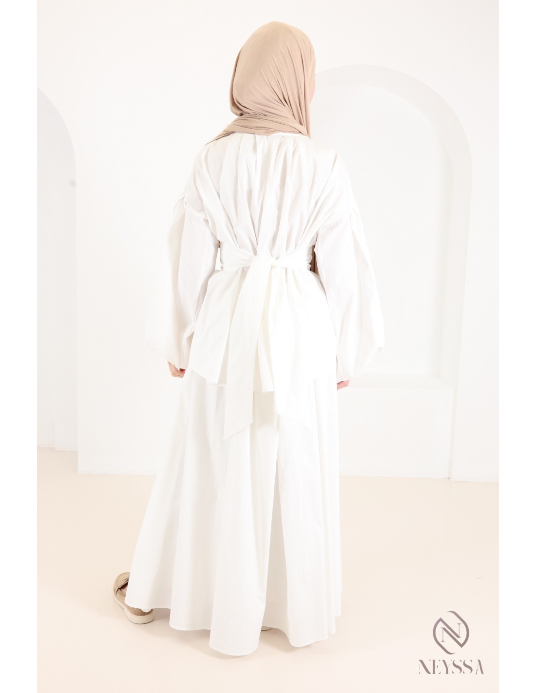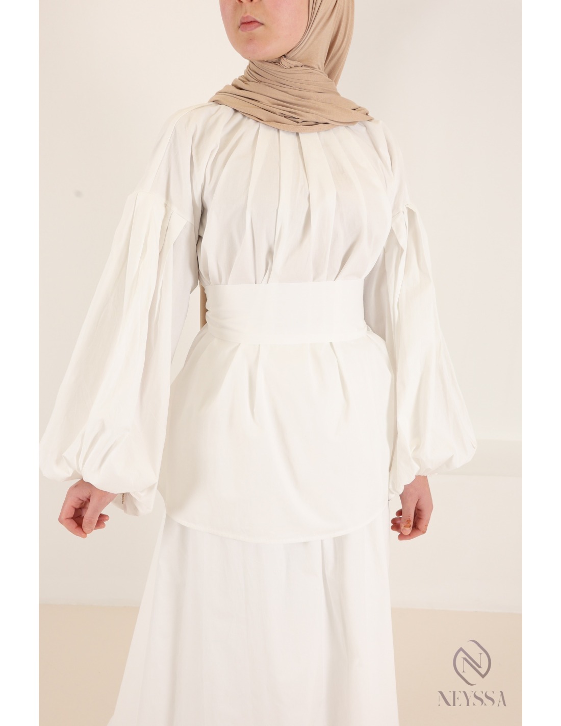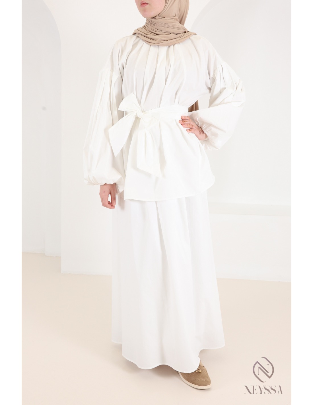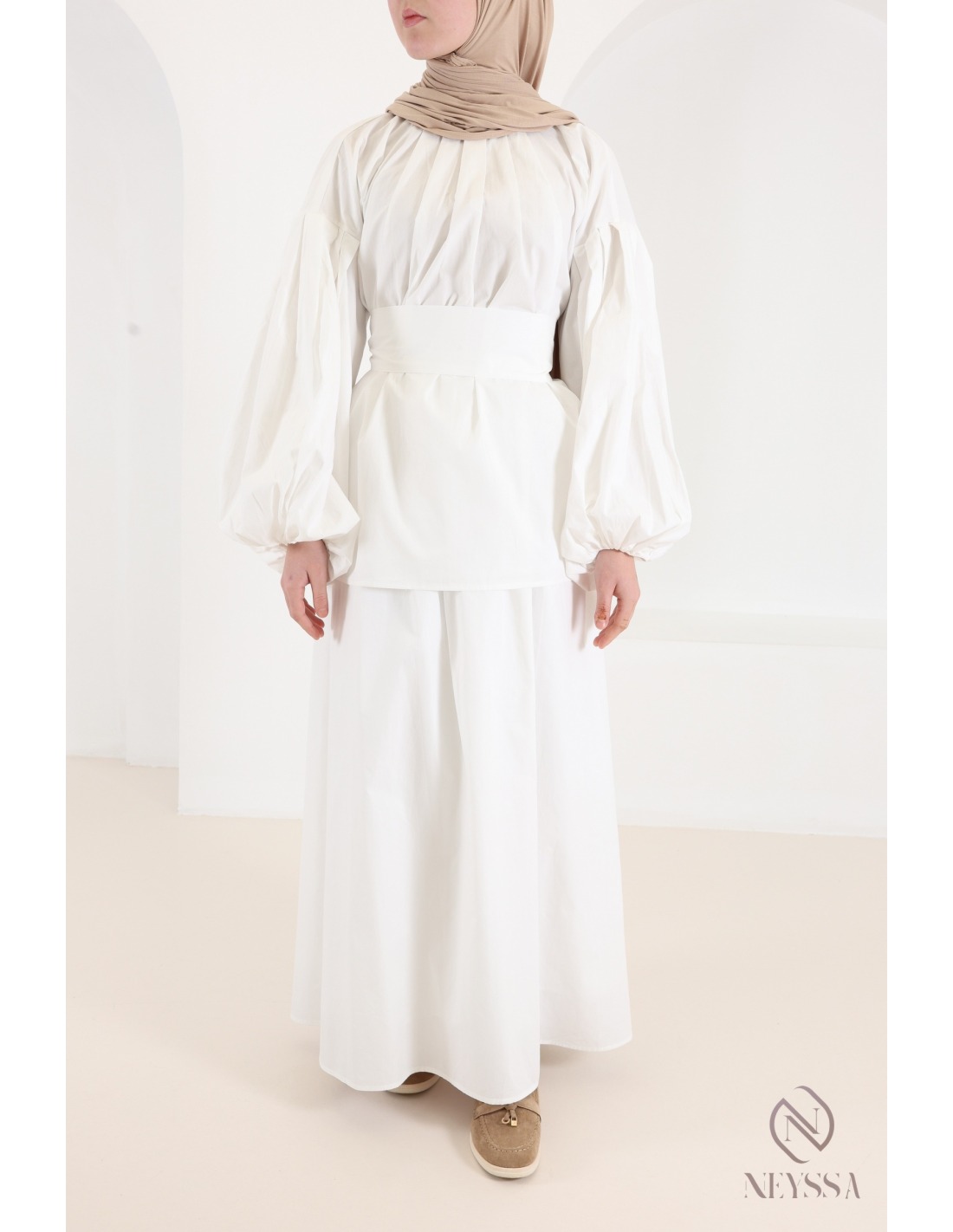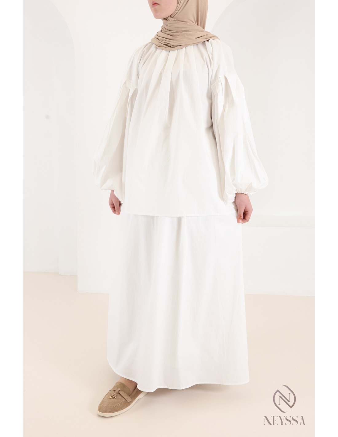 Ensemble blanc Blouse manches bouffantes + jupe longue 100% coton