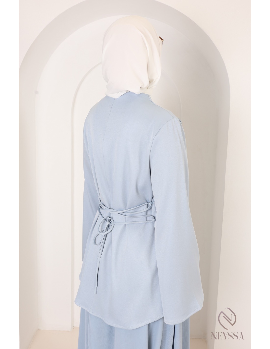 Cet ensemble baby Blue tendance été à la coupe moderne pudique va sans aucun doute vous plaire :