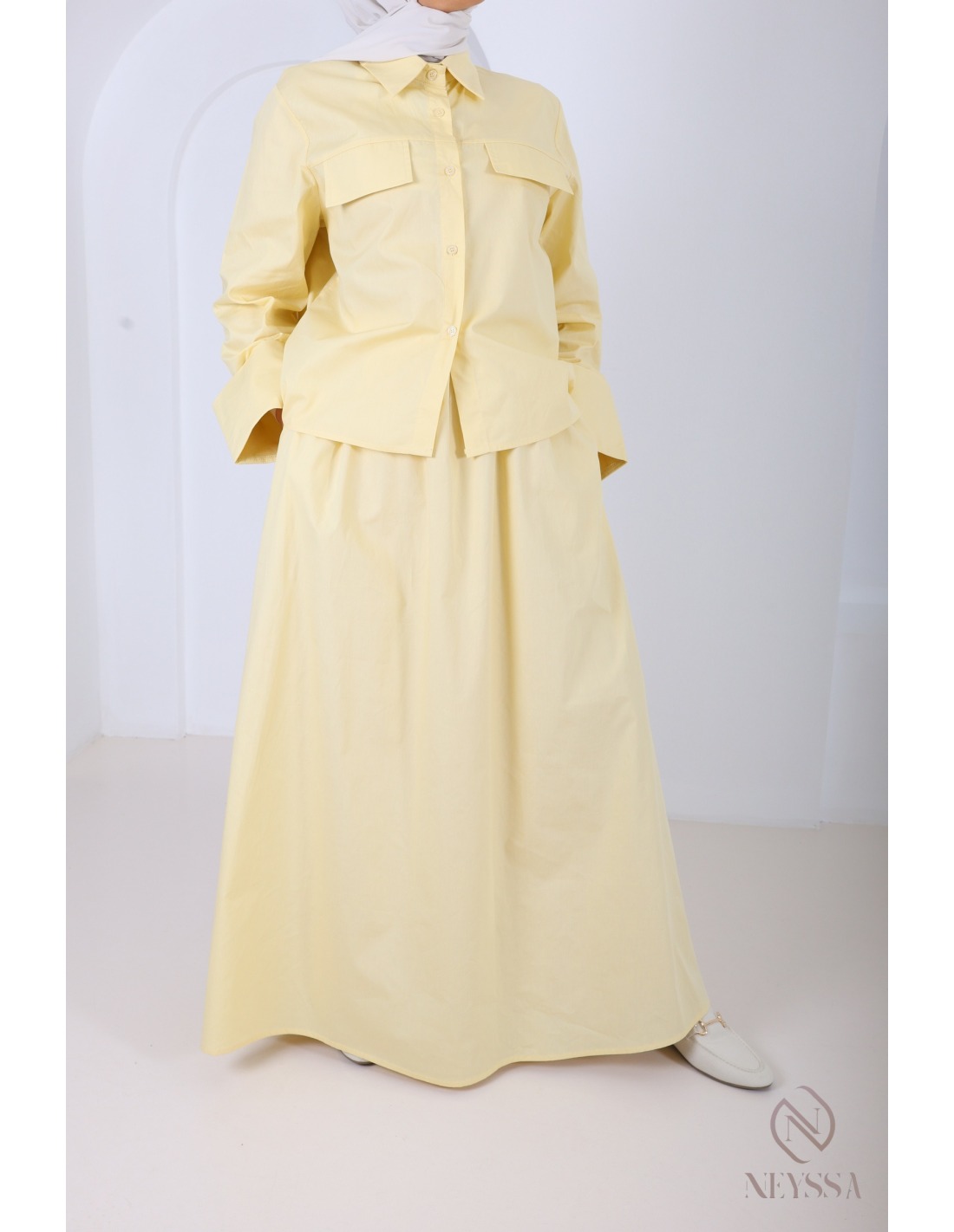 Ensemble en coton jaune foncé jupe longue + chemise en Coton