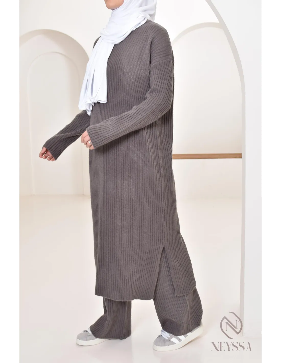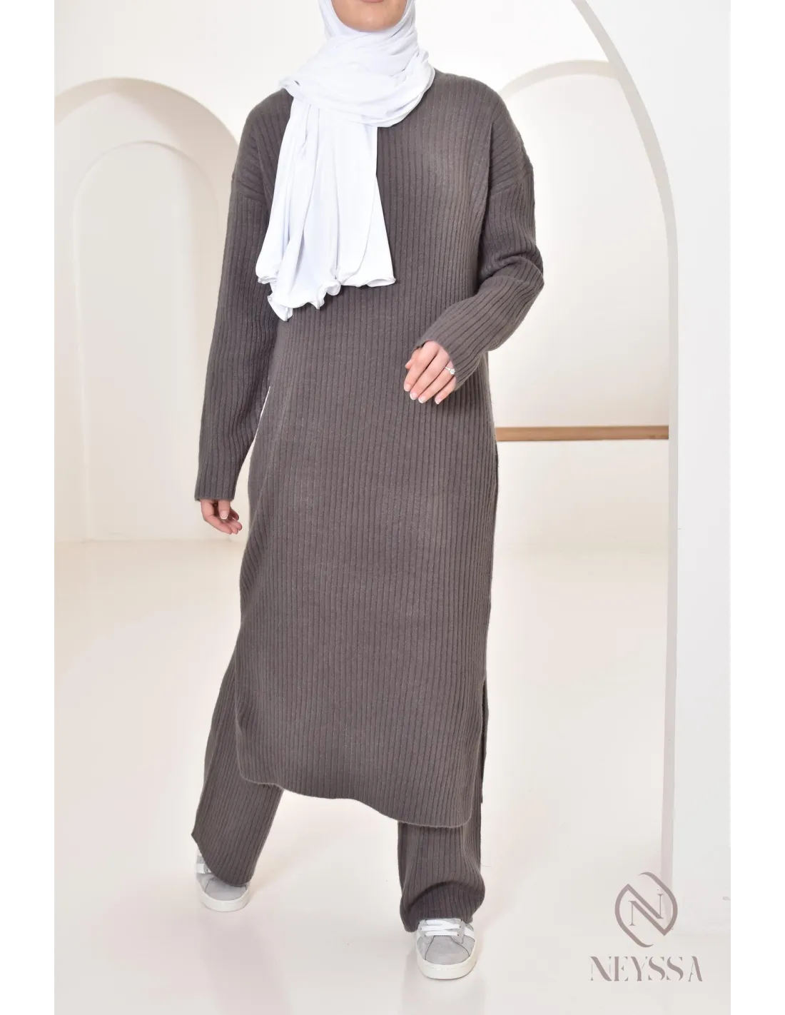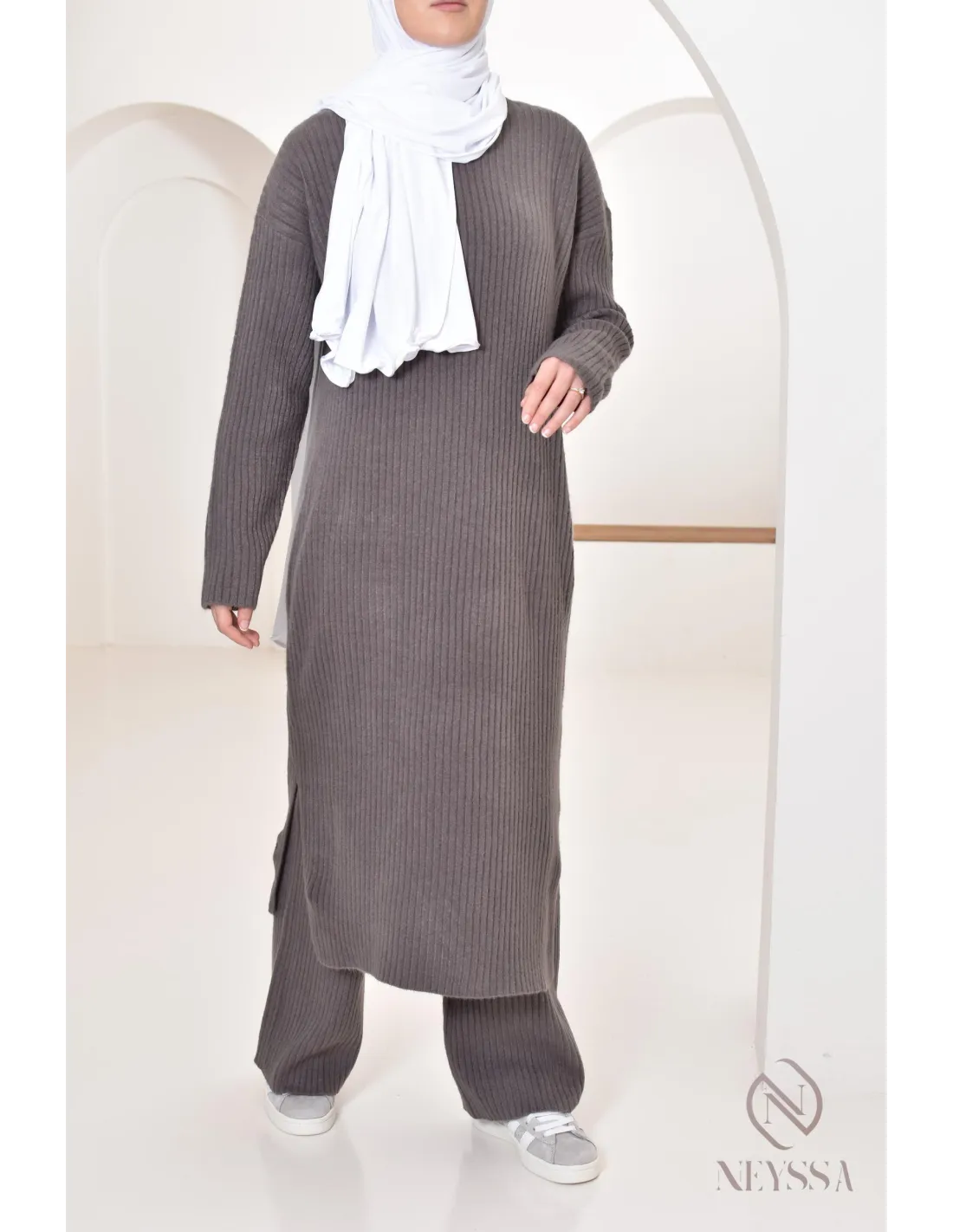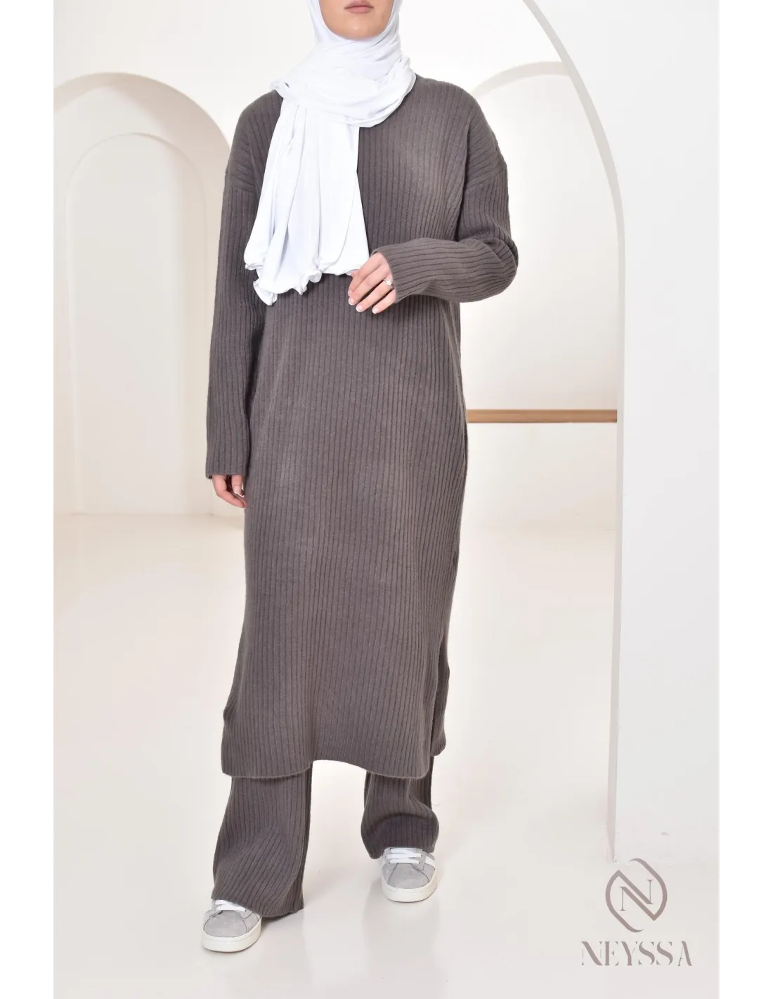 Voici cet ensemble 2 pièces hijabi en maille conçu spécialement pour répondre aux besoins des soeurs voilées. Il offre une élégance modeste sans compromettre le chic et le confort.
