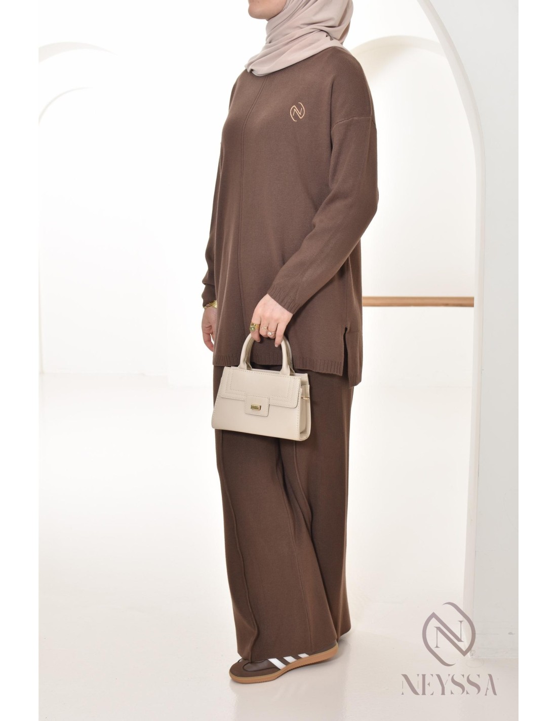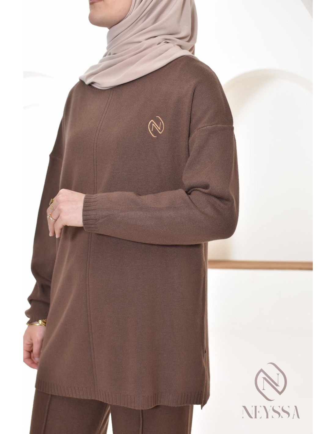 Voici ce combo pull avec pantalon ample Neyssa Confection qui a été conçu spécialement pour répondre aux besoins des hijabi. Il offre une élégance modeste sans compromettre le chic et le confort.