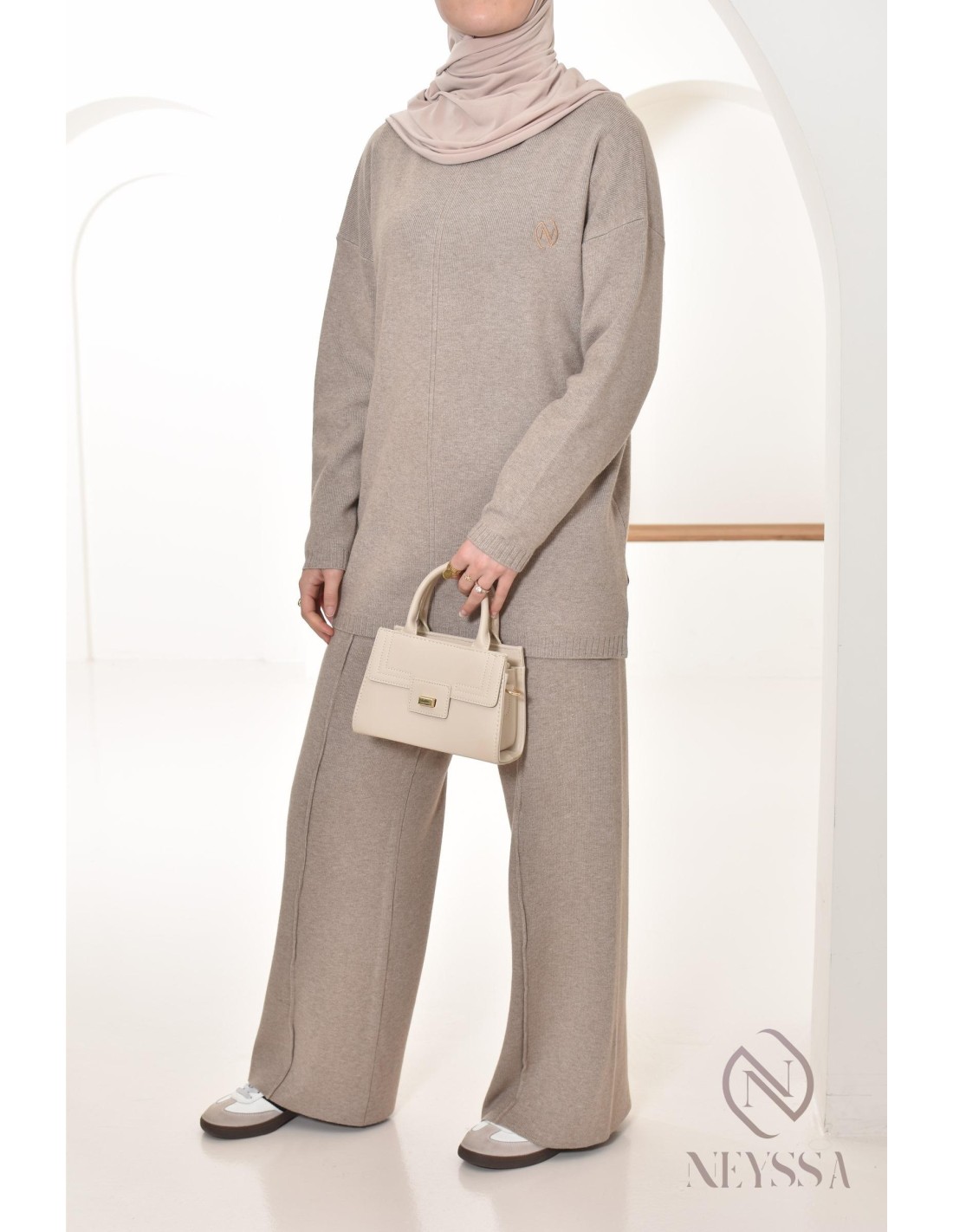 Ensemble femme maille tissée Essential Taupe