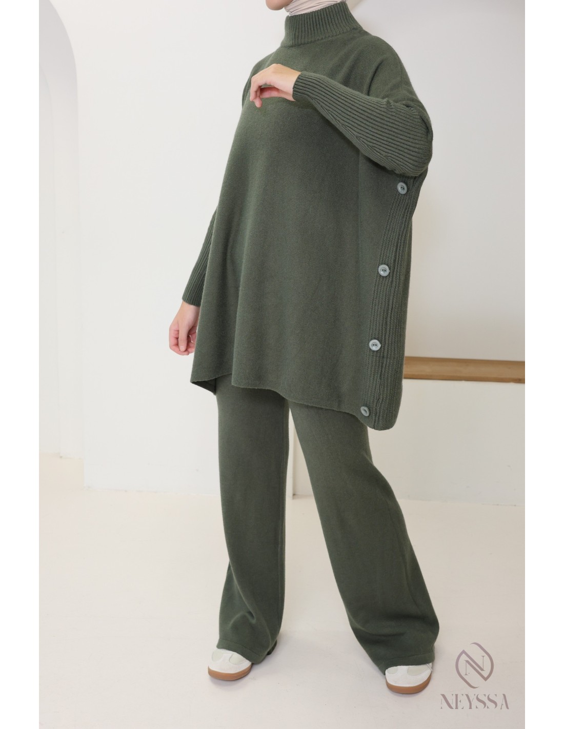 Voici cet ensemble pull + pantalon maille pour femme  qui a été conçu spécialement pour répondre aux besoins des hijabi. Il offre une élégance modeste sans compromettre le chic et le confort.