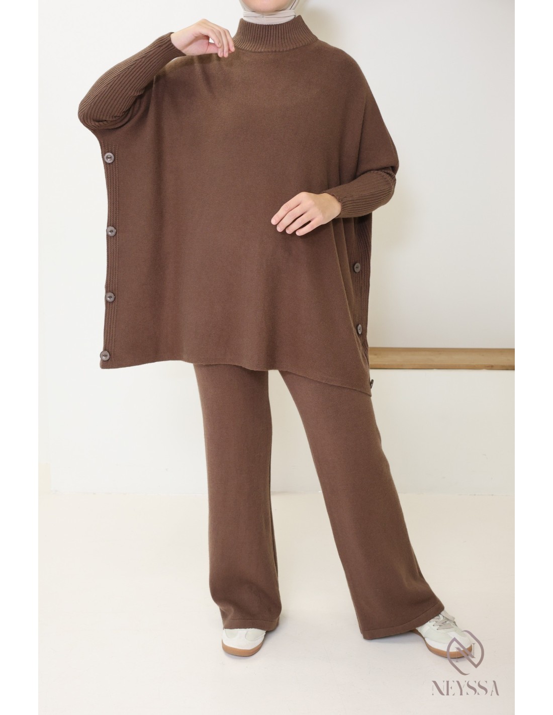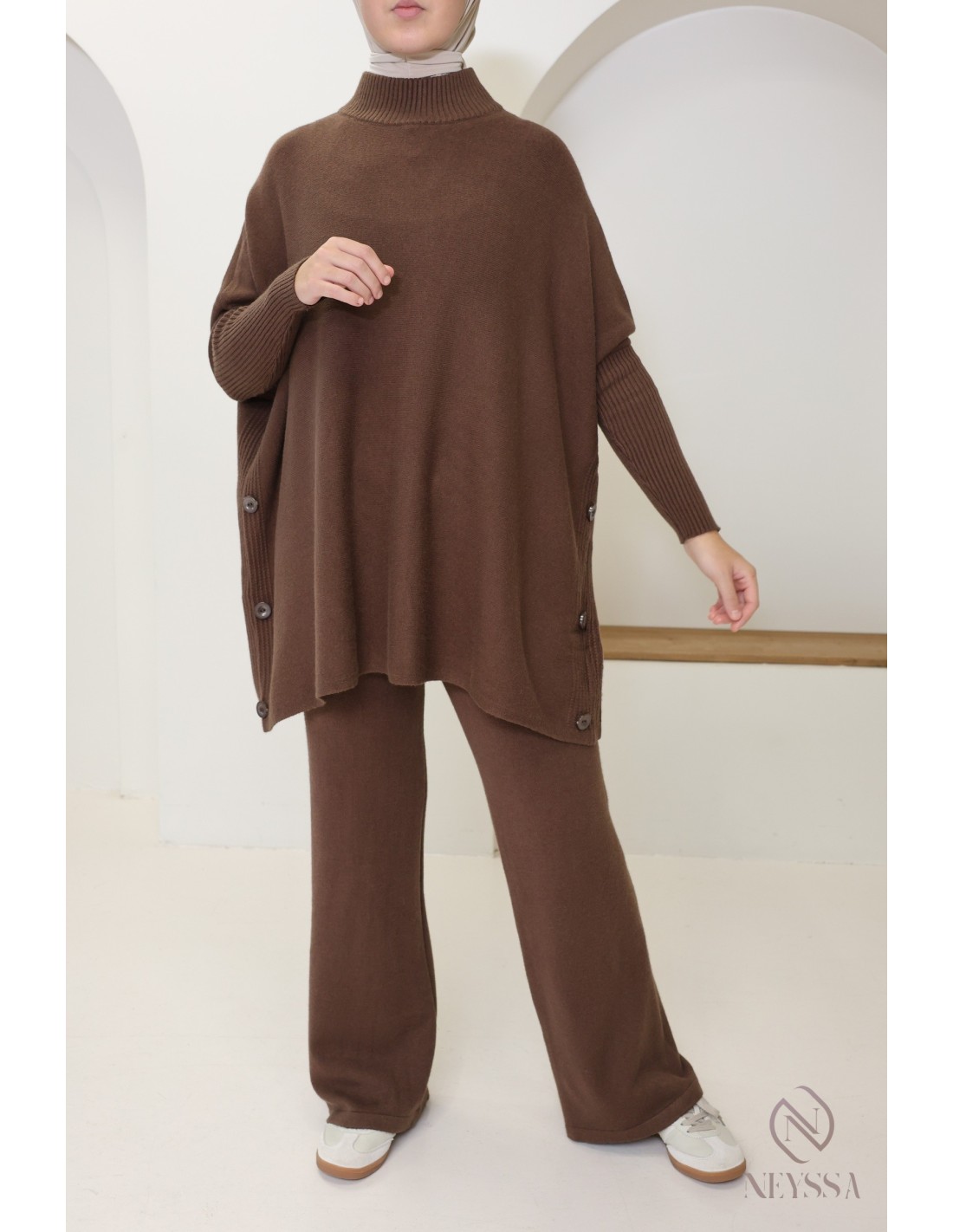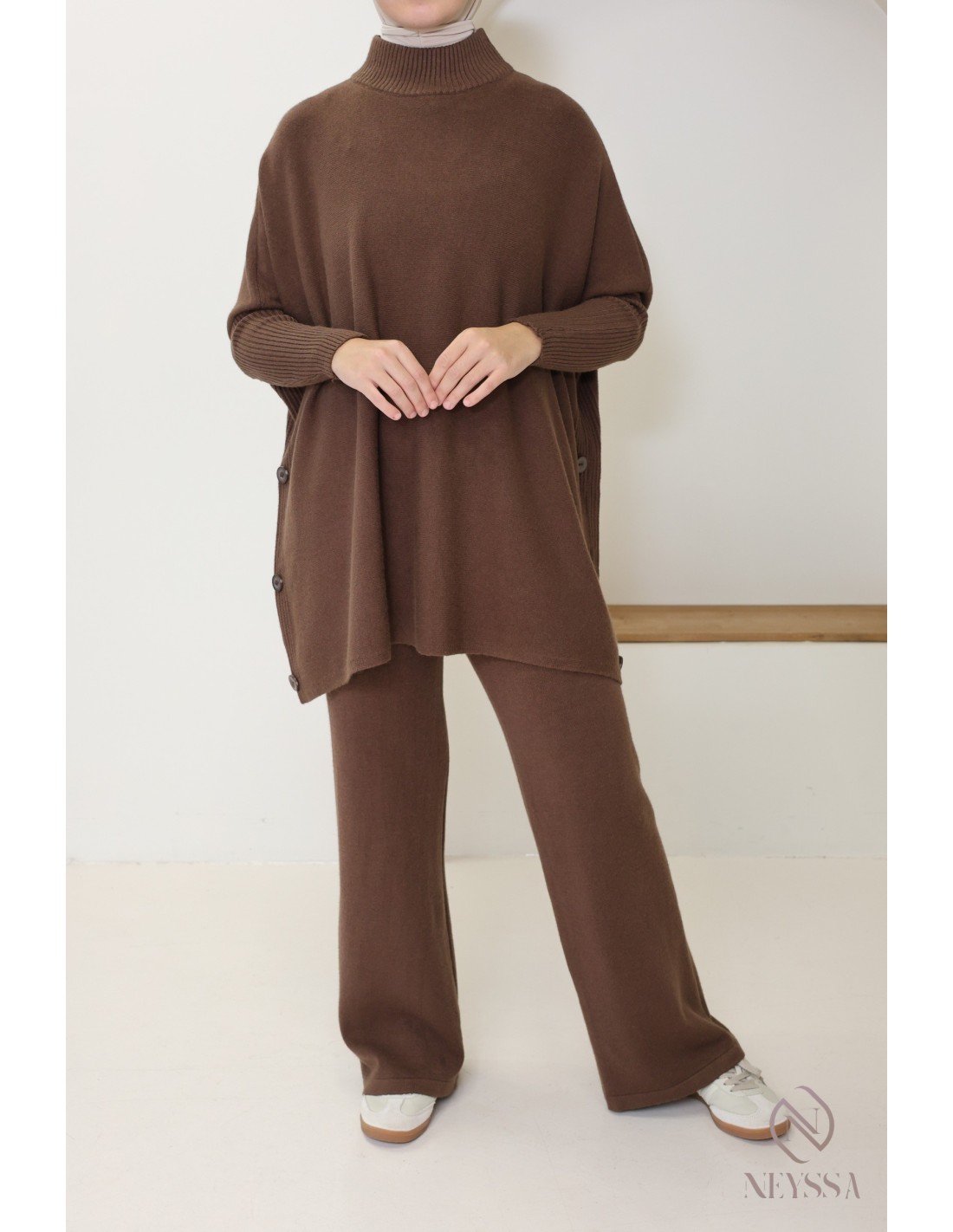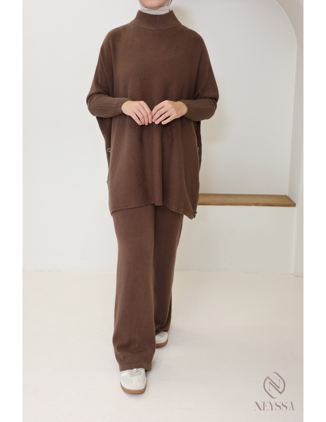 Voici cet ensemble pull + pantalon maille pour femme  qui a été conçu spécialement pour répondre aux besoins des hijabi. Il offre une élégance modeste sans compromettre le chic et le confort.
