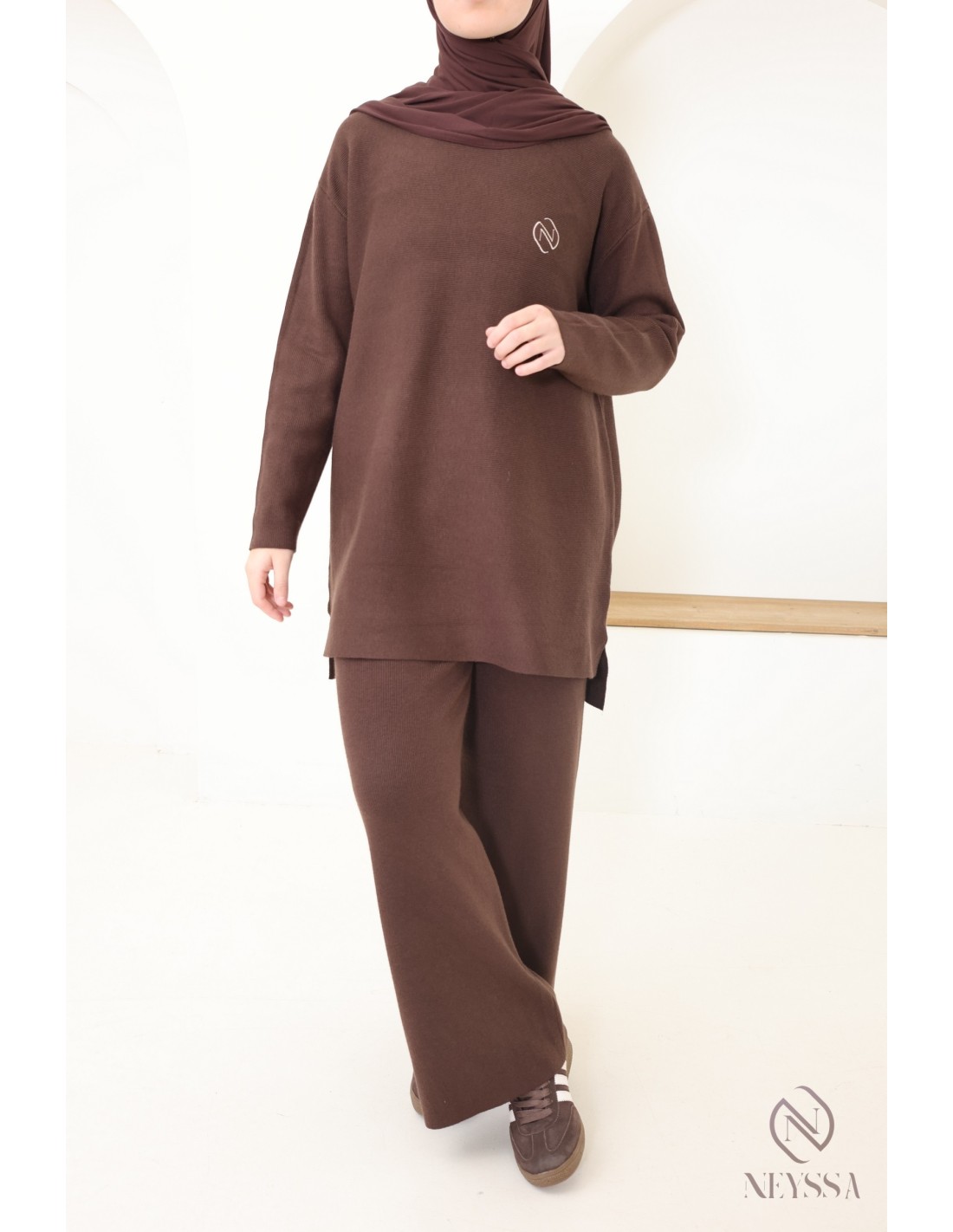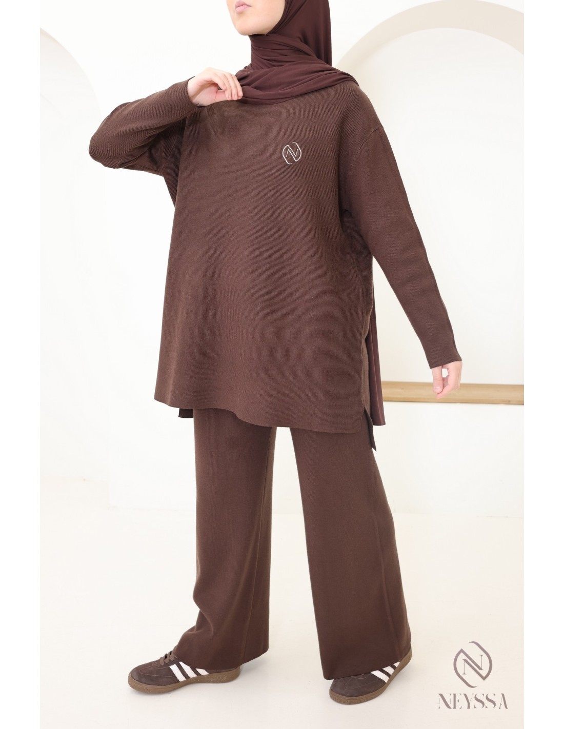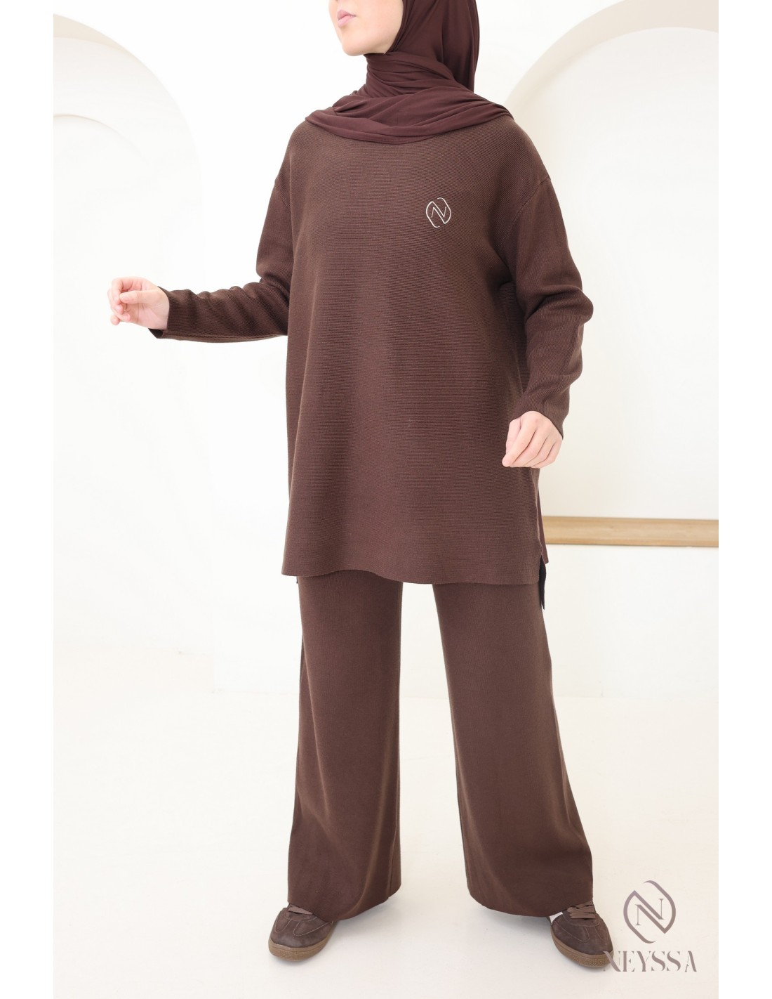 Ensemble femme marron maille tissée Neyssa Création