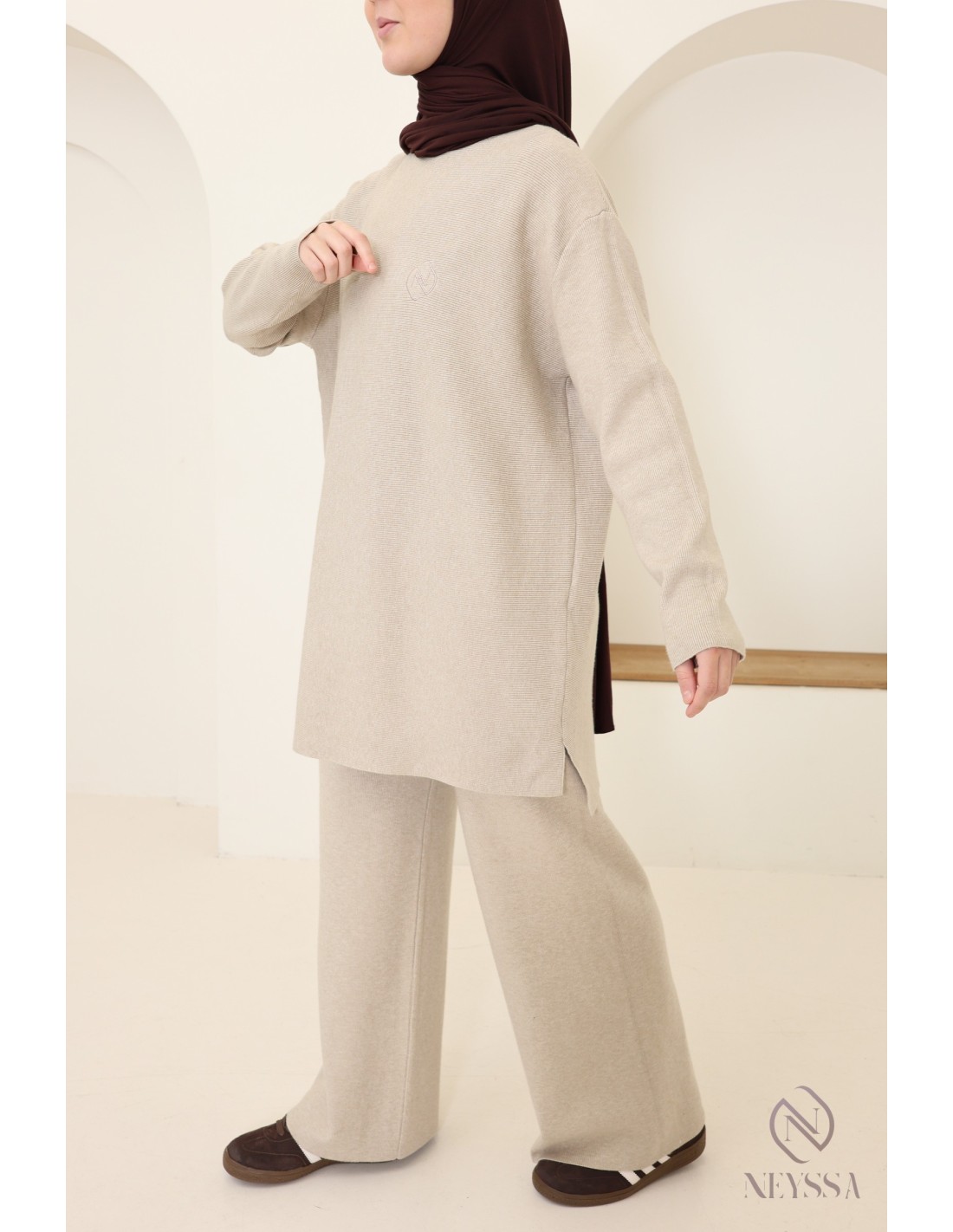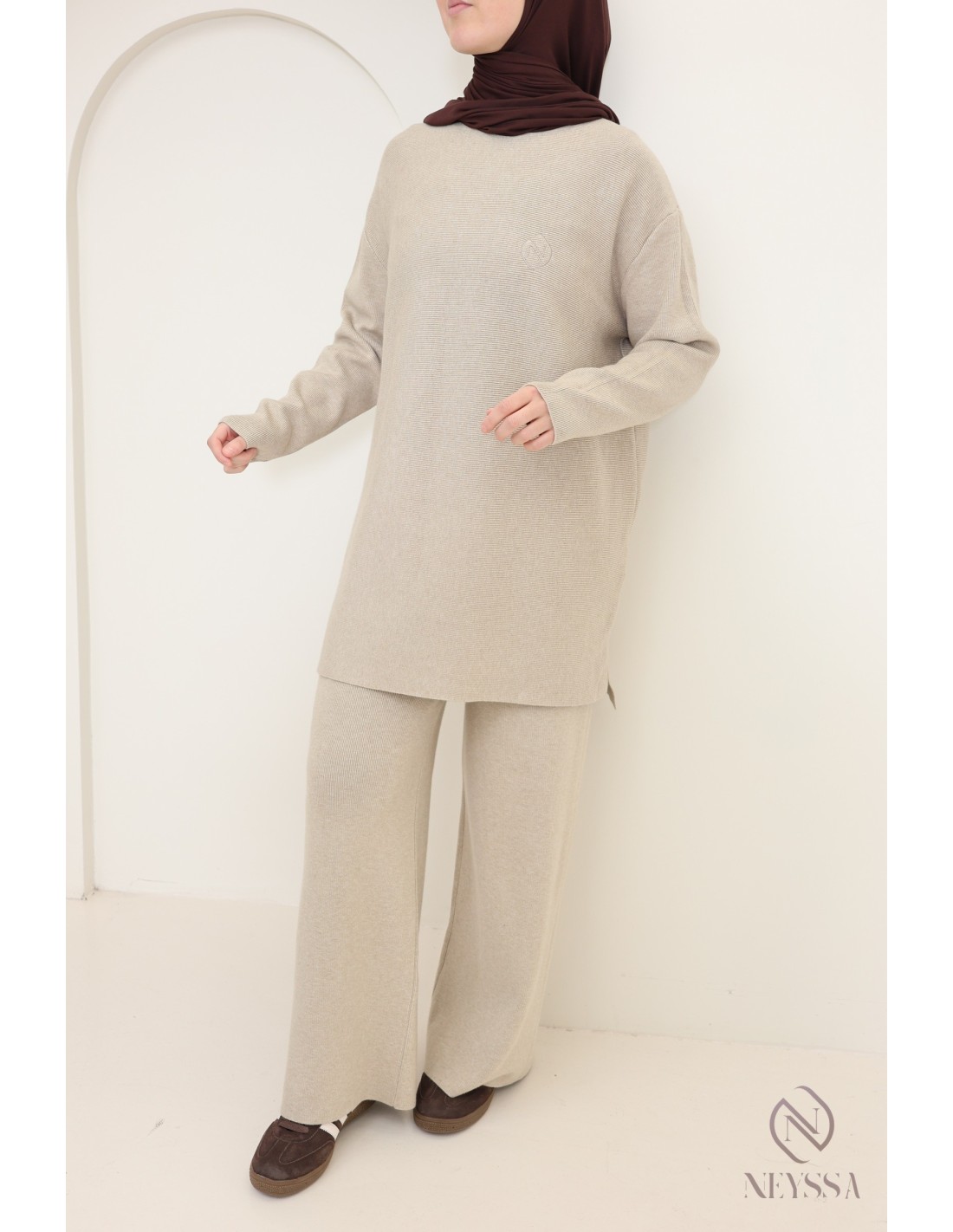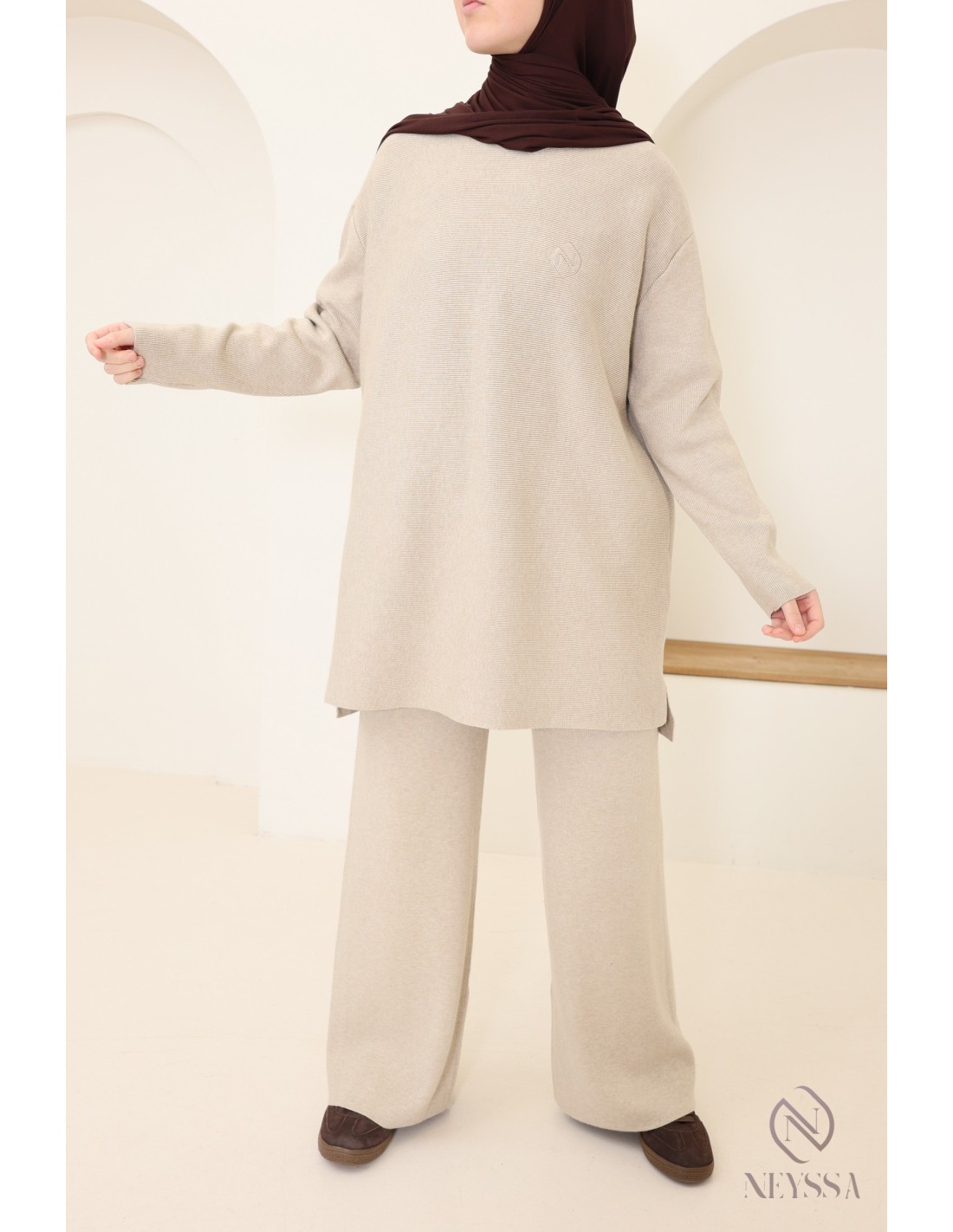 Voici cet ensemble Neyssa en maille qui a été conçu spécialement pour répondre aux besoins des hijabi. Il offre une élégance modeste sans compromettre le chic et le confort.