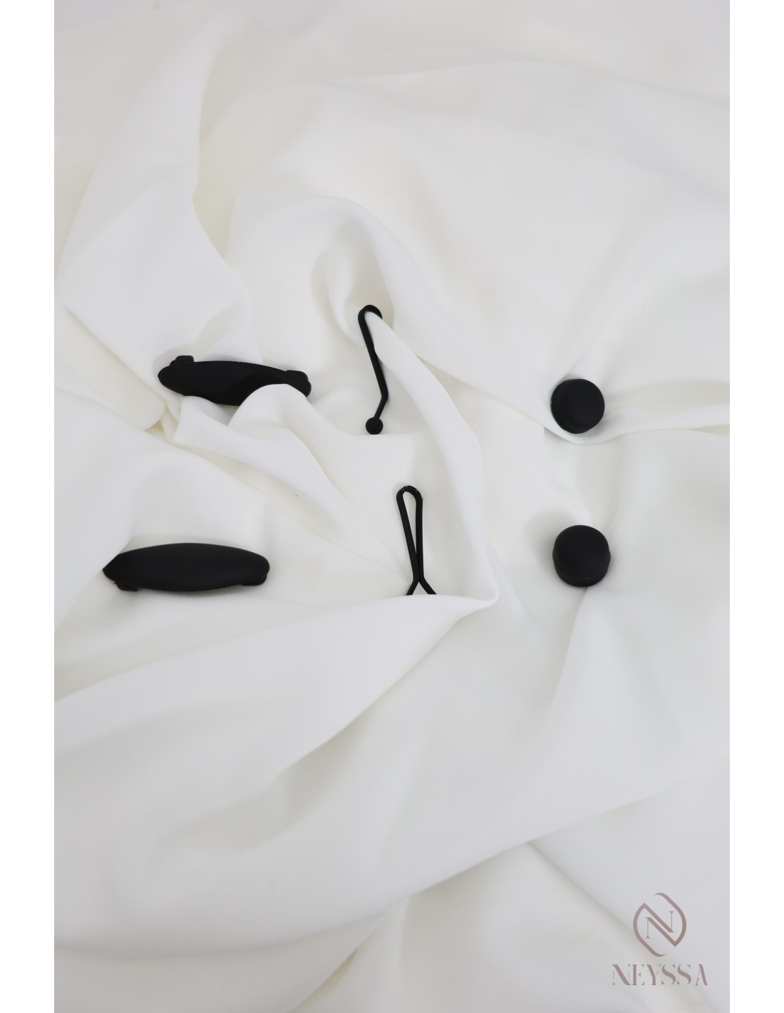 Placez l’épingle délicatement aux zones de fixation du hijab pour un maintien naturel et élégant, sans marquer le tissu.