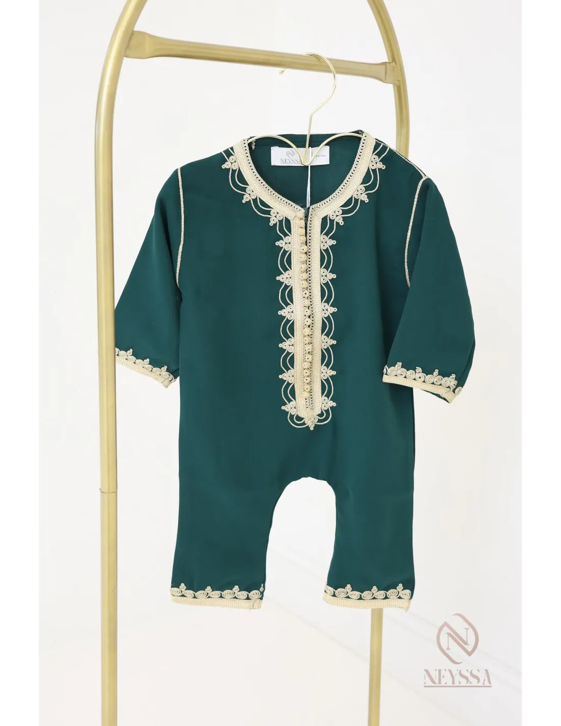 Grenouillère bébé caftan Vert Bouteille / doré CYANA