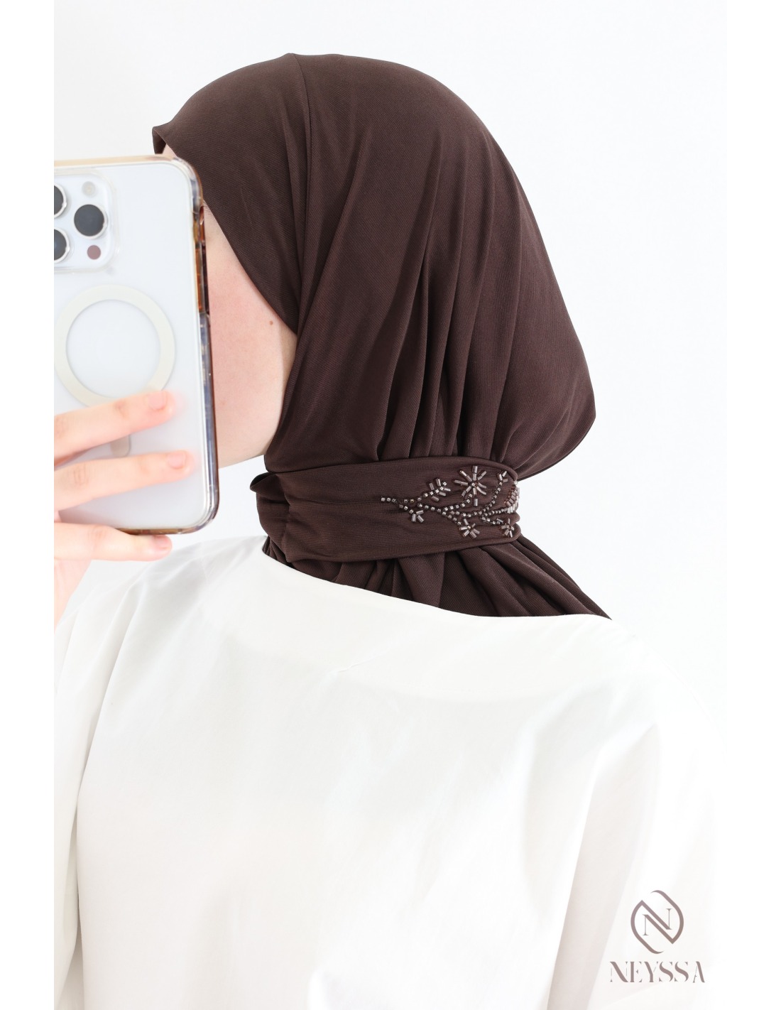 Hijab cagoule à enfiler motif en perles tendance