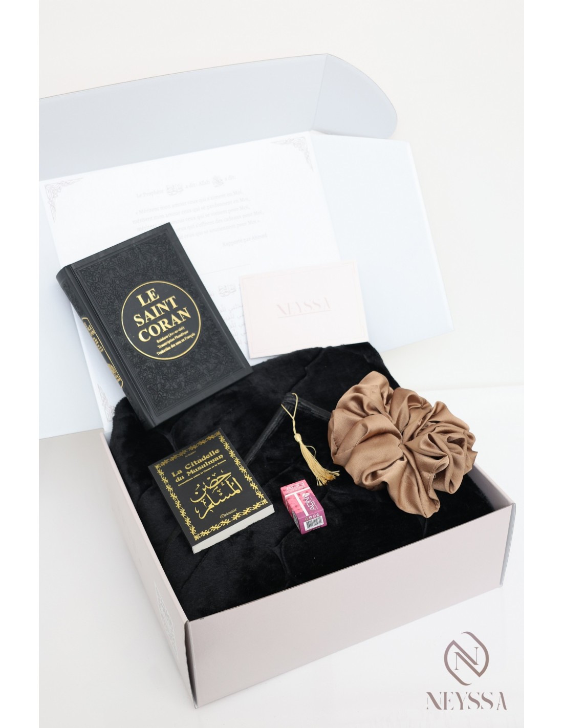 Box Coffret tapis de prière Noir pour femme musulmane : Les must have