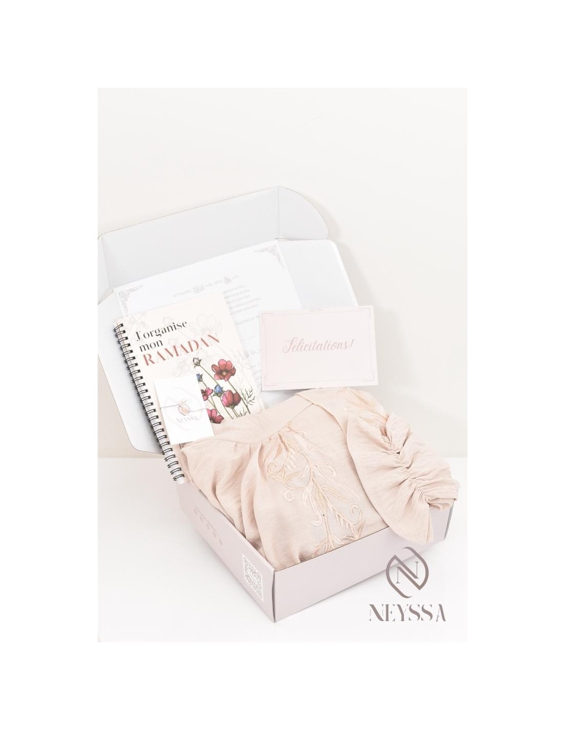 Un coffret griffé Neyssa avec de jolies inscriptions : Le prophète Muhamad aleyi salat wa salam a dit : Allah a dit : " Méritent mon amour ceux qui s'aiment en Moi, méritent mon amour ceux qui se pardonnent en Moi, méritent mon amour ceux qui se visitent pour Moi, méritent mon amour ceux qui s'offrent des cadeaux pour Moi, méritent mon amour ceux qui se soutiennent pour Moi. " Rapporté par Ahmed