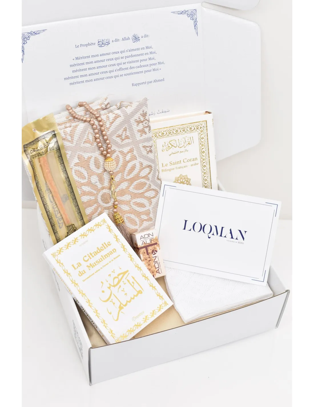 Un coffret griffé Loqman avec de jolies inscriptions : Le prophète Muhamad aleyi salat wa salam a dit : Allah a dit : " Méritent mon amour ceux qui s'aiment en Moi, méritent mon amour ceux qui se pardonnent en Moi, méritent mon amour ceux qui se visitent pour Moi, méritent mon amour ceux qui s'offrent des cadeaux pour Moi, méritent mon amour ceux qui se soutiennent pour Moi. " Rapporté par Ahmed