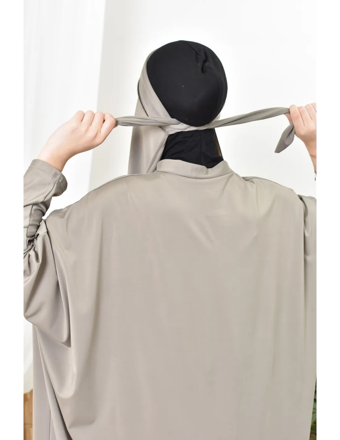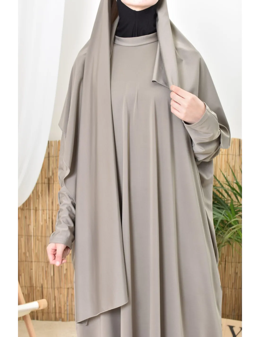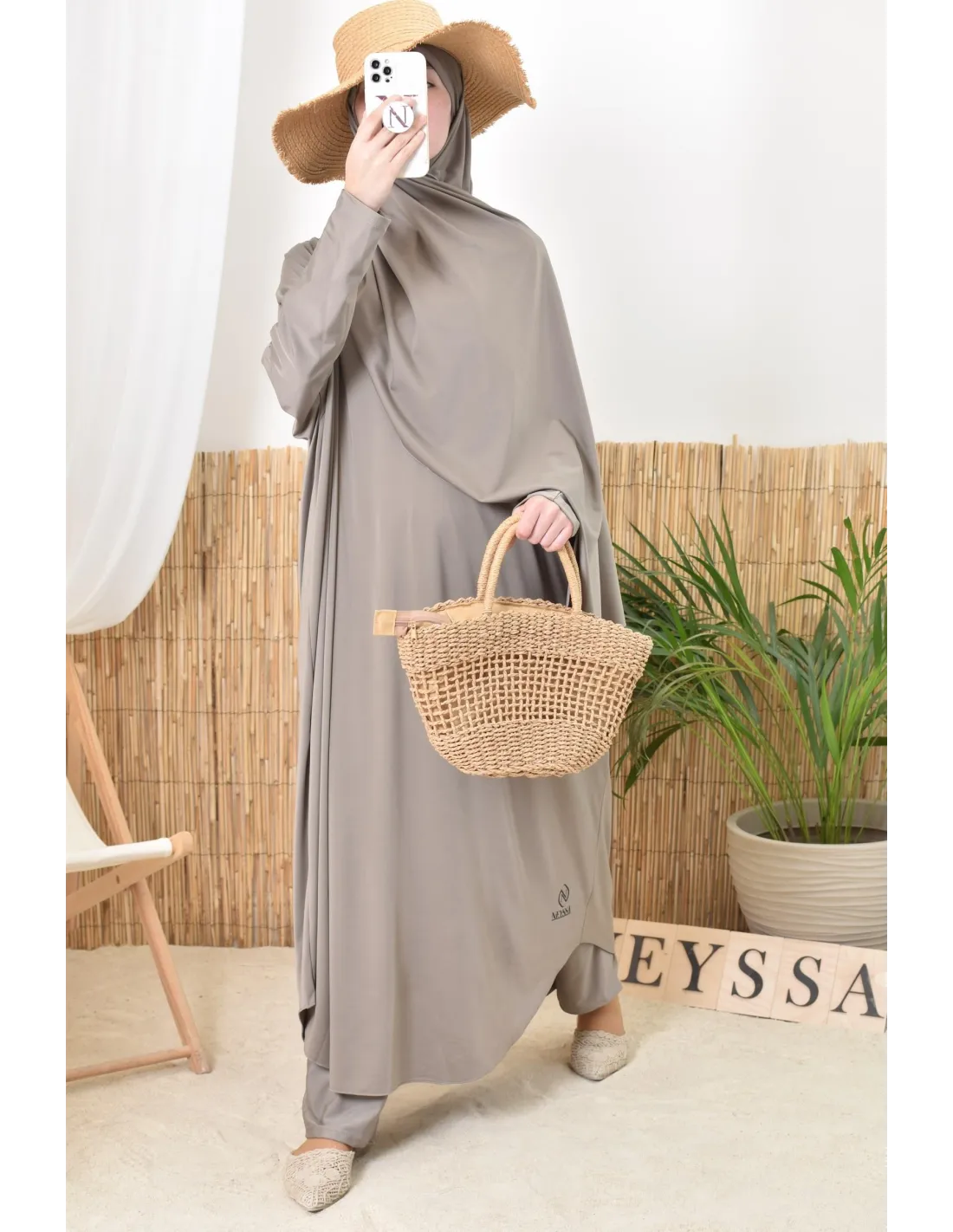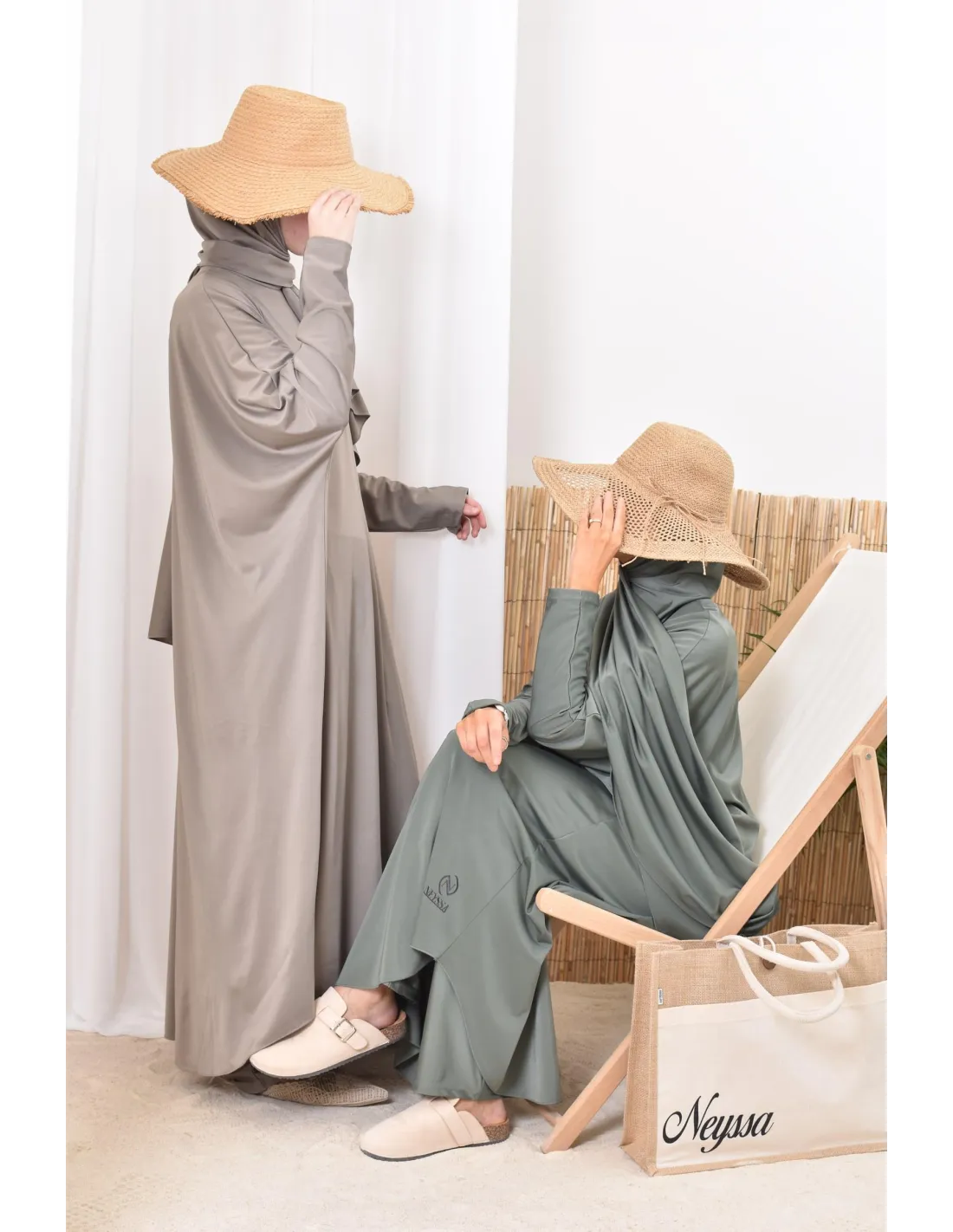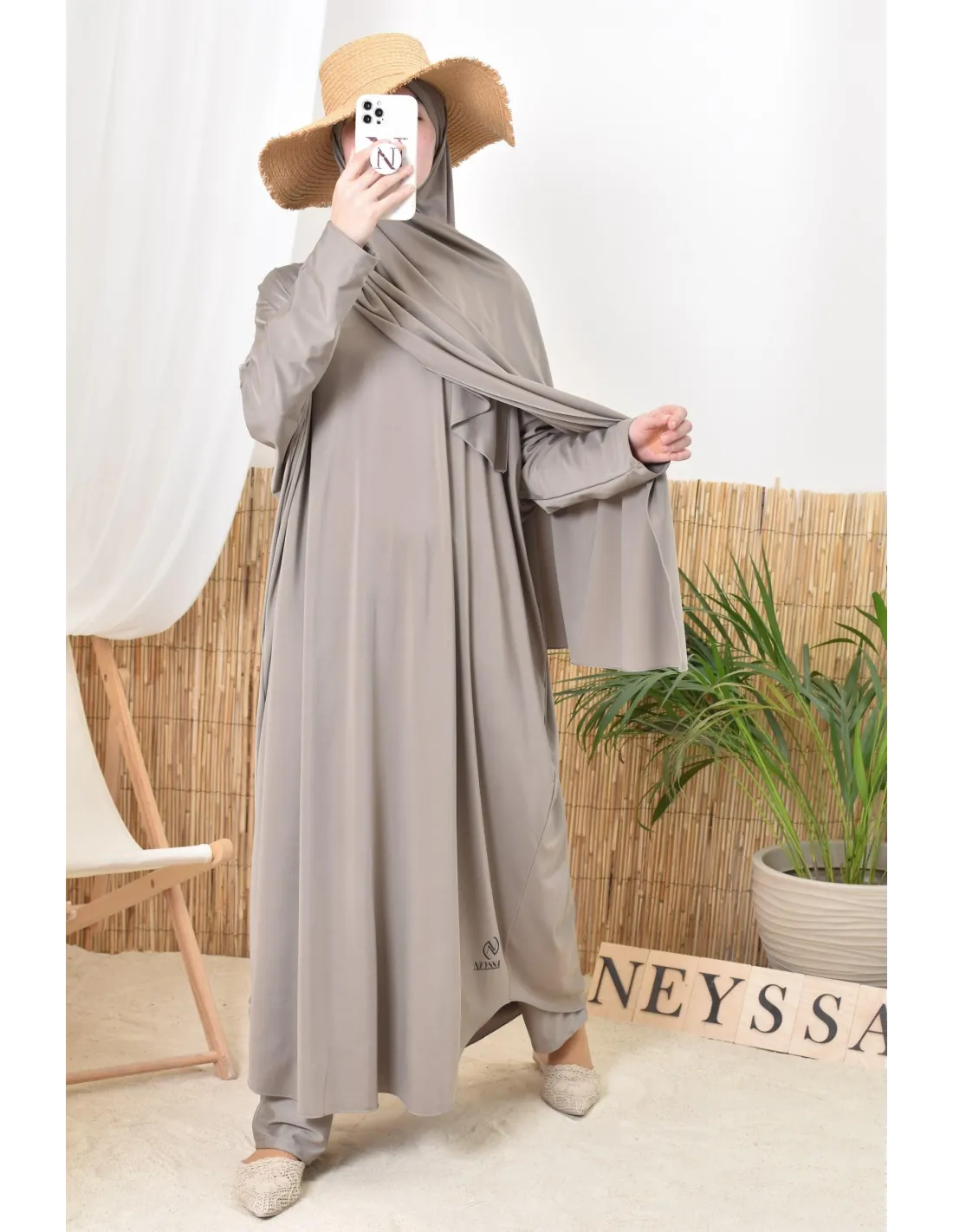 Burkini abaya de bain Taupe femme Pour se baigner avec pudeur et confort.