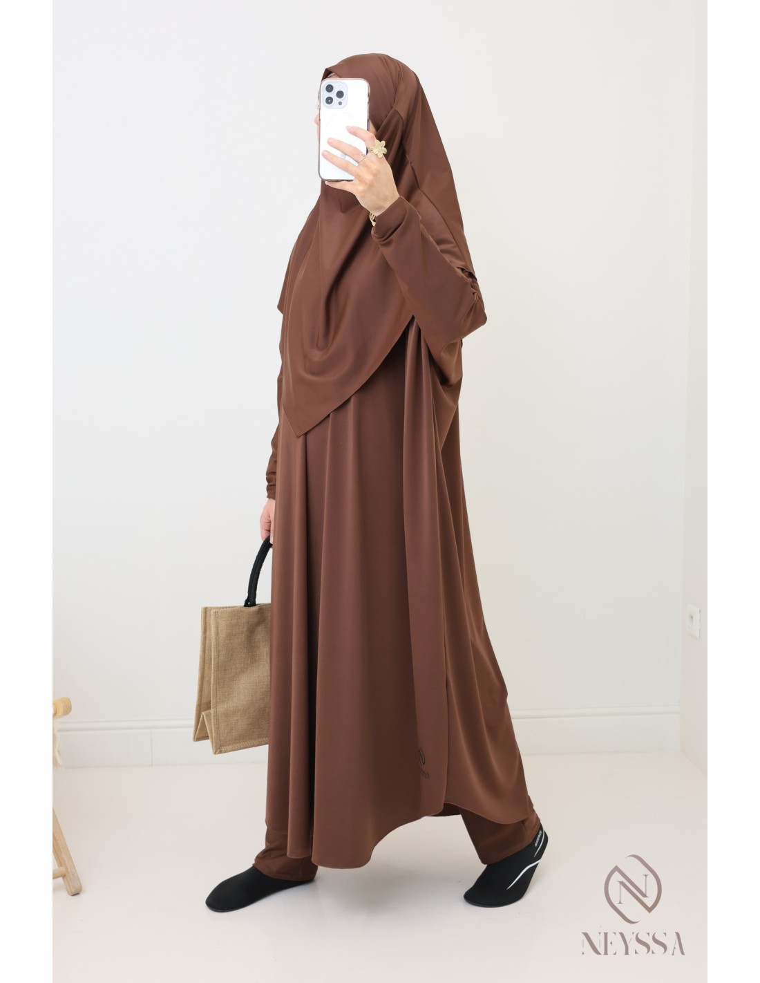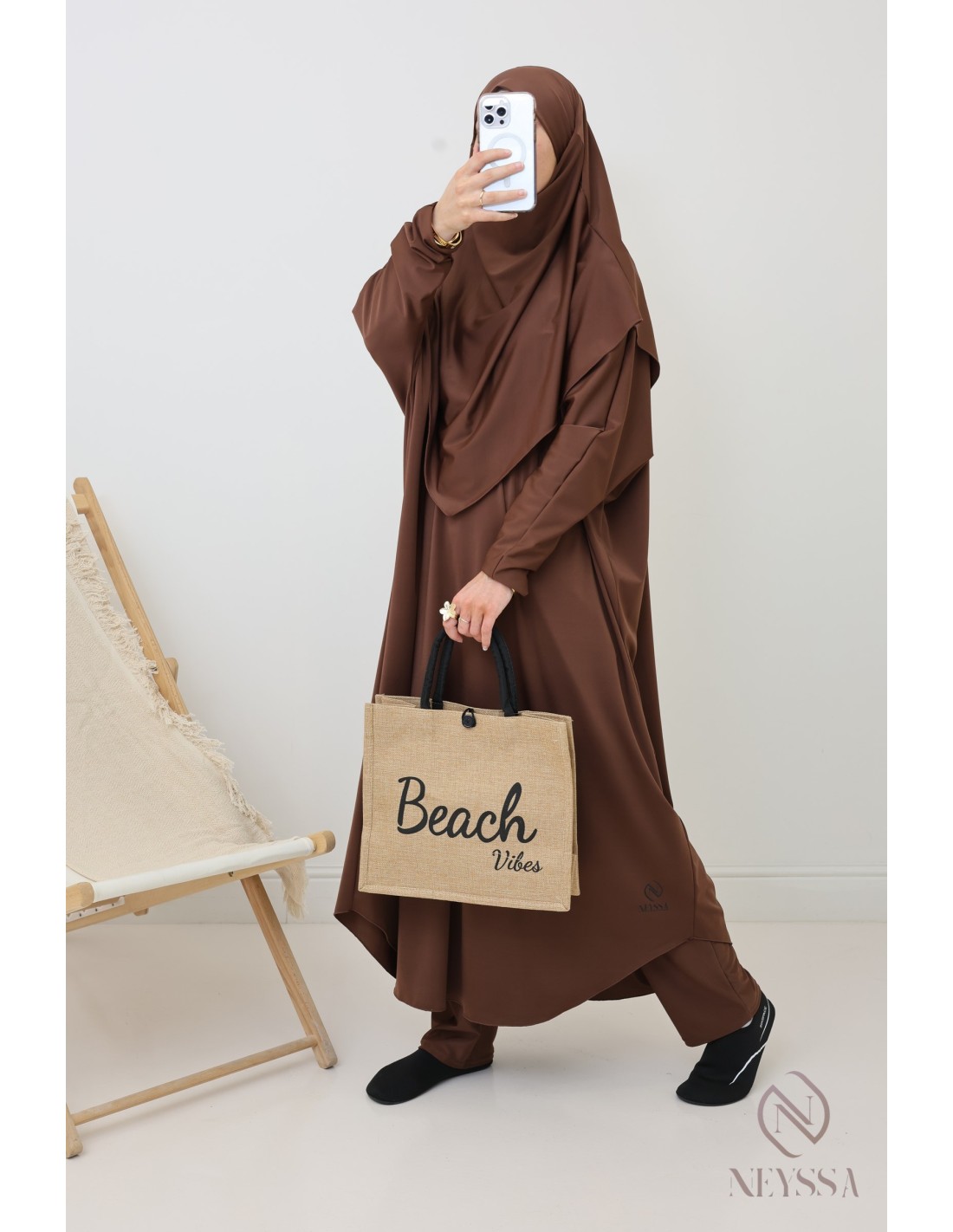 Jilbab de bain Chocolat 3 pièces Tunique longue + palazzo + khimar pour femme